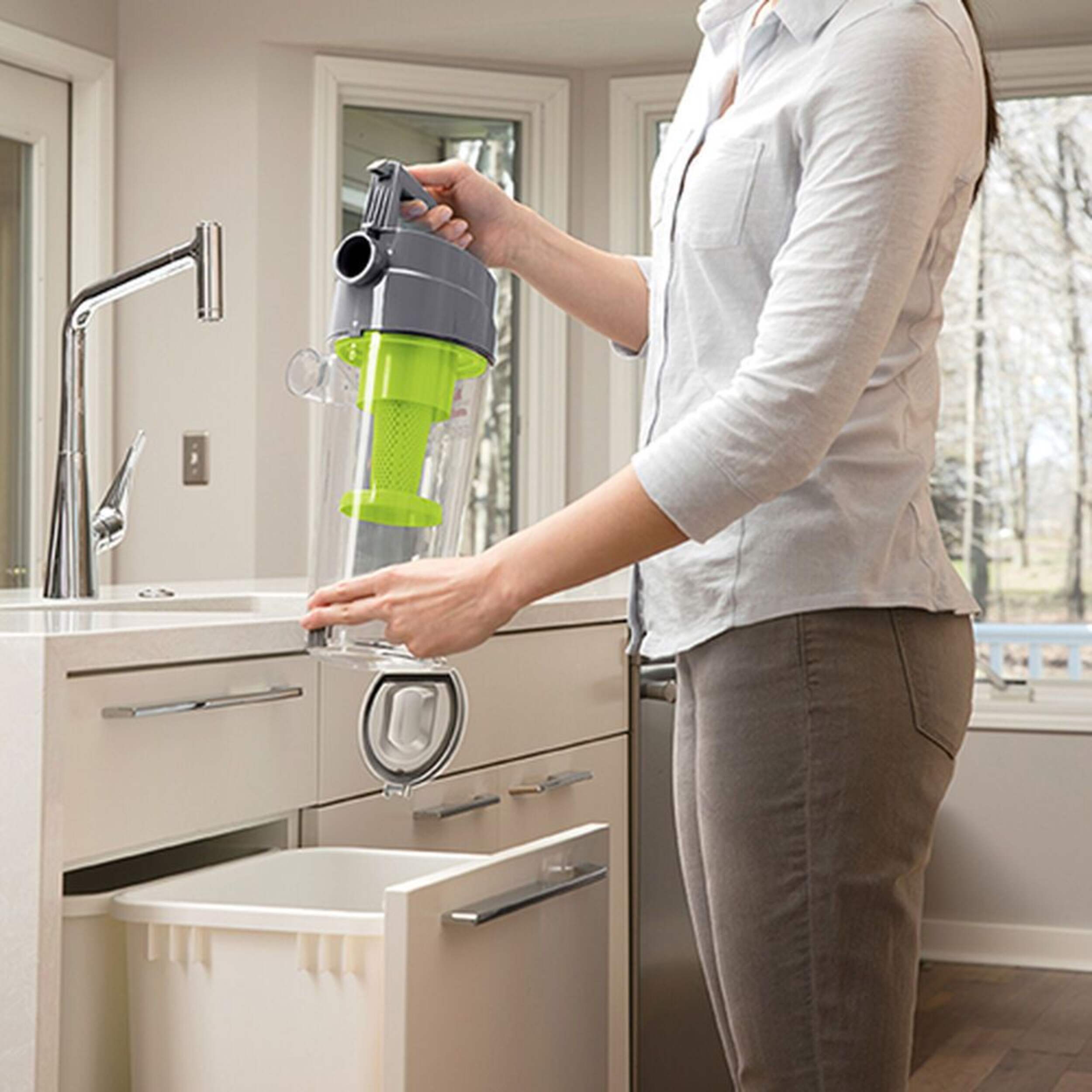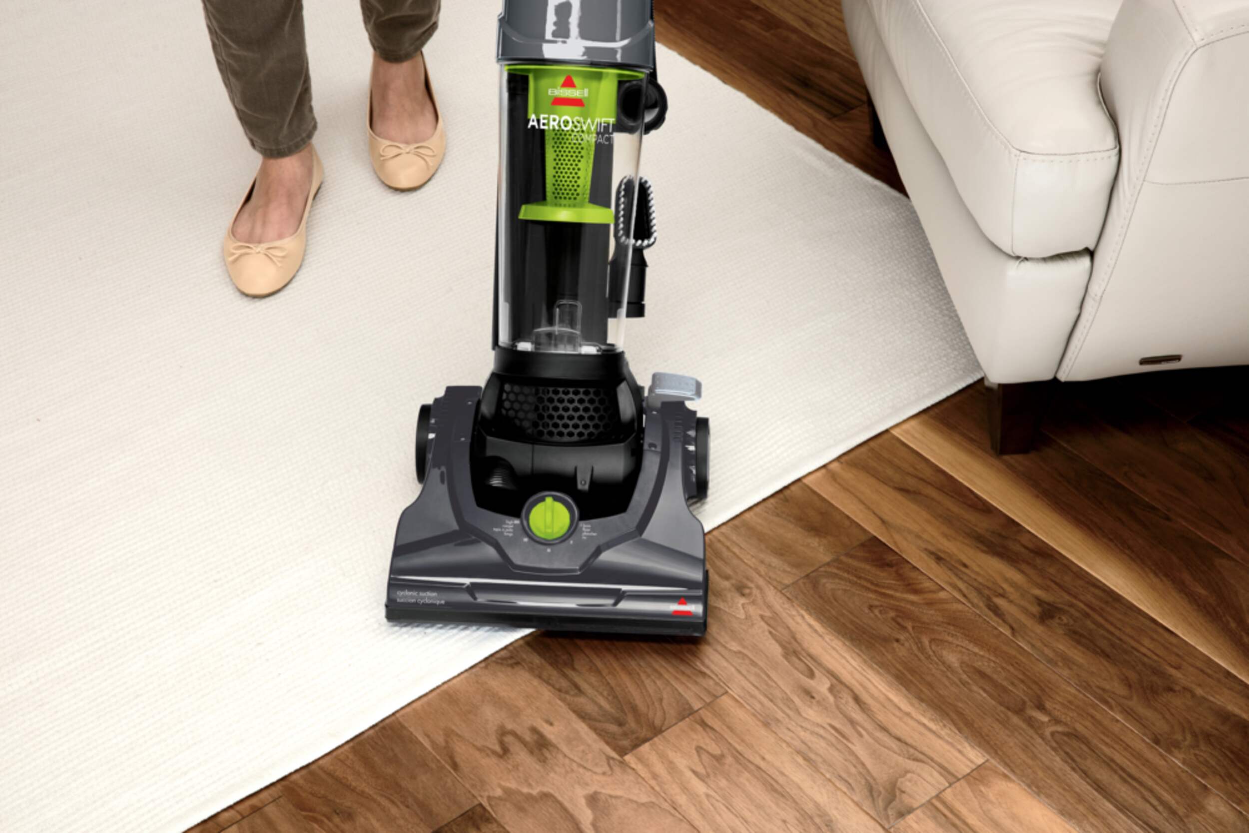 Clean more places and spaces with the BISSELL® AeroSwift® Compact Upright Vacuum. At just 10 pounds, the compact, lightweight design helps take this bagless vacuum where you need it. With specialized tools and an extension wand, you can reach everywhere you want to clean. This AeroSwift® Compact Vacuum also maintains powerful performance with Cyclonic Technology, which helps to keep the filter cleaner longer, and with a life-time built in second filter; maintenance is even easier.