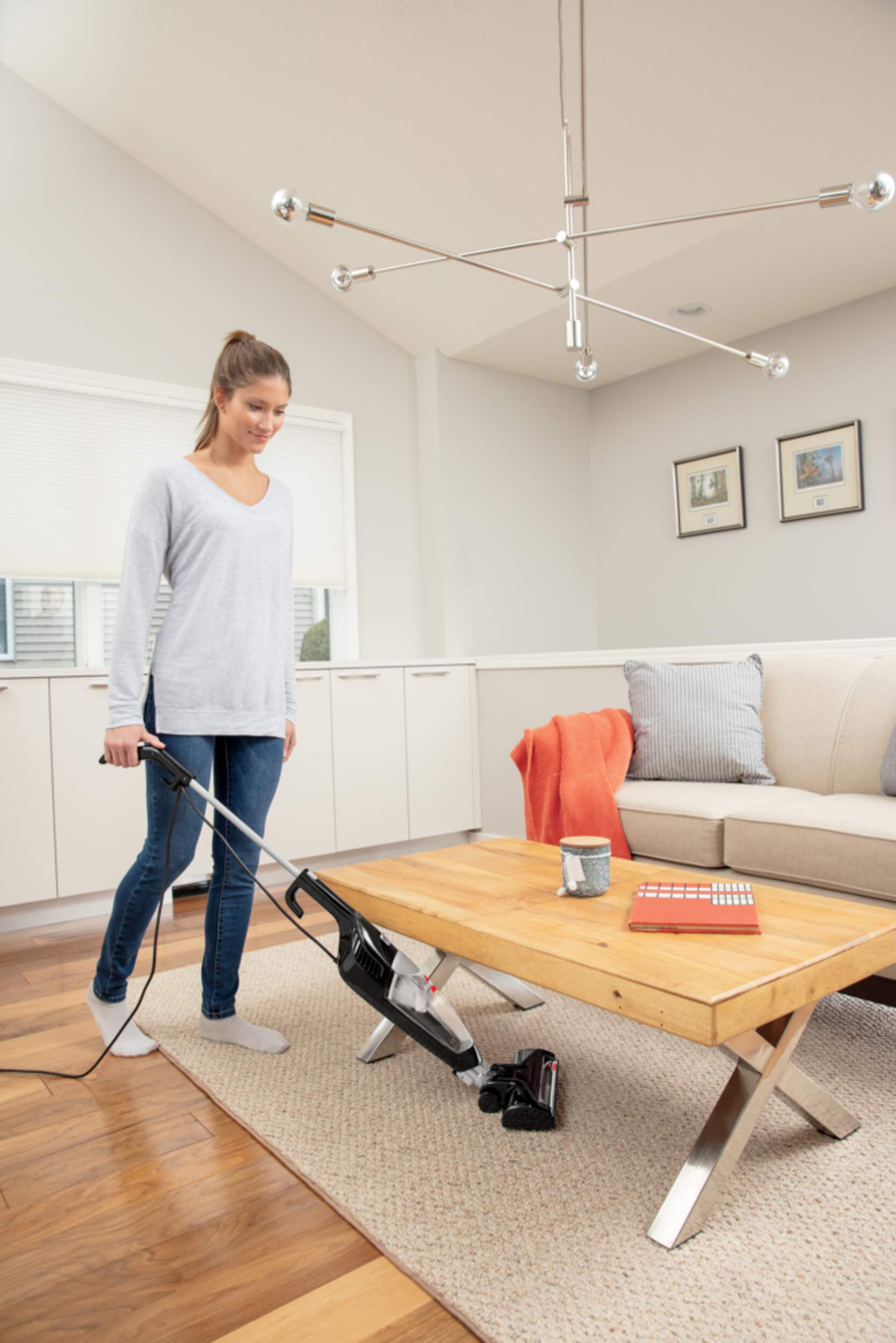 BISSELL® Magic Vac® PowerBrush corded stick vacuum gives you convenient and effective cleaning by quickly and easily converting into three different machines. Magic Vac® PowerBrush can be used as a lightweight and powerful stick vacuum for quick pickups of messes across multiple surfaces, including carpet, area-rugs, and hard floors. Then, with the swift convenience of the Quick Release Handle, the machine easily converts to a hand vacuum for cleaning above floor surfaces and upholstery, and keep the foot on the hand vacuum for cleaning stairs. This ultra-lightweight machine also only weighs less than 4 pounds. So, it's easy to use and carry around the home, and then easy to store when you're done cleaning.