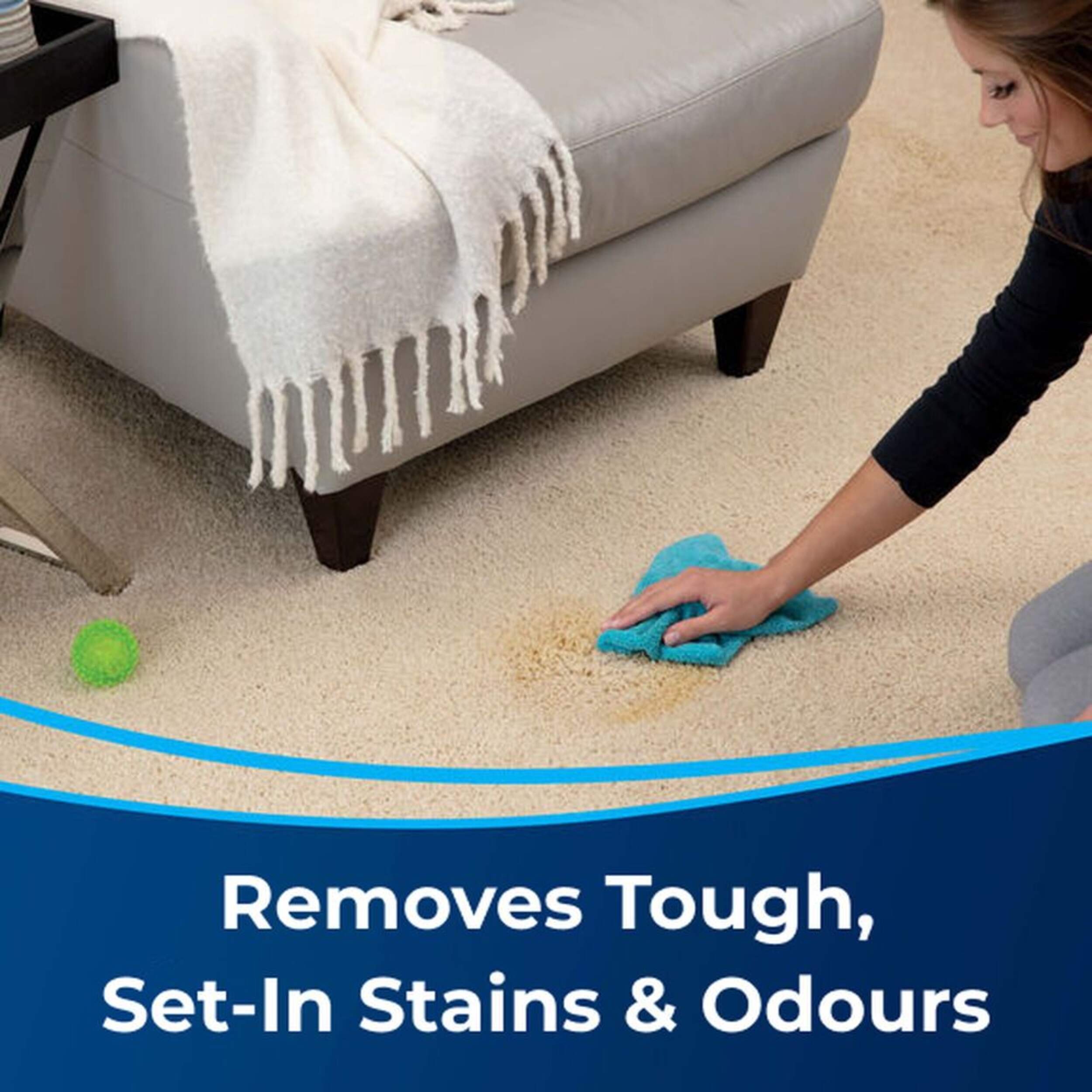 Remove stubborn odours and set-in stains from coffee, red wine, greasy food and more from carpet, upholstery and area rugs with BISSELL® PRO OXY Power Shot® Formula