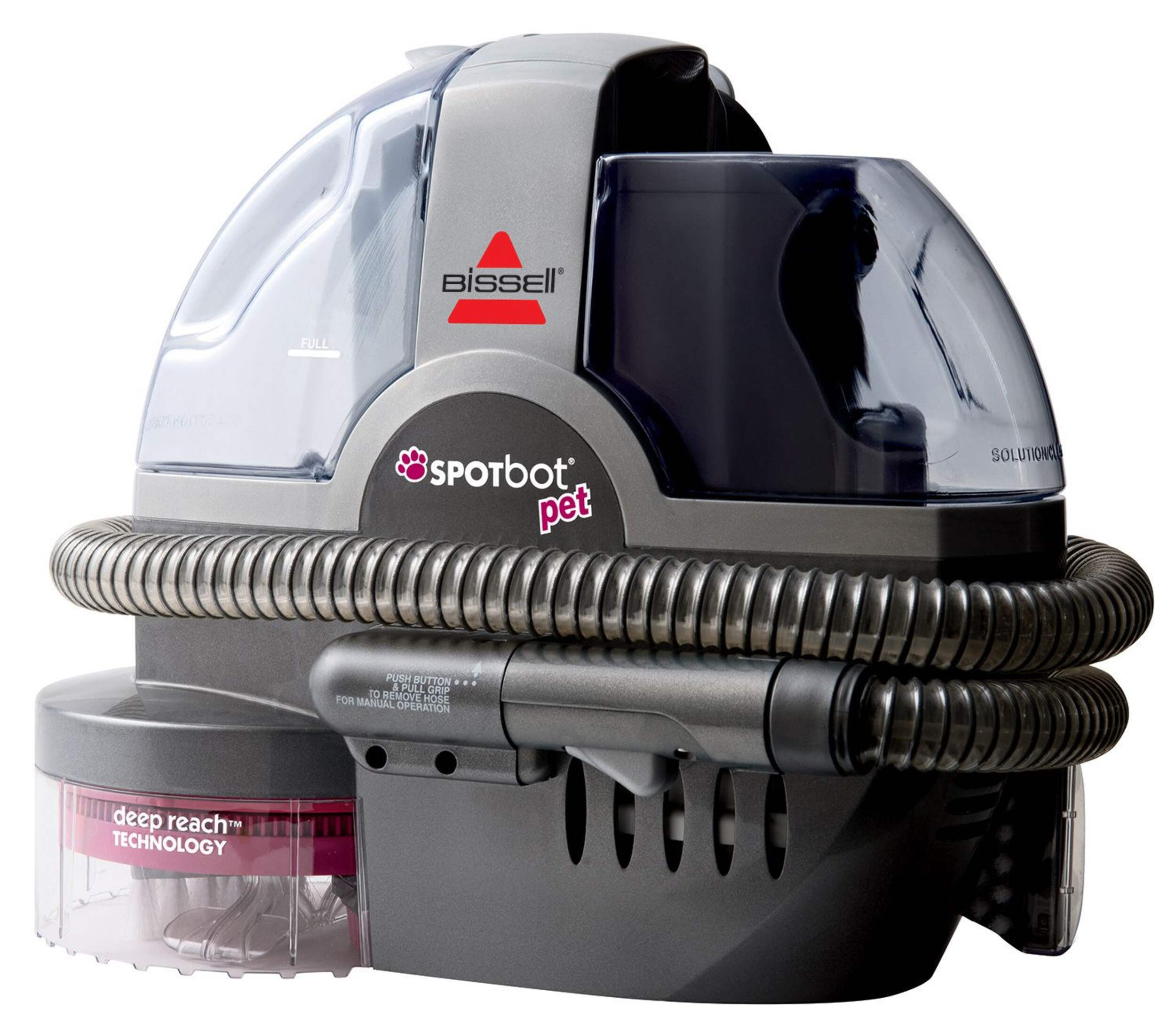Bissell SpotBot® Pet Deep Cleaner is a hands free carpet spot cleaner, simply push a button and watch the stain be removed
