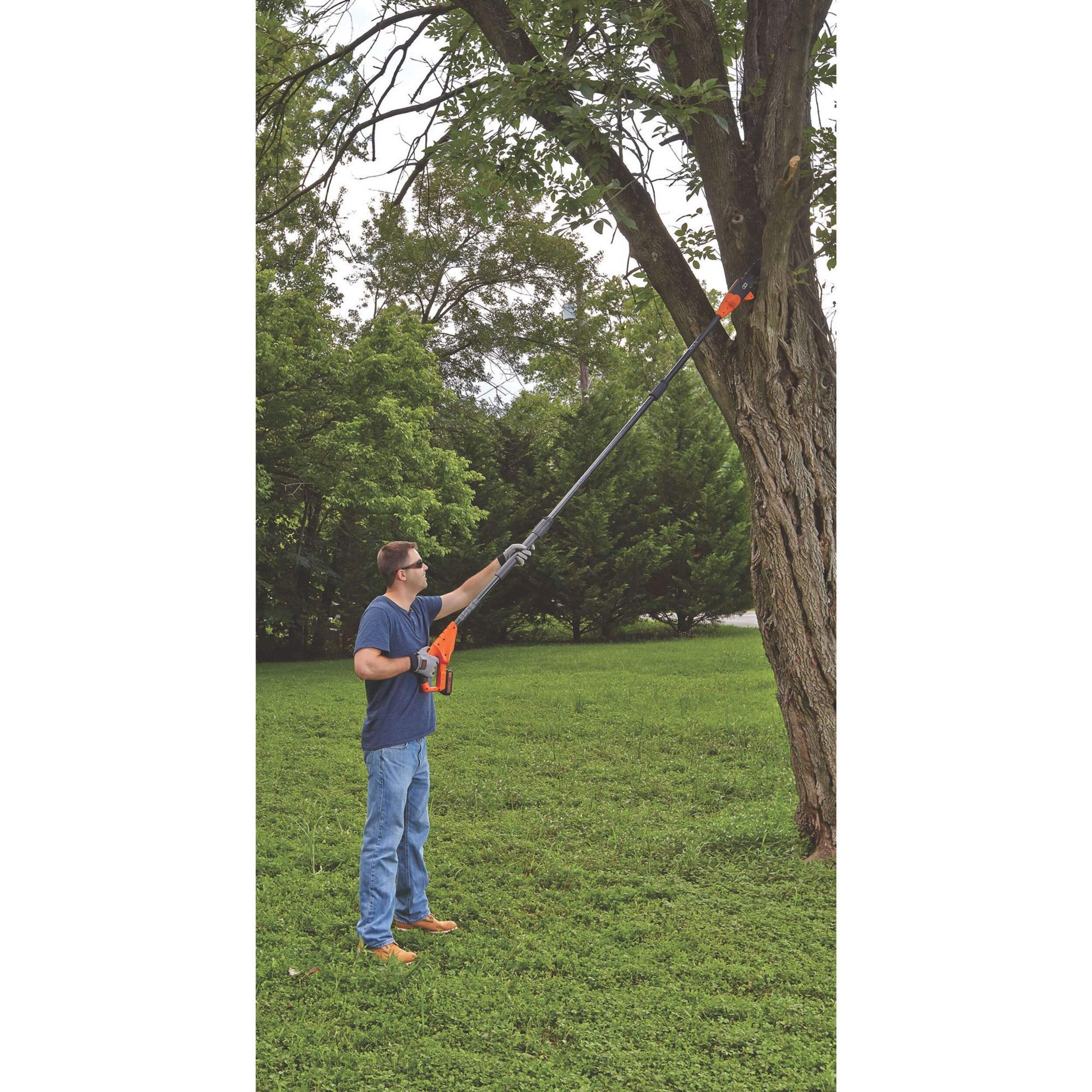 Black & Decker 20V MAX Lithium Pole Saw releases zero emissions in your yard, helping to reduce your carbon footprint