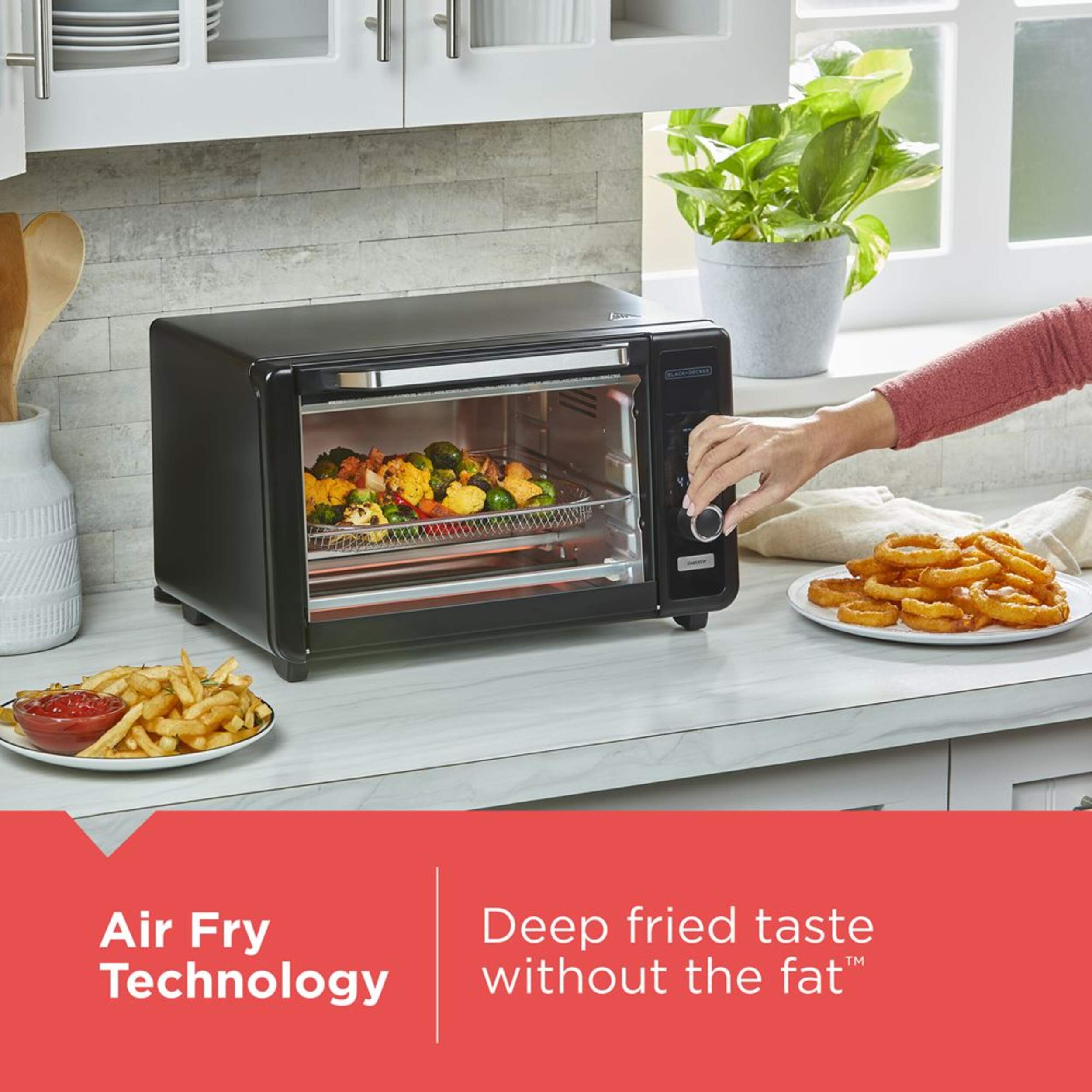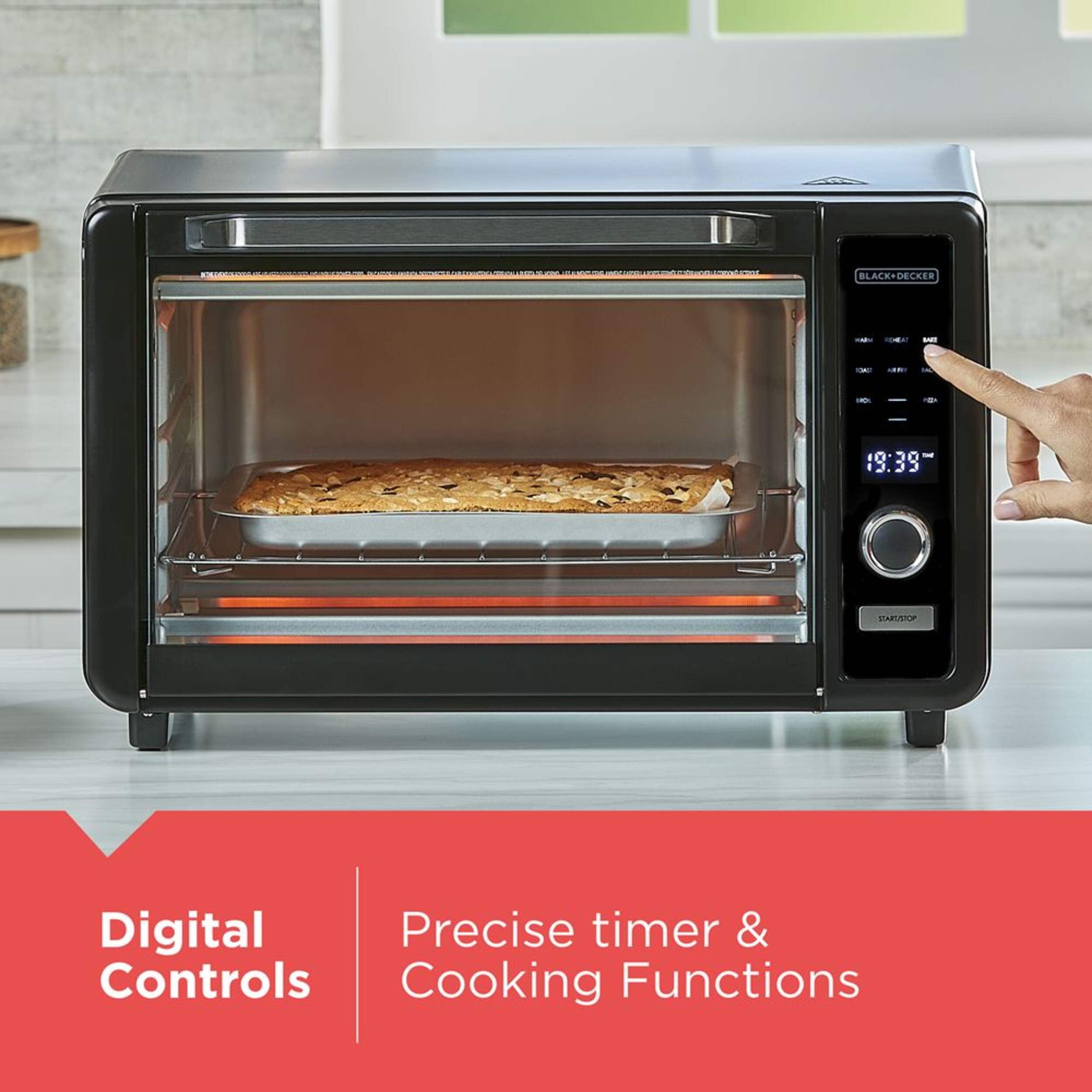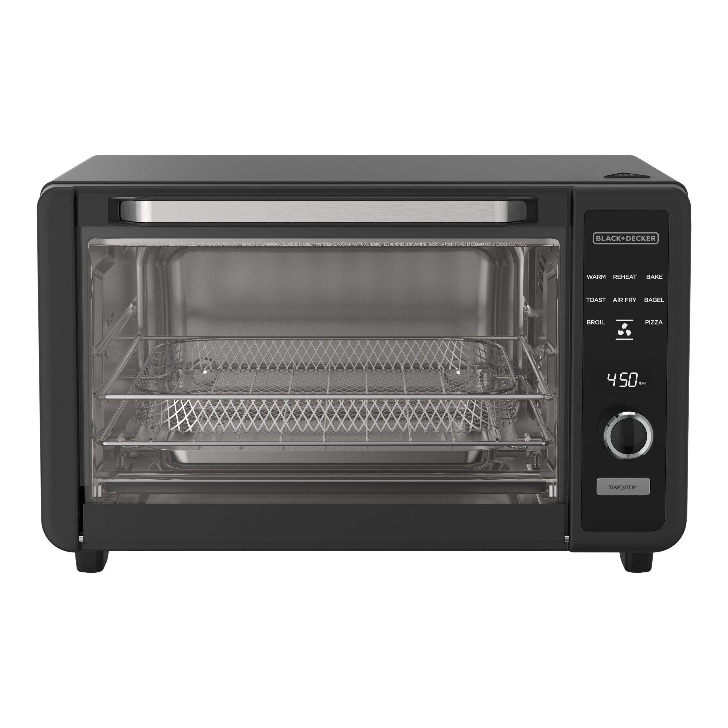 8 One-Touch cooking functions: Air fry, bake, broil, bagel, pizza, keep warm, toast, reheat
