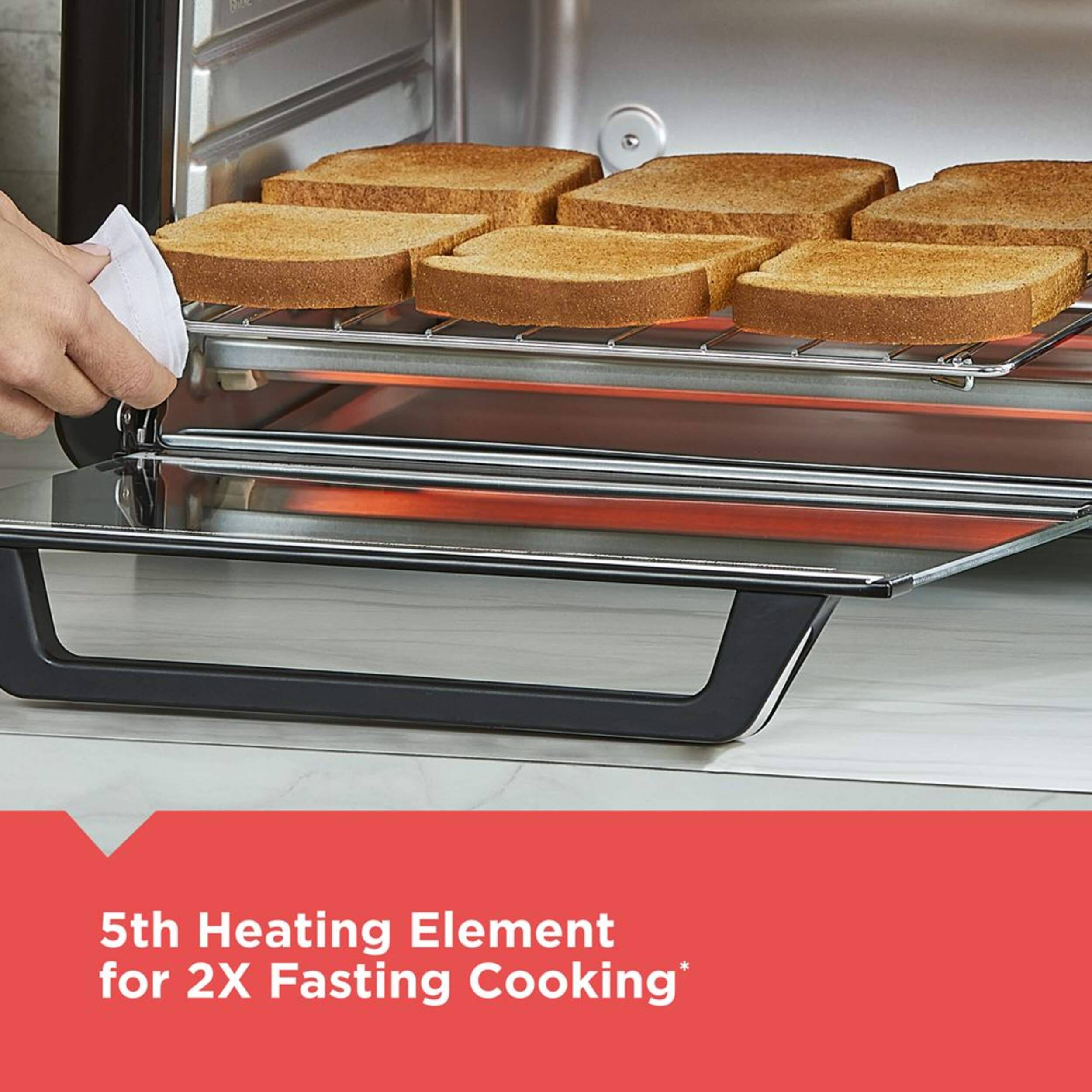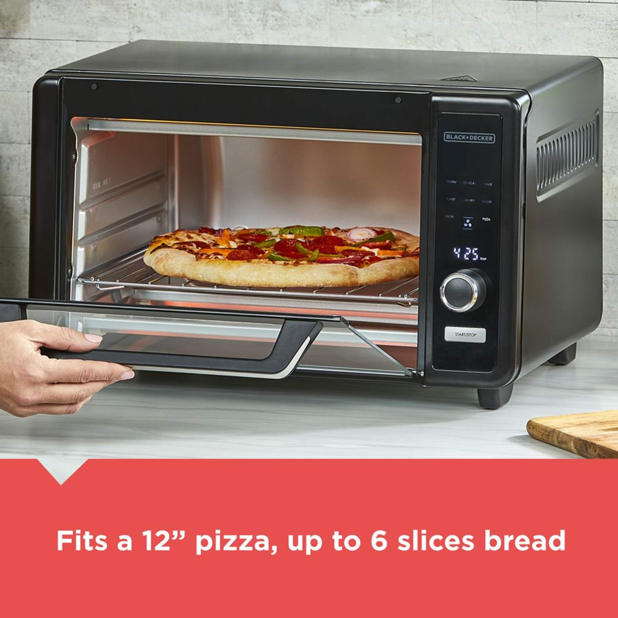 Fits a 12” (30.5 cm) pizza or up to 6 slices of toast