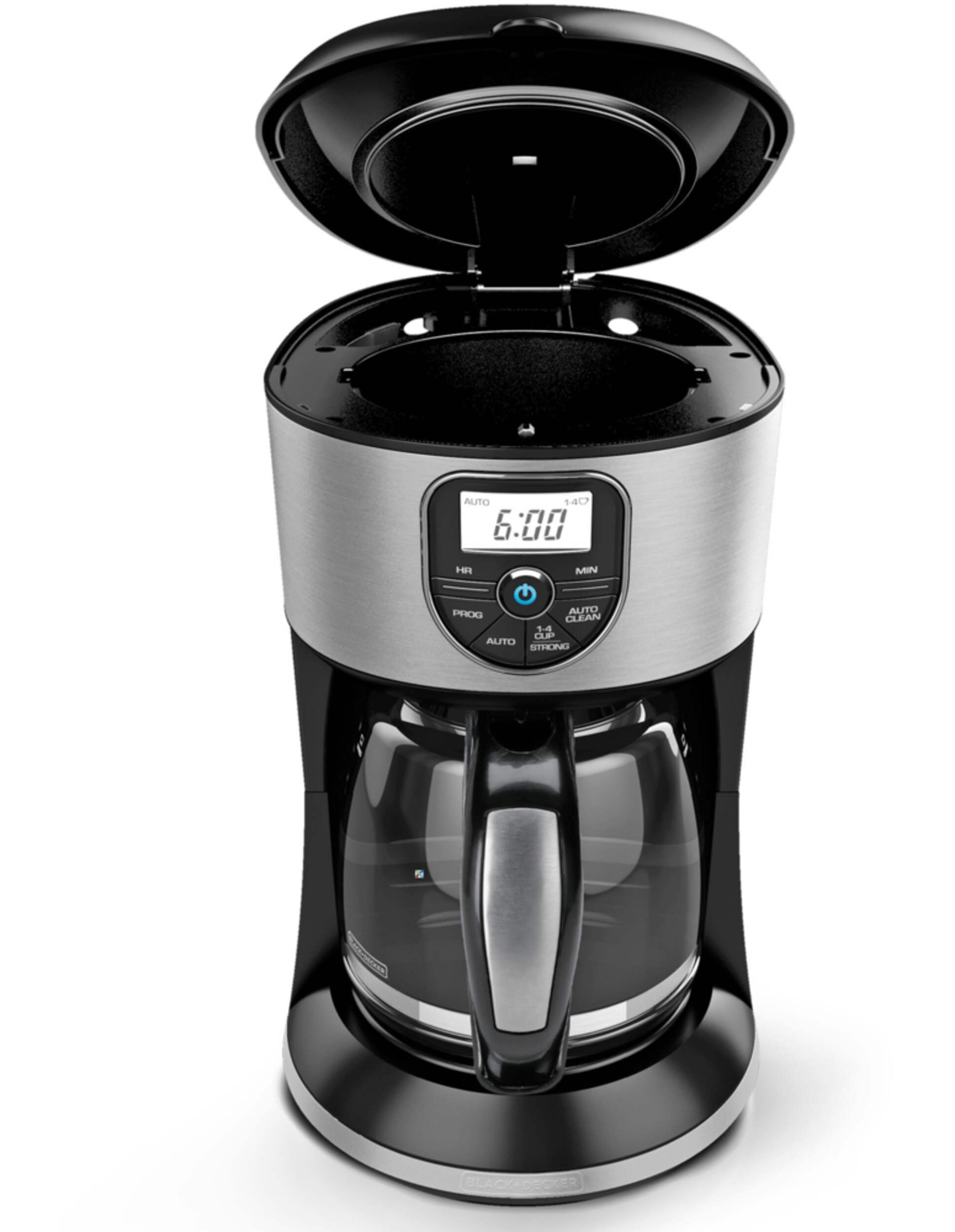 Make your favourite coffee anytime with the Black & Decker Coffee Maker. Quickly set the 24-hour auto brew feature and shave some time off of your morning routine with the “fast brew” function. Other useful features include Sneak-A-Cup™ Technology, the 12-Cup* Duralife™ glass carafe, and a washable brew basket.