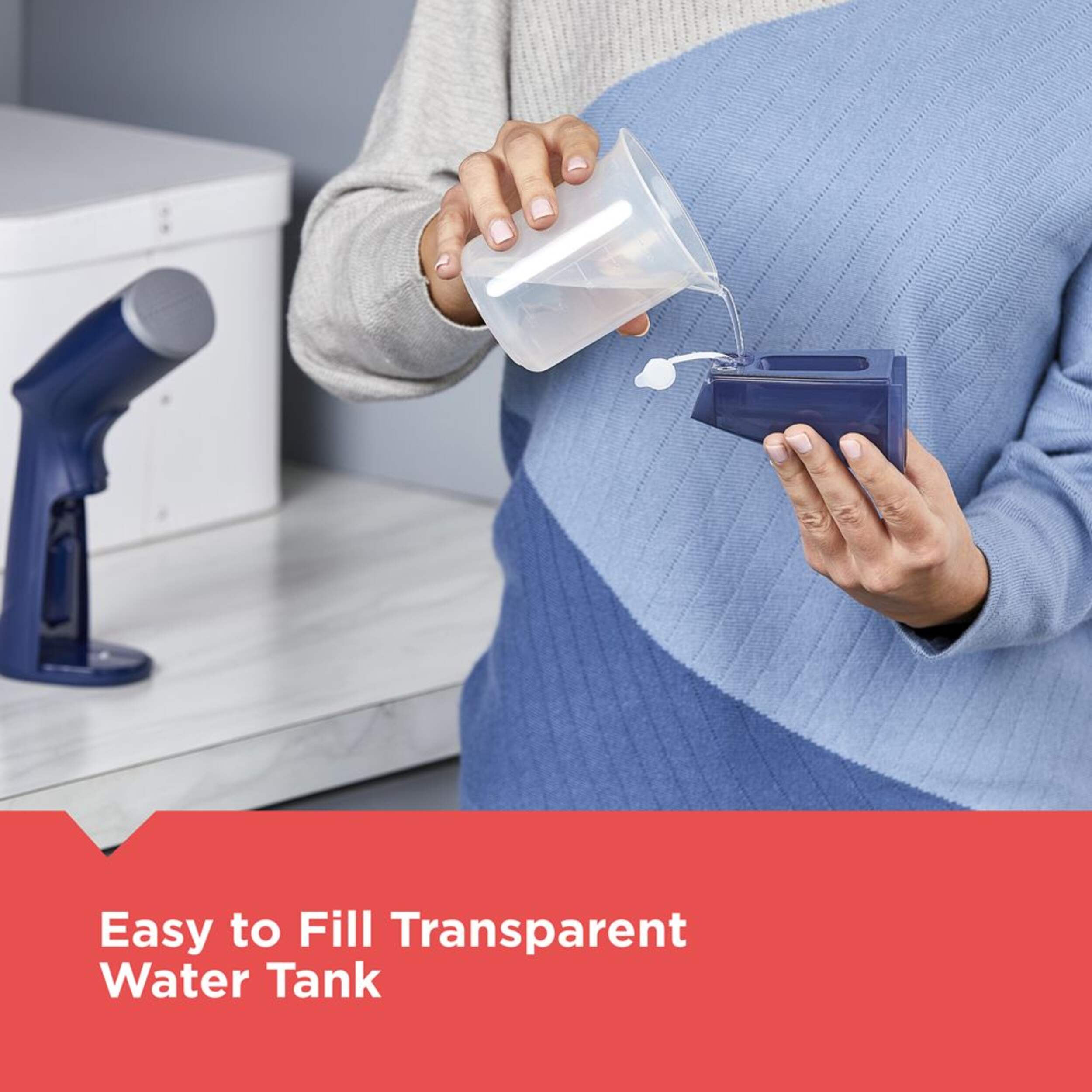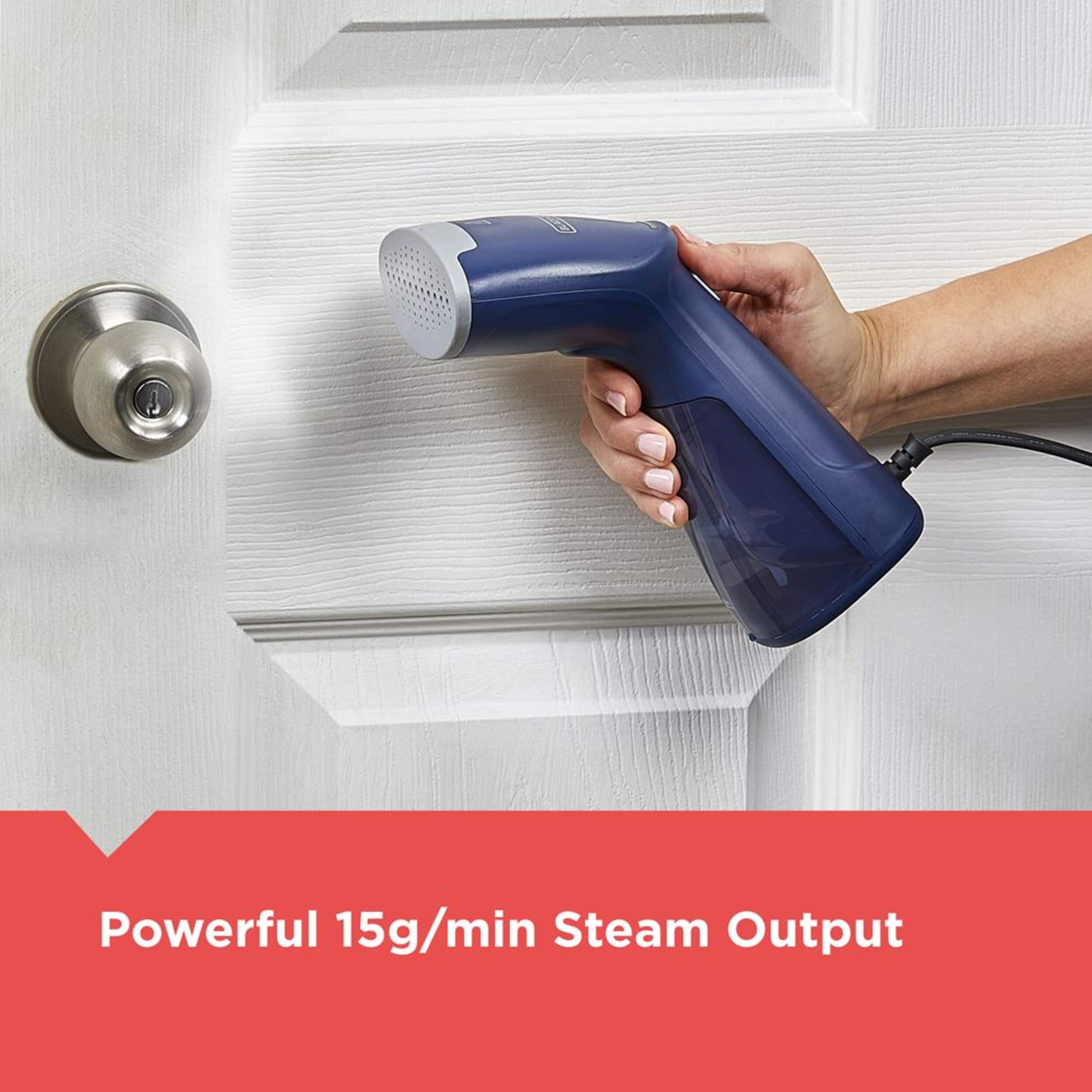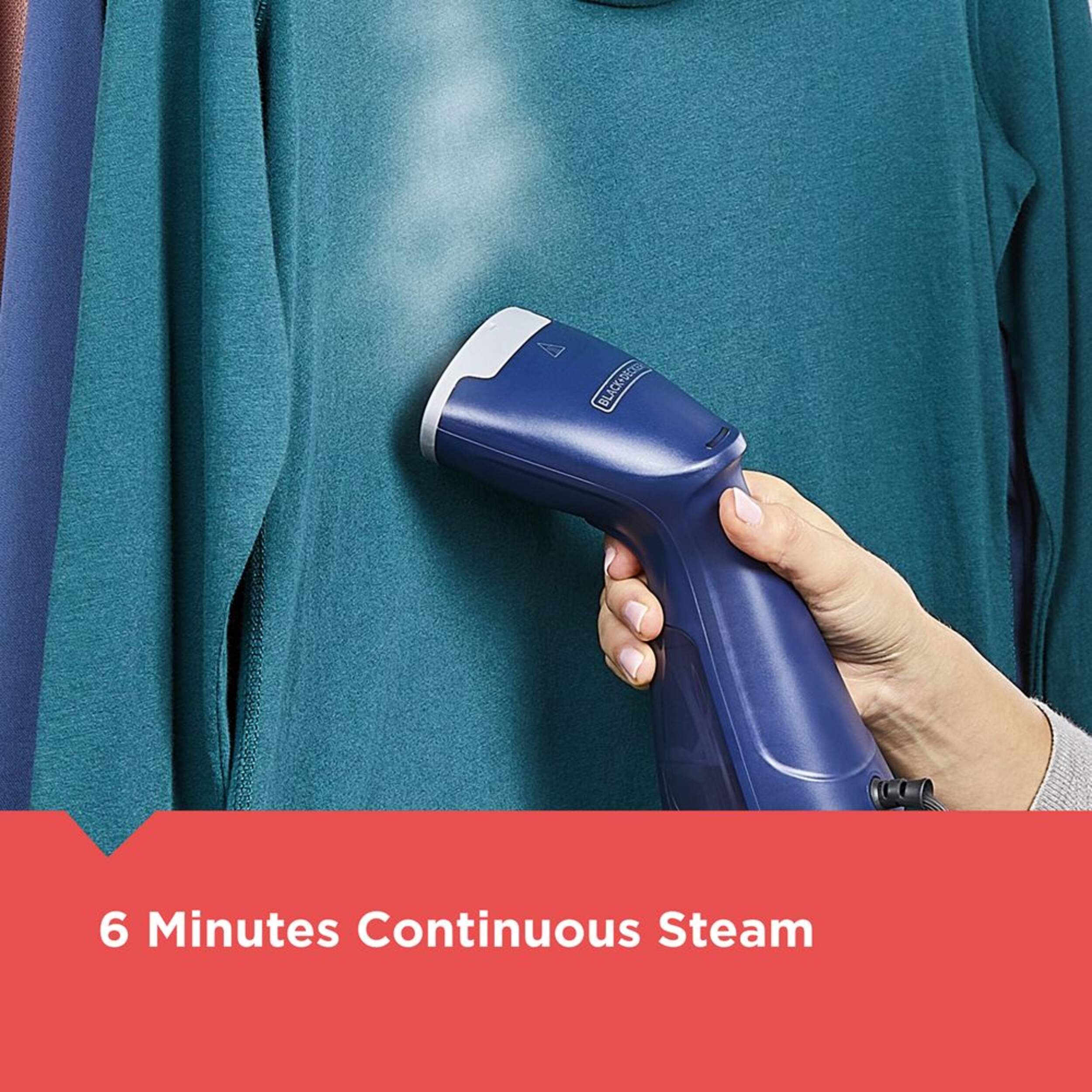 The BLACK+DECKER Handheld Fabric Steamer is the ideal tool for quick and efficient garment care. With a pump heater that generates more efficient steam, this handheld steamer ensures a powerful performance. The removable water tank allows for easy refilling, while its compact design makes it highly portable and easy to store. Whether you're freshening up your wardrobe or tackling home fabrics, this steamer offers convenience and efficiency.