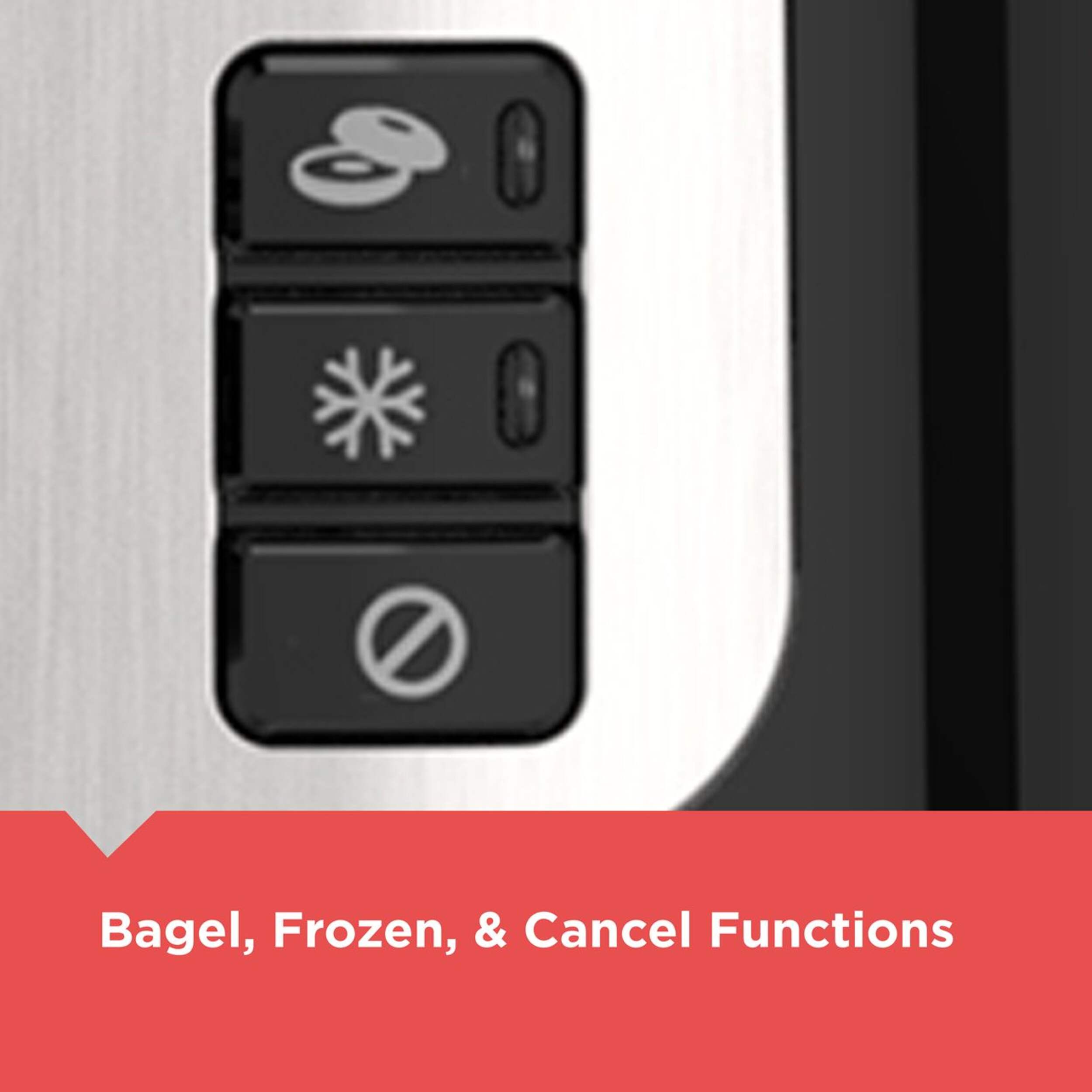 Illuminated Bagel and Frozen buttons let you easily choose the best toasting method