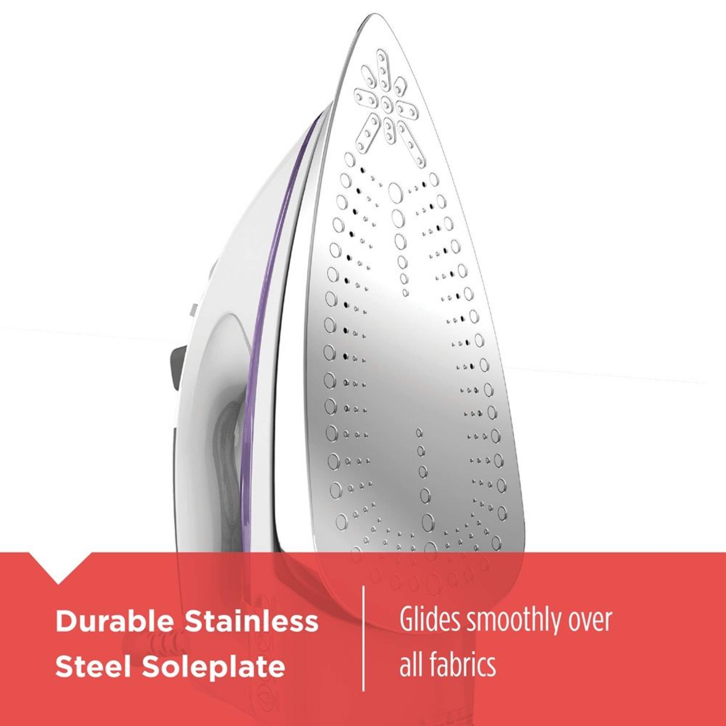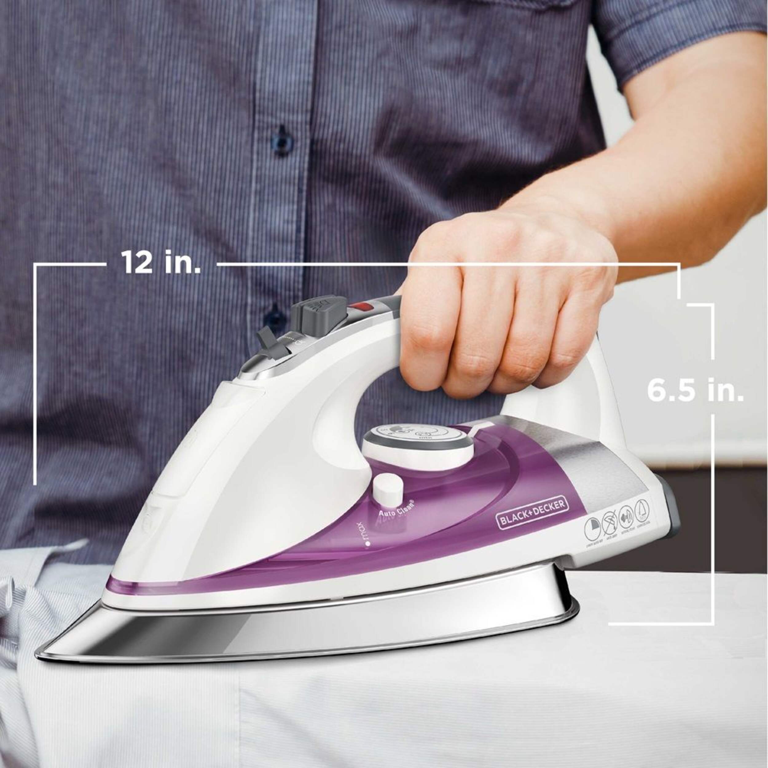 Take on wrinkles with ease using the Black & Decker Pro Steam Iron. The heavy-duty stainless steel soleplate allows for smooth gliding and long-lasting durability. With its separate steam and temperature controls, you can easily adjust settings for various fabric types. The 10-ft cord offers convenient mobility, while the auto shut-off feature helps ensure safety during use. This reliable iron is engineered to prevent dripping by closely regulating water temperatures.
