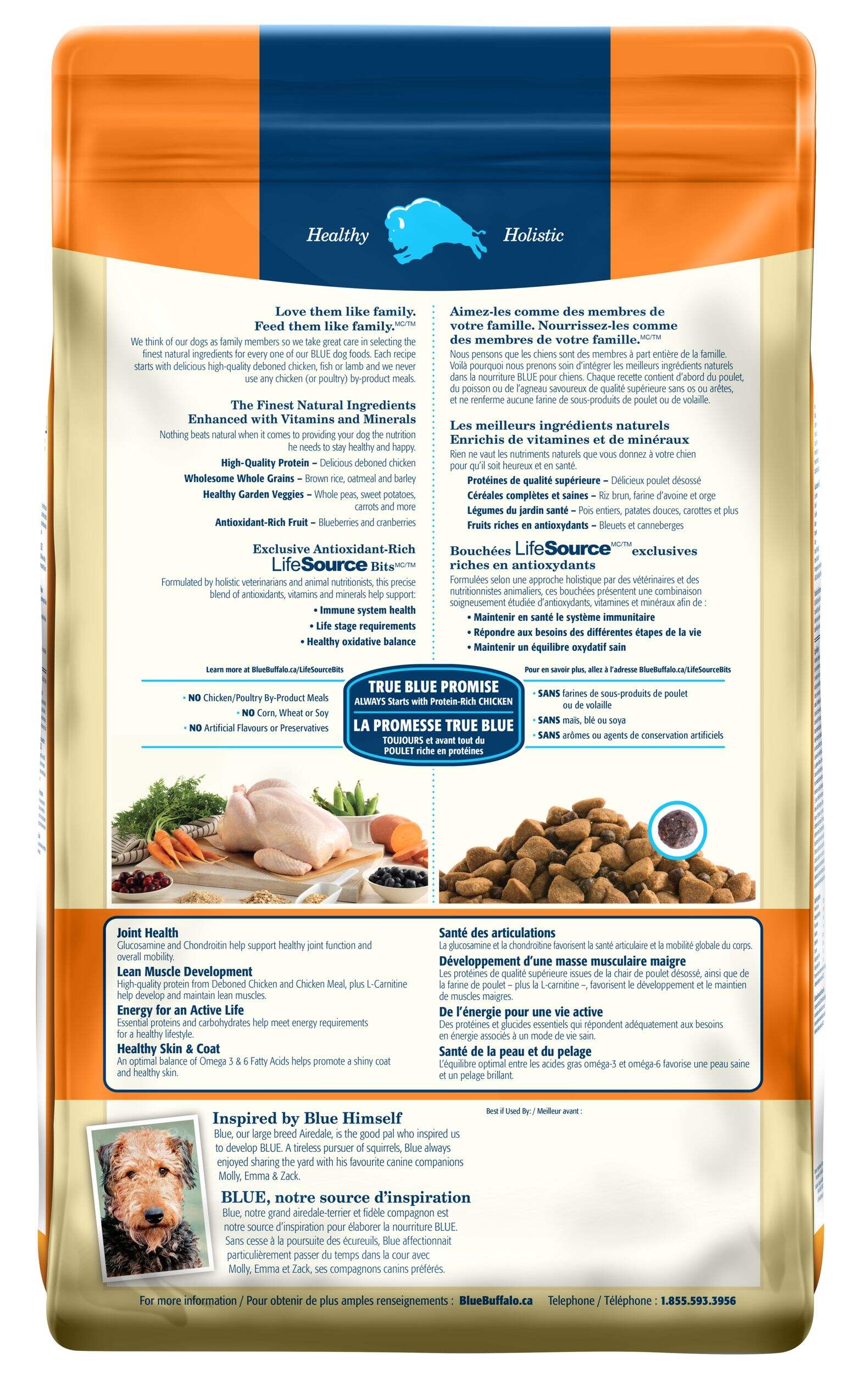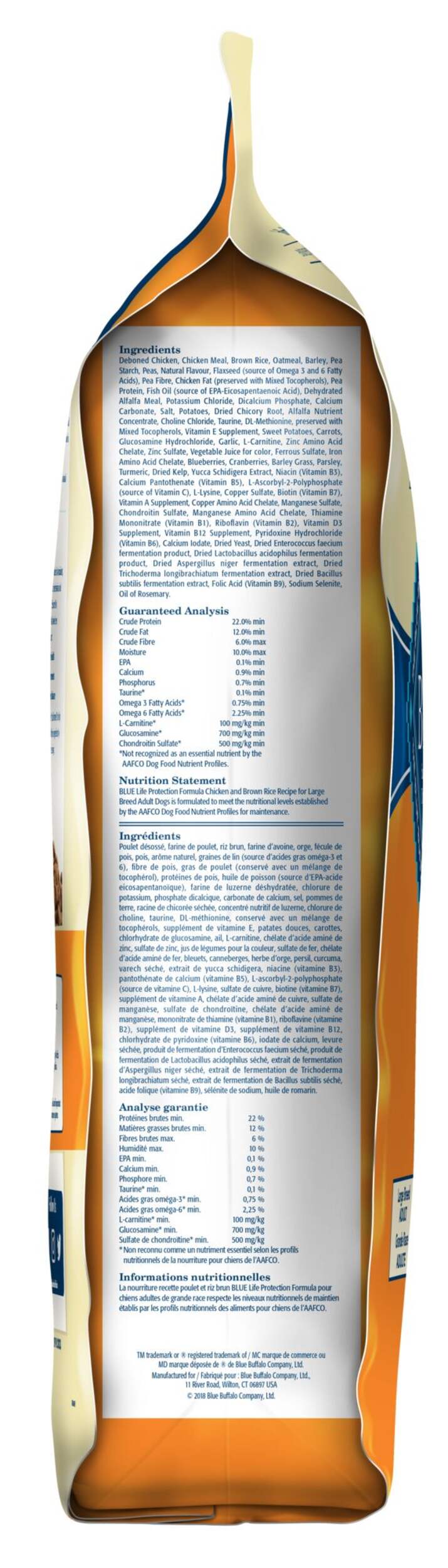 Formulated for the health and well-being of large breed dogs, BLUE Life Protection Formula is made with the finest natural ingredients enhanced with vitamins, minerals and other nutrients. Starting with delicious, high-quality chicken, it features antioxidant-rich fruits and veggies, wholesome whole grains, plus glucosamine and chondroitin to support the mobility needs of larger dogs.