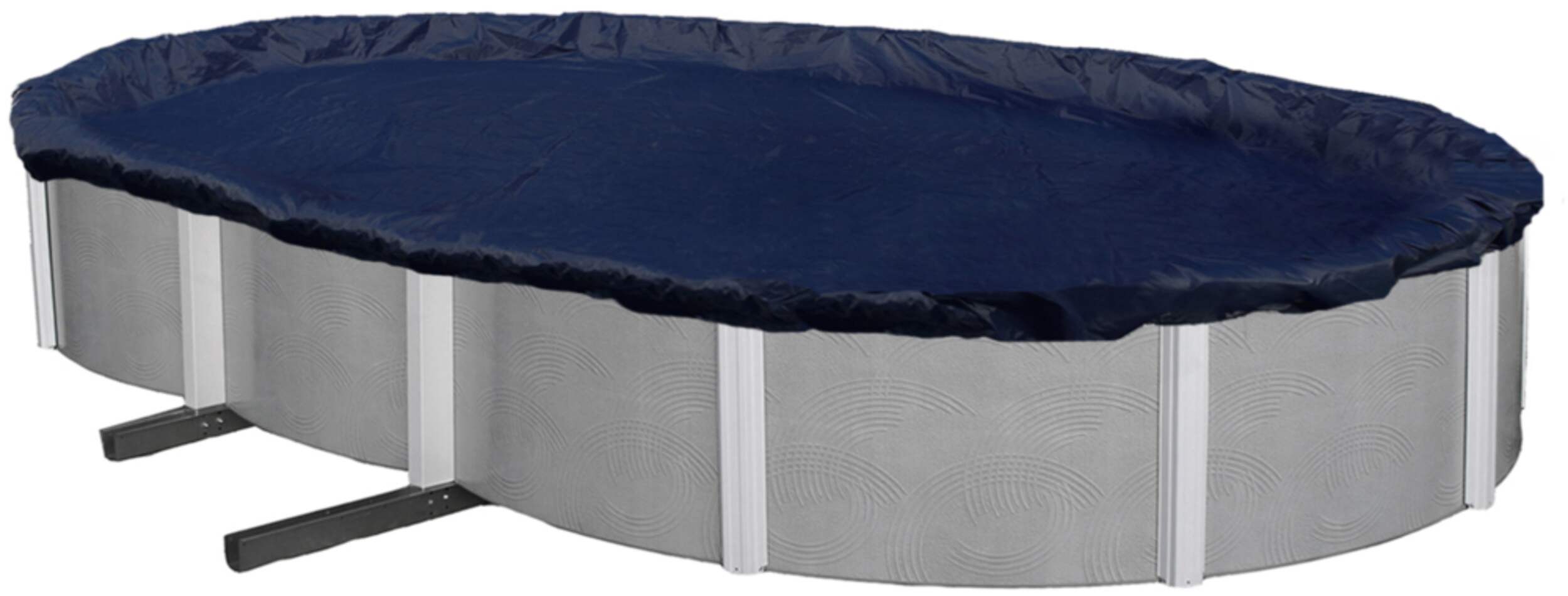 This rugged mesh pool winter cover from Blue Wave will make spring clean-up a breeze. The fine mesh construction keeps debris out while allowing rainwater and melting snow to drain through, eliminating the need for time-consuming draining or pumping to remove trapped water buildup. Crafted from durable yet lightweight polyethylene, this cover is simple to remove and store for the season. Double-stitched hems reinforced at triple points add strength, and the black underside ensures a clean pool come spring. A generous 4-foot overlap ensures a proper fit, and the included metal winch and heavy-duty, vinyl-coated cable secures the cover through the spaced metal grommets.