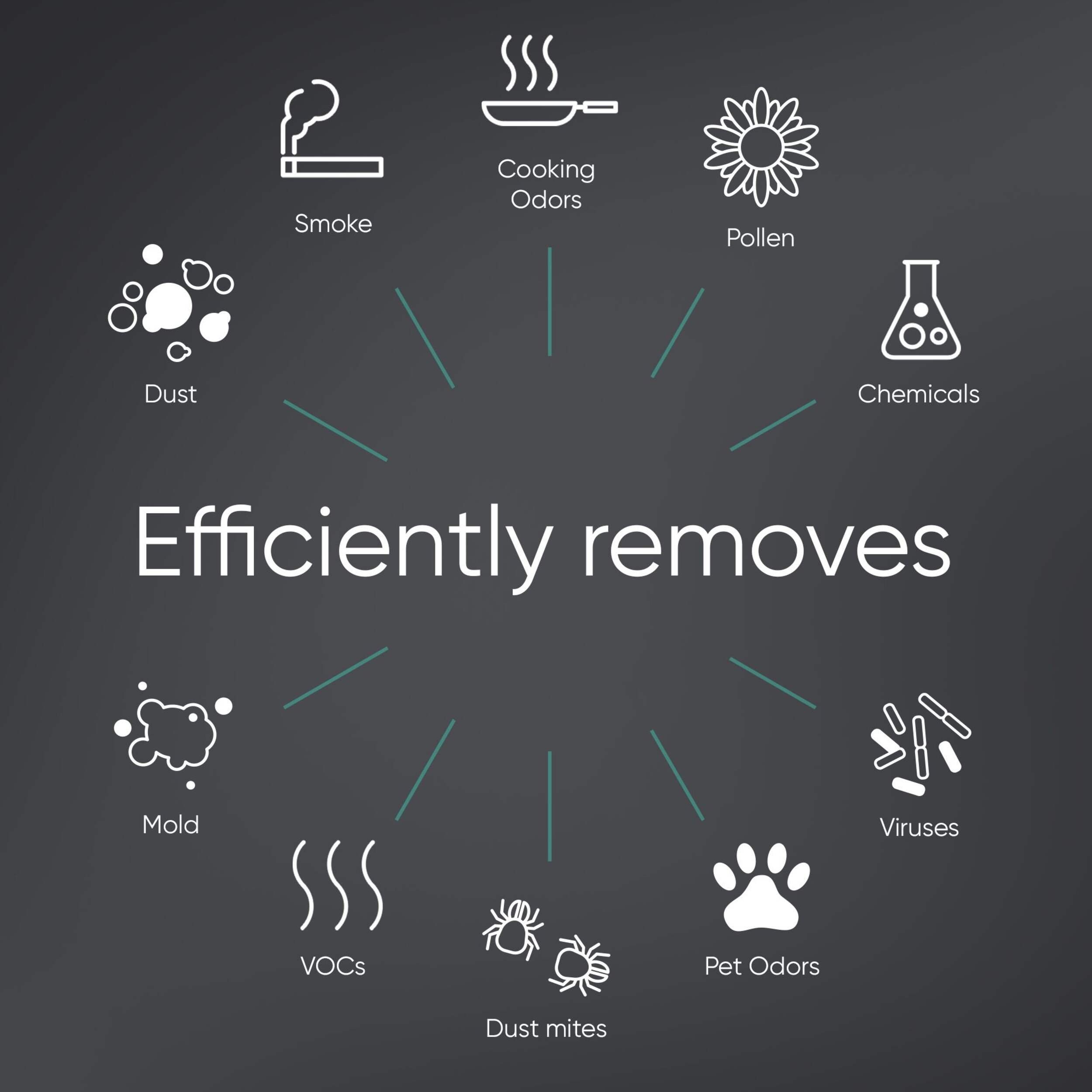 | Particulates Filtered | Bacteria, Dust, Dust Mites, Mould, Pet Dander, Pollen, Smoke |