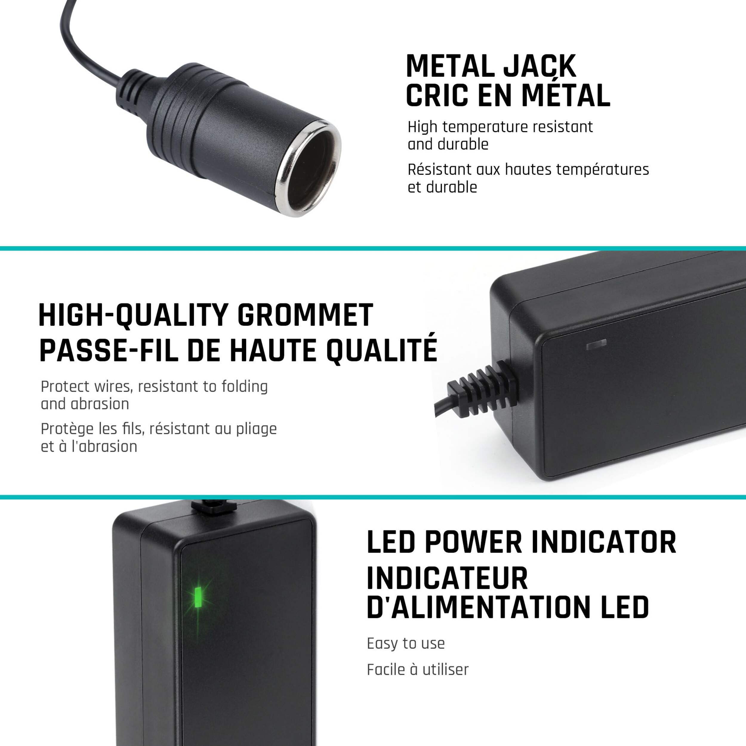 For use with coolers, air compressors, spotlights, fans, cell phones, and more with a 12 volt DC Plug item