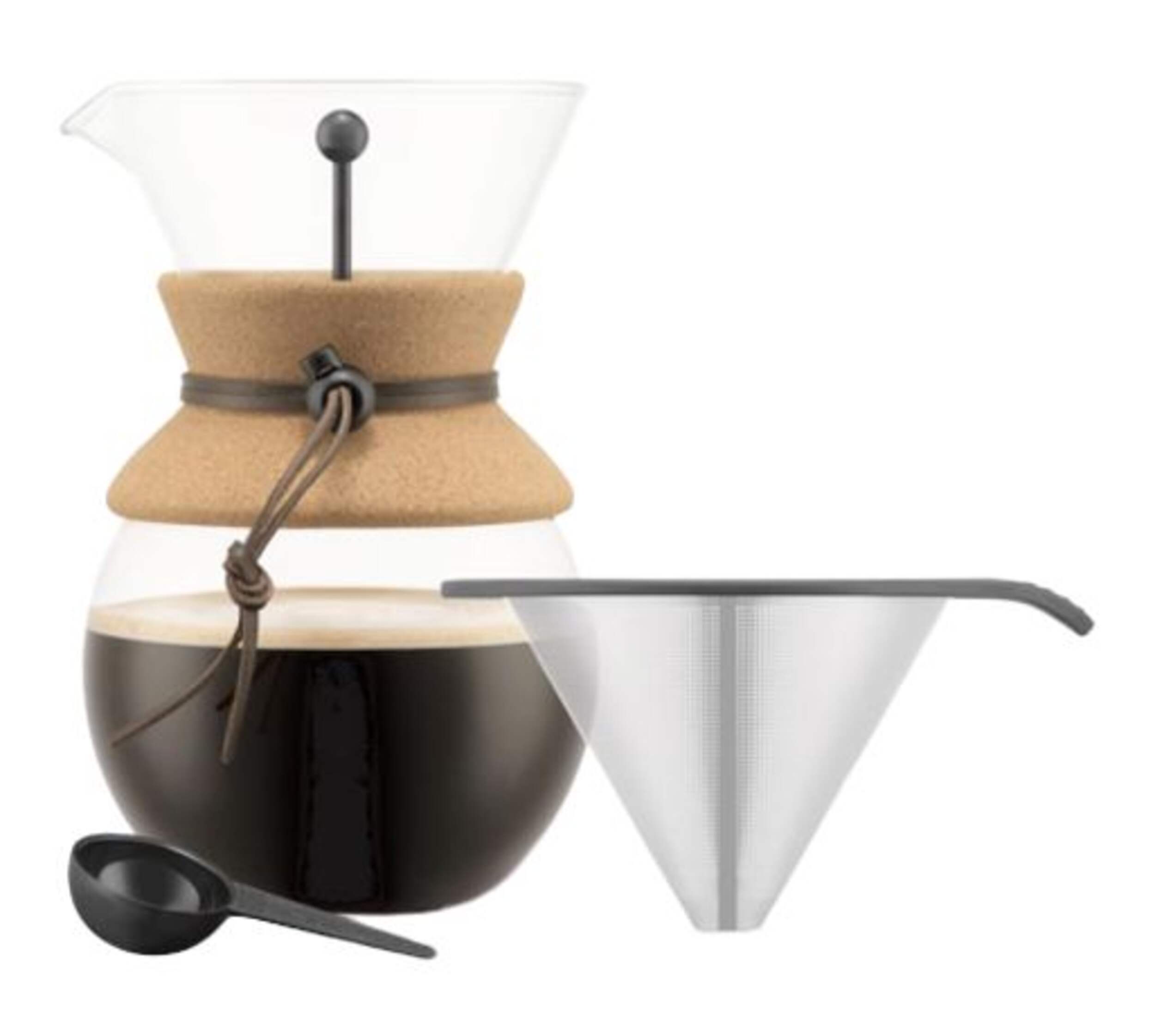 BODUM’s Pour Over coffee maker is the key to making richer, bolder coffee from the comfort of your home. Its design-led aesthetic is a stylish addition to any kitchen, but it’s the resulting full-bodied, smooth tasting coffee with a robust aroma that will win your heart. Made from premium quality borosilicate glass that doesn’t absorb taste or aroma, the beautifully shaped carafe is fitted with a permanent stainless steel filter for truly sustainable brewing. No wasteful paper filters that trap essential oils and flavor; just pure flavoursome coffee.