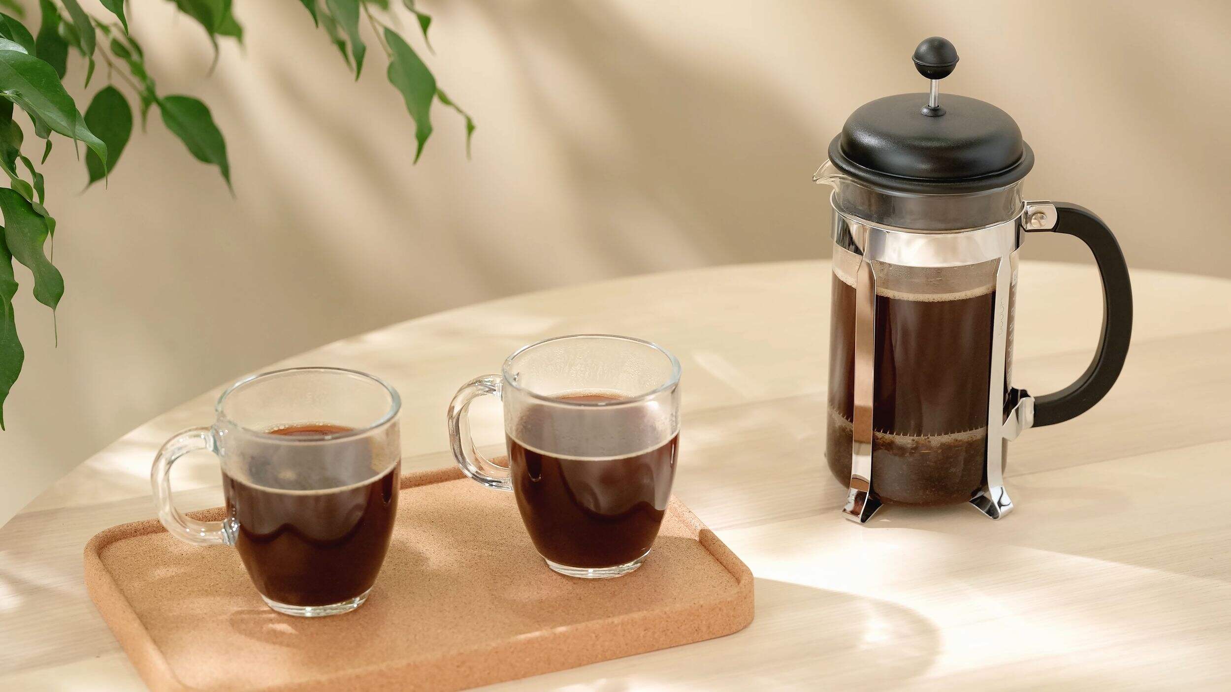 Caffettiera Set includes French Press Coffee Maker and 2 Glass Mugs