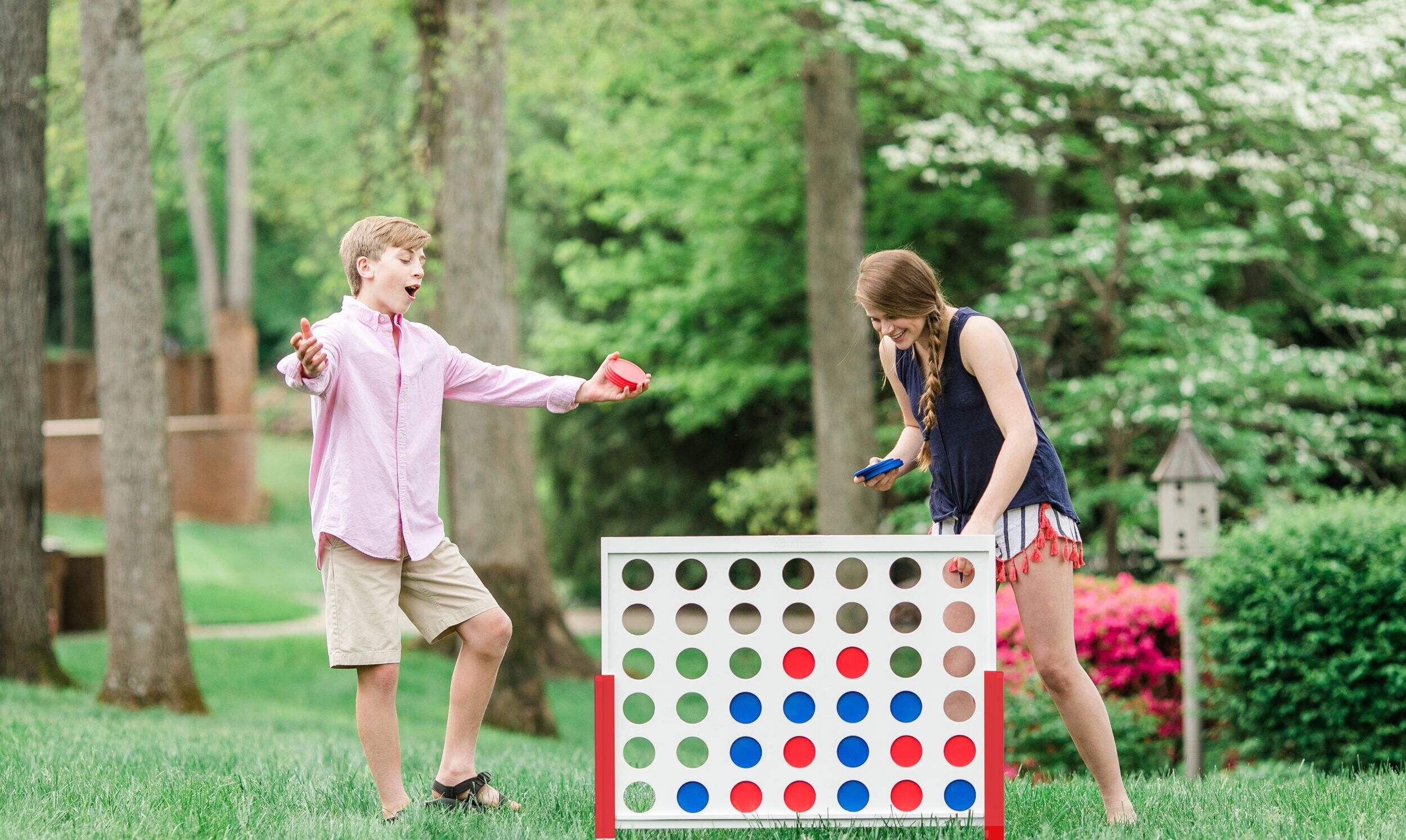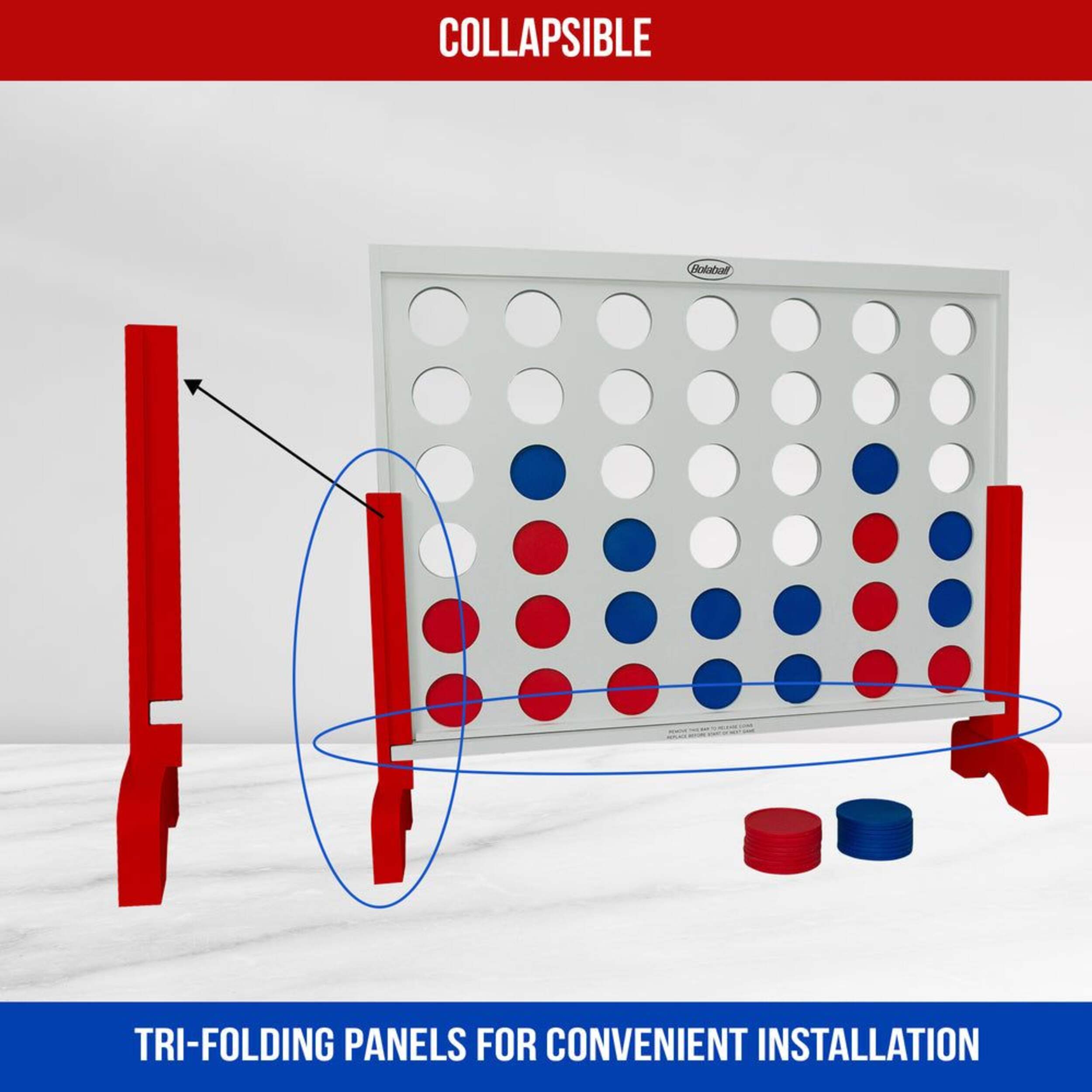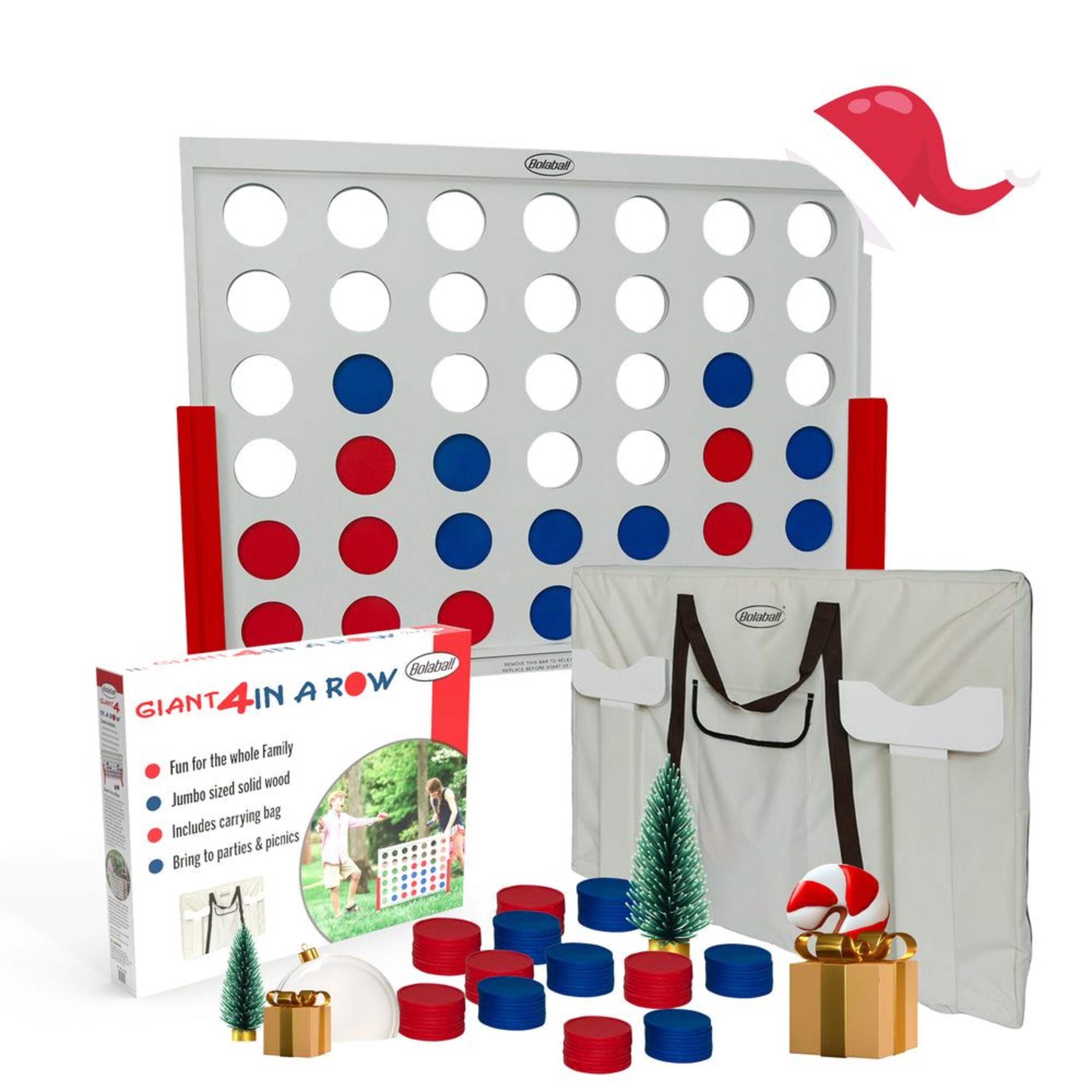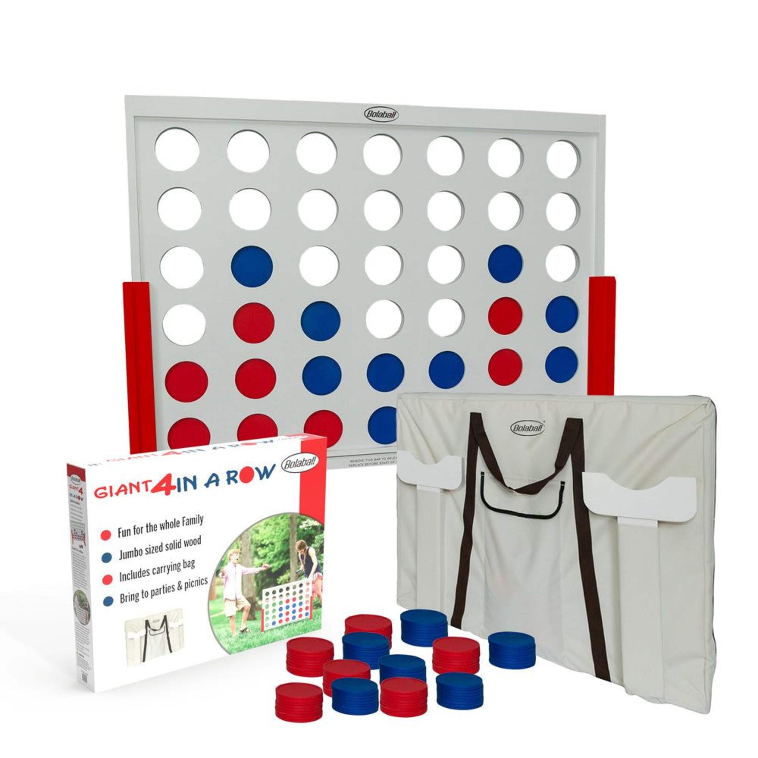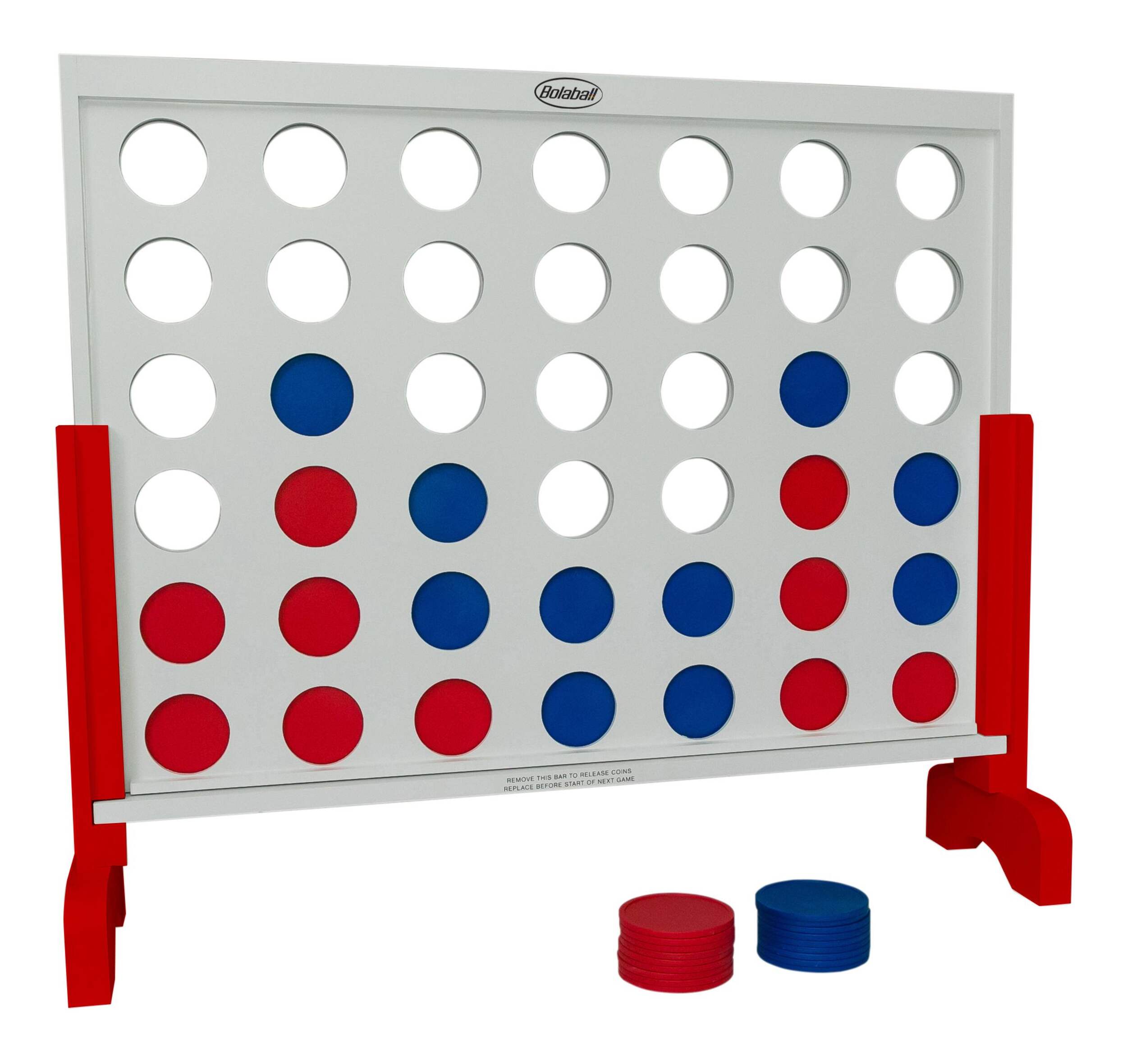 Bolaball Giant 4-In-A-Row Pro features a solid premium wood target
