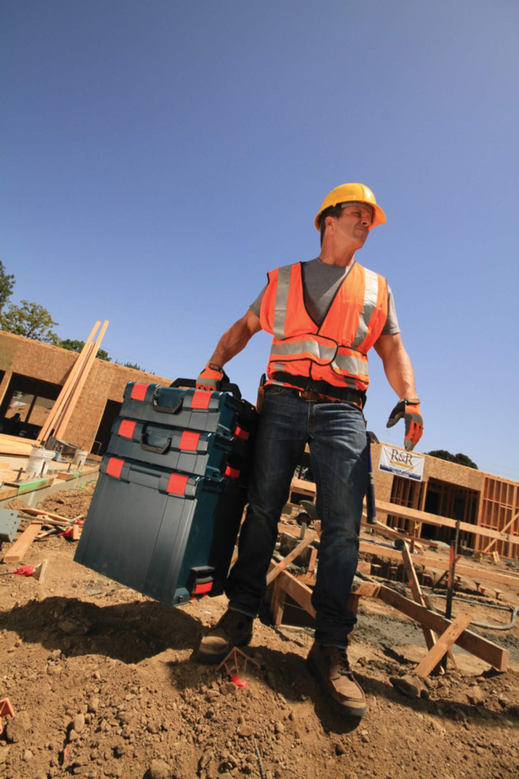 The Bosch L-Boxx stackable tool-storage system features cases that interlock on the top and bottom with other L-Boxx products to keep from slipping. Each case is designed so users can gain easy access even when the boxes are stacked. There are handles on the sides, front and top of this case, so the user can carry in whatever manner is most comfortable. The front handle is larger for easier gripping. The clips on the case are easy to lock down to keep the items inside from falling out. They also are simple to open quickly. The cases can lock with optional padlocks to avoid stolen tools. The Bosch Click & Go® system allows user to efficiently organize, store and transport their tools and accessories. The Bosch L-Boxx-1 Storage Case was designed to store many Bosch 12 V Max drill drivers, impact drivers and wrenches, oscillating multi-tools, jig saws and reciprocating saws.