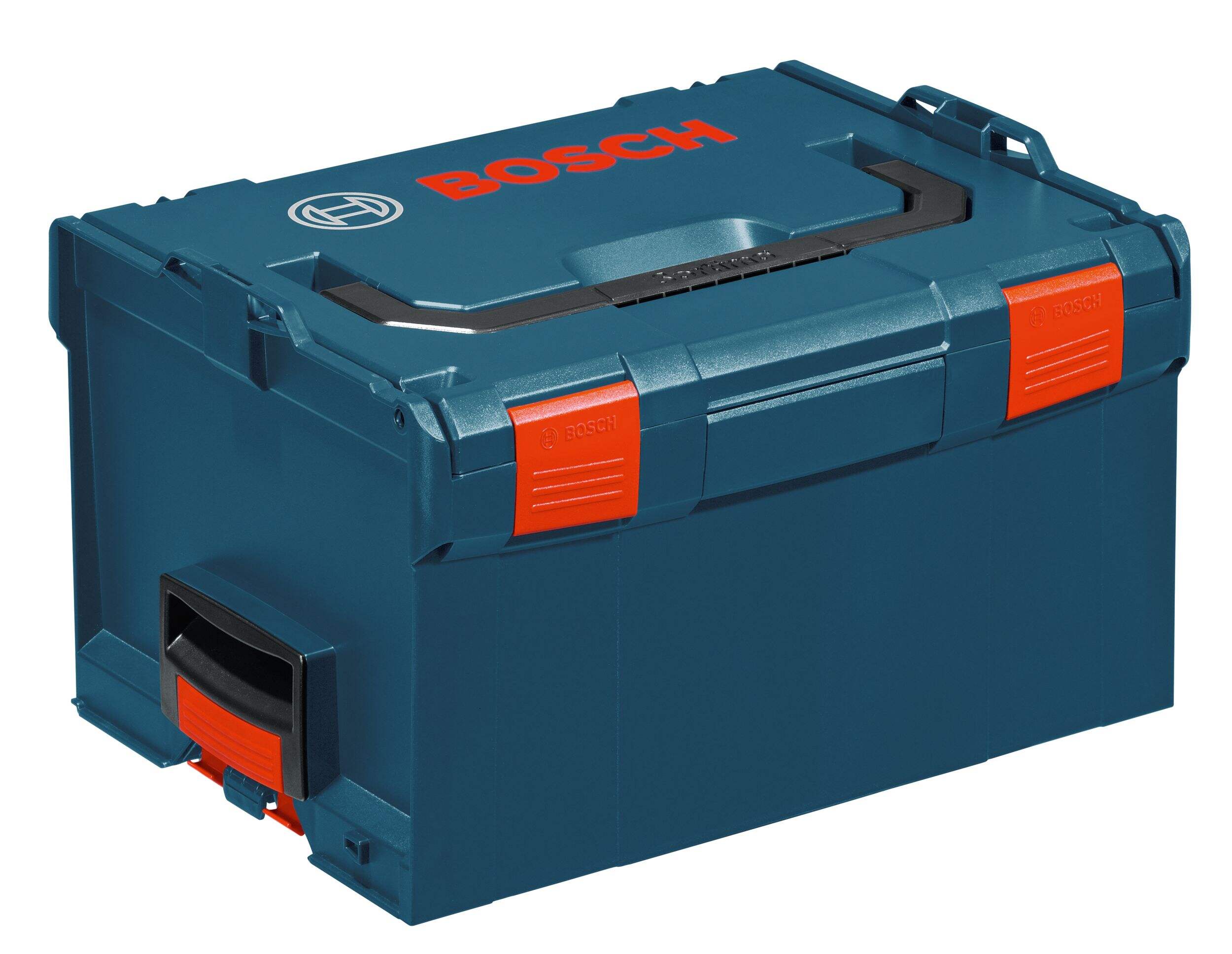 The Bosch L-Boxx stackable tool-storage system features cases that interlock on the top and bottom with other L-Boxx products to keep from slipping. Each case is designed so users can gain easy access even when the boxes are stacked. There are handles on the sides, front and top of this case, so the user can carry in whatever manner is most comfortable. The front handle is larger for easier gripping. The clips on the case are easy to lock down to keep the items inside from falling out. They also are simple to open quickly. The cases can lock with optional padlocks to avoid stolen tools. The Bosch Click & Go® system allows user to efficiently organize, store and transport their tools and accessories. The Bosch L-BOXX-3 Storage Case was designed to store many Bosch planers, routers, some sanders, cordless circular saws, band saws, reciprocating saws and other tools.
