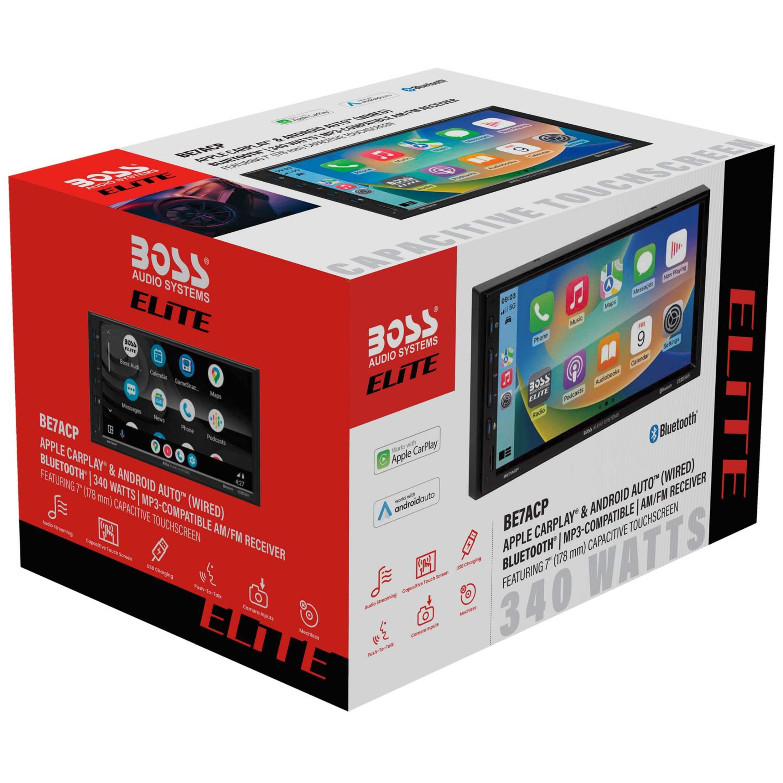 The Boss Audio Systems Elite BE7ACP Receiver instantly elevates your in-car entertainment. This multimedia powerhouse features a vibrant touchscreen that seamlessly integrates with Android Auto and Apple CarPlay, allowing you to access music, navigation, and apps using voice control. With built-in AM/FM radio and two USB ports you’ll always have access to versatile media options. Plus, the six amplifier preamp outputs and 10-band equalizer let you customize your audio experience for the perfect sound on every drive.