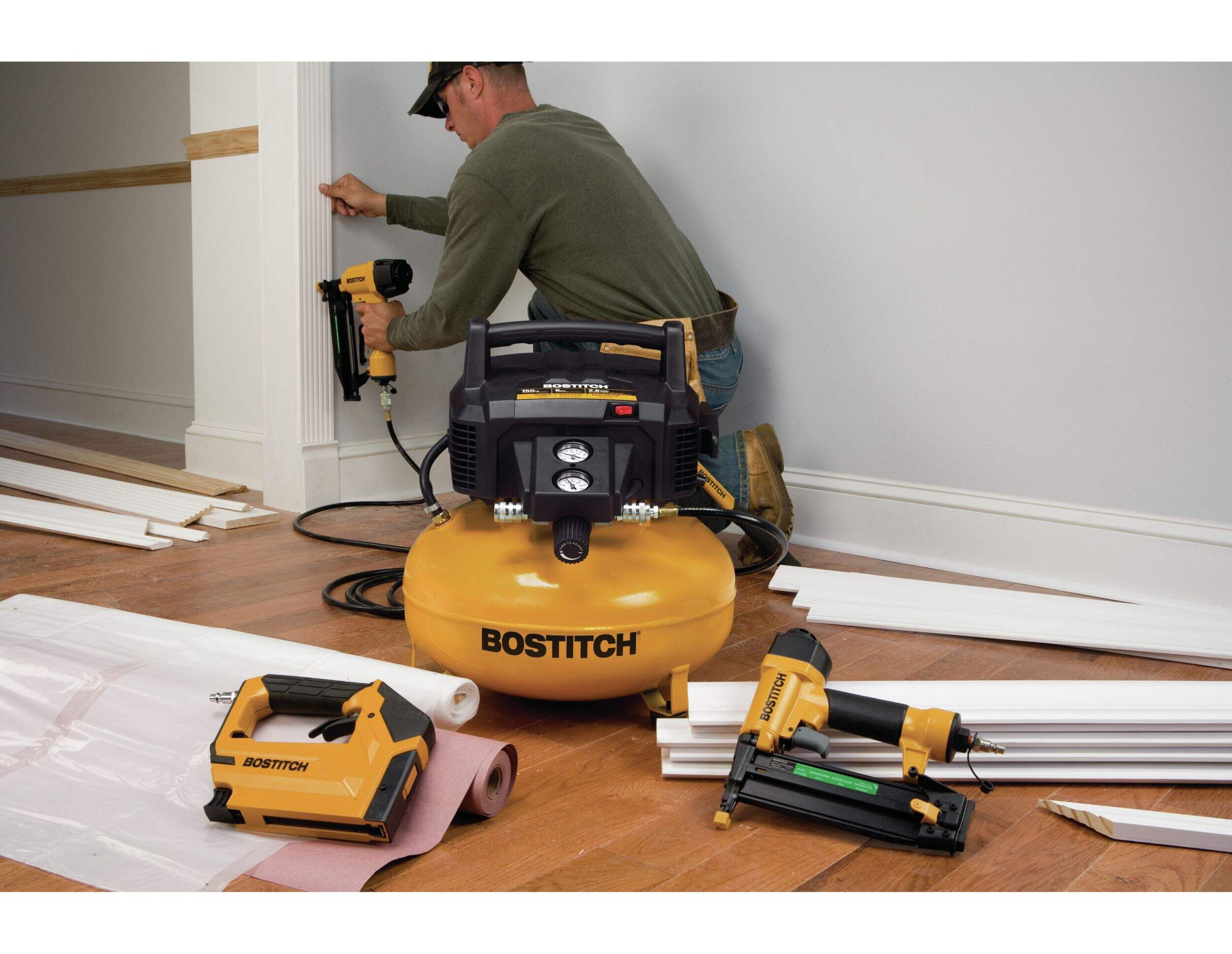 The Bostitch Oil-Free Portable 3-Gun Pancake Air Compressor Combo Kit offers reliable and powerful performance, delivering up to 150 PSI. This versatile air compressor is perfect for a wide range of tasks, including inflating tires, brad nailing, and stapling. The oil-free pump ensures minimal maintenance, while the portable pancake tank design makes it easy to transport and store. Perfect for those who need a portable, low-maintenance solution for various air-powered tasks.