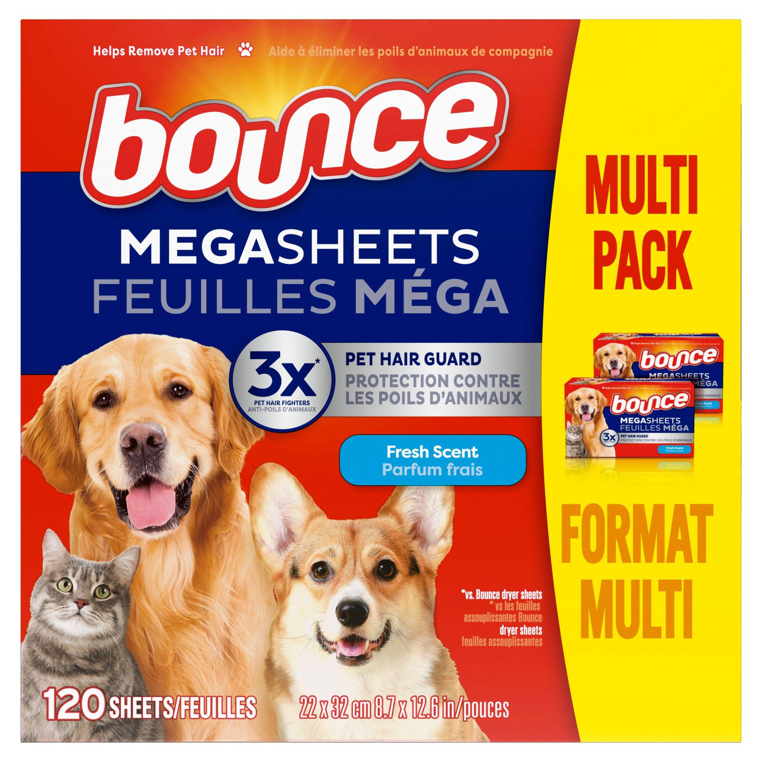 Give your furry friends a hug! Bounce Pet Hair & Lint Guard Mega Dryer Sheets repel pet hair from your clothes before it sticks. Simply toss a sheet into the dryer to bounce out pet hair and lint. Bounce dryer sheets also reduce wrinkles and static while adding extra softness to your clothes. Thanks to Bounce, you can love your pet and lint roll less.