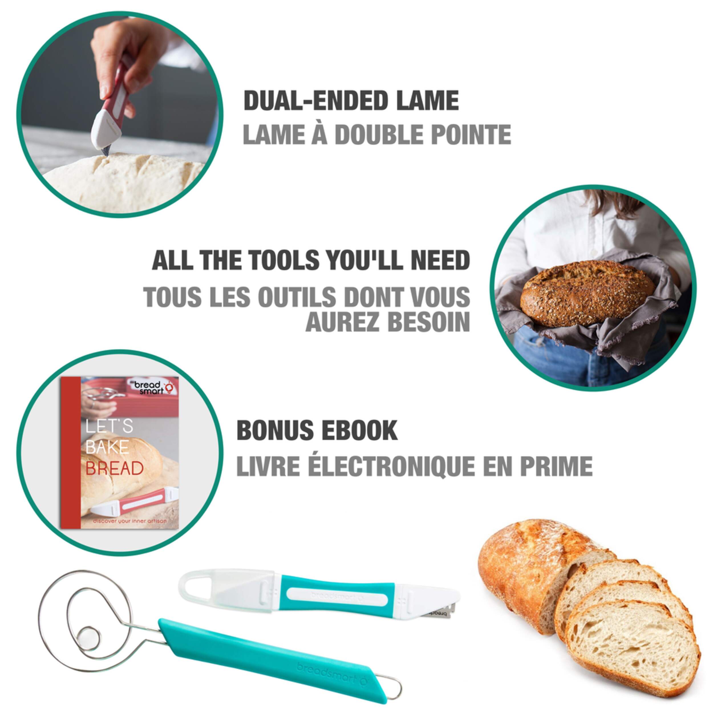 The Breadsmart Breadmaking Tool Kit has everything needed to start baking homemade artisan bread in the oven. The comprehensive tool set is easy to use for all experience levels and requires no bread machine.