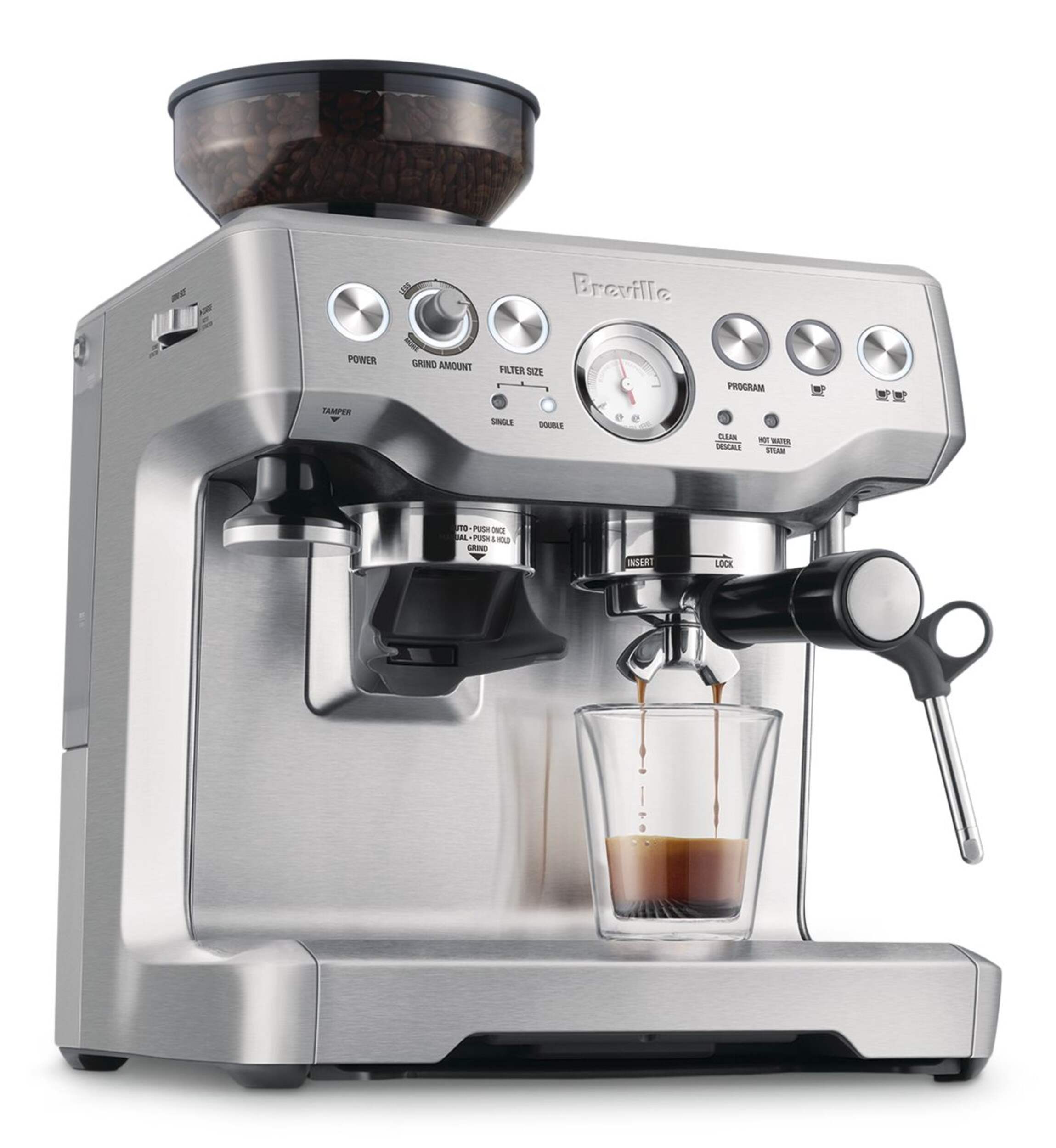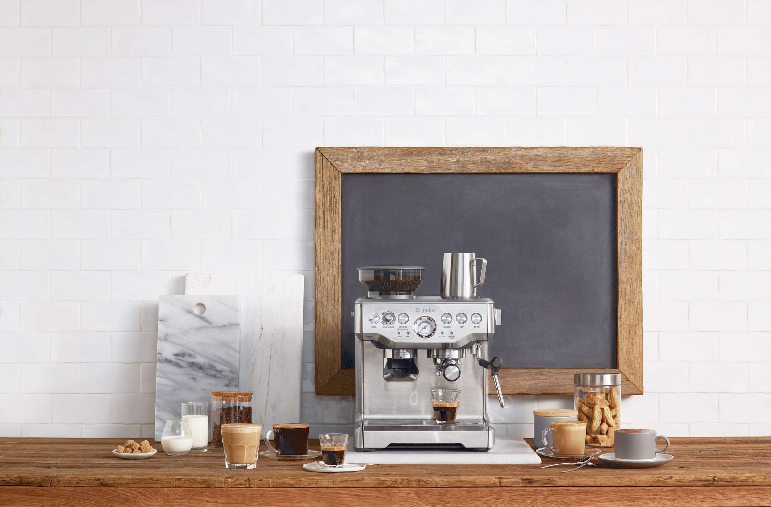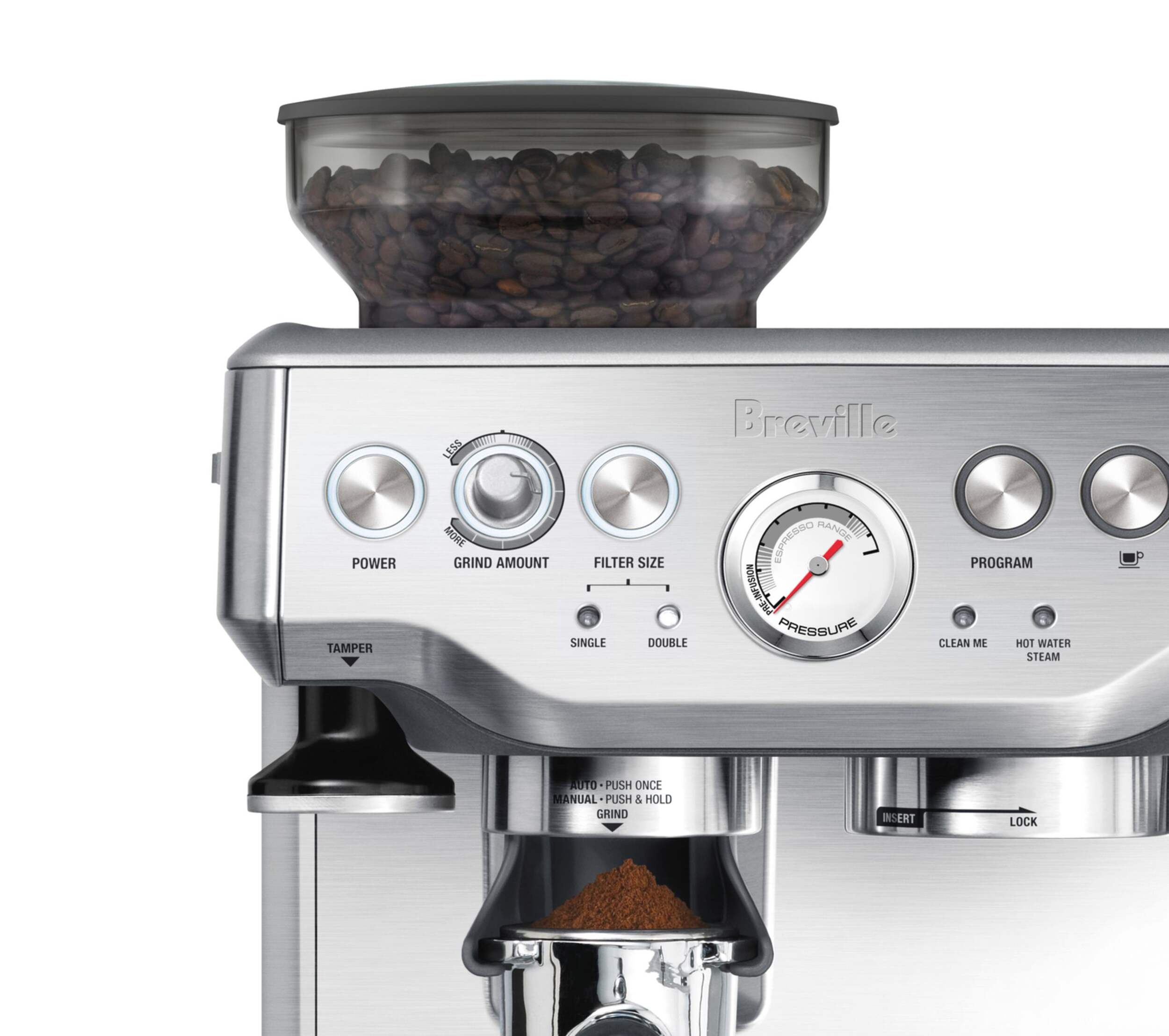 Create third wave specialty coffee at home from bean to espresso in less than a minute with the Breville Barista Express™ Semi-Automatic Espresso Machine. The Barista Express allows you to grind the beans right before extraction for a rich full flavour and its precise temperature control ensures optimal espresso extraction for consistently delicious coffee.