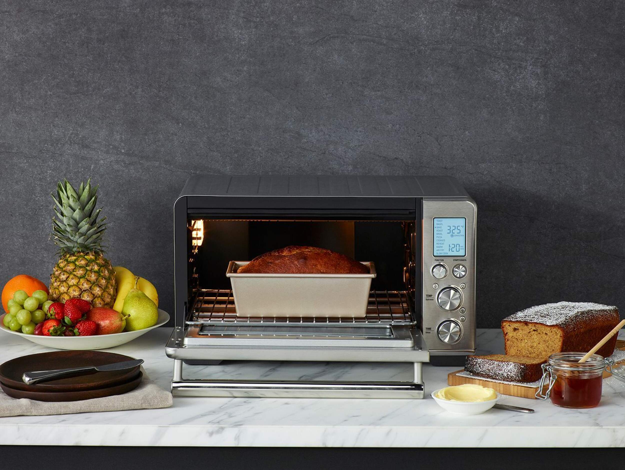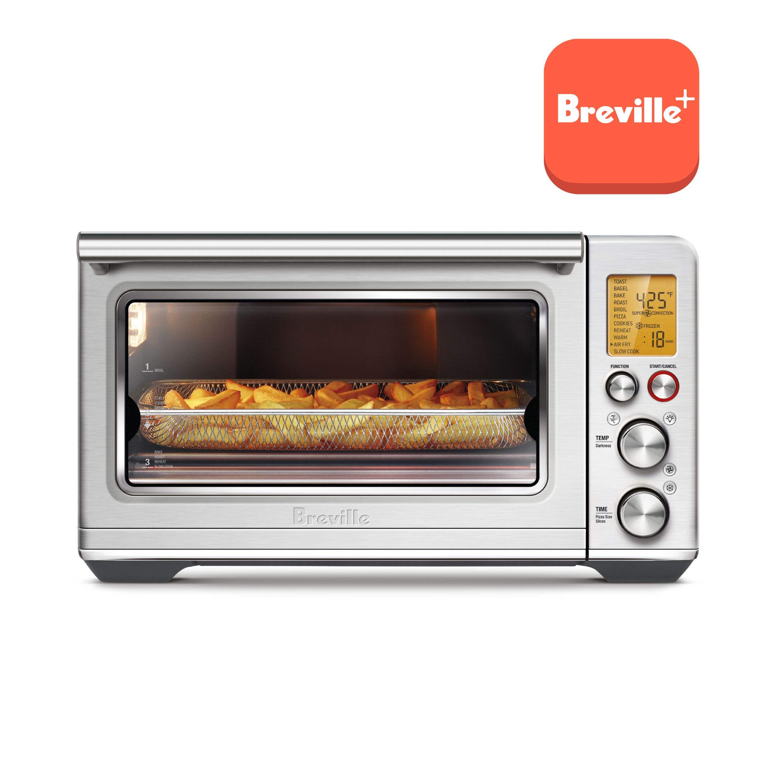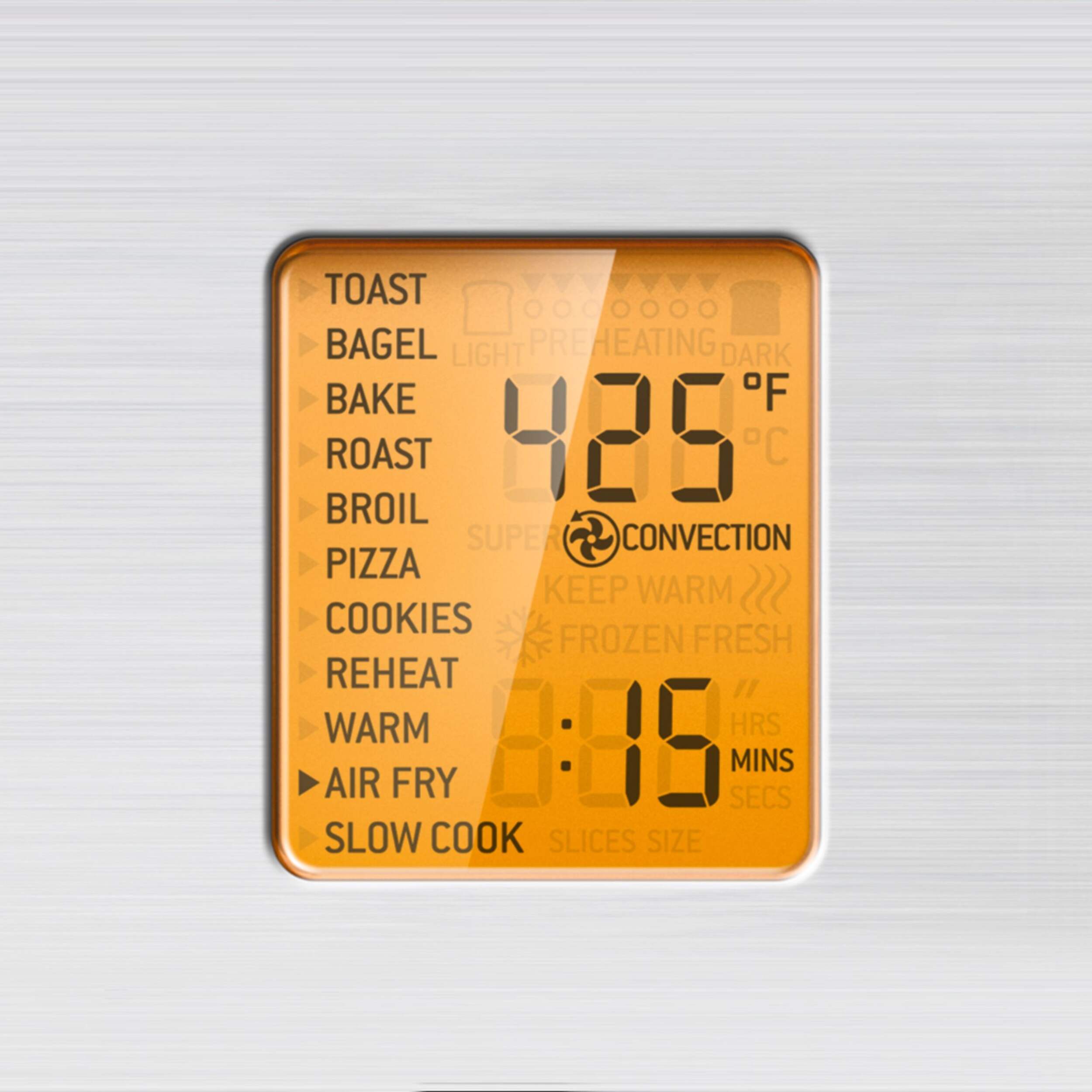11 cooking functions: Toast 6 slices, Bagel, Broil, Bake, Roast, Warm, Pizza, Air Fry, Reheat, Cookies and Slow Cook for long cook times, at low temperatures