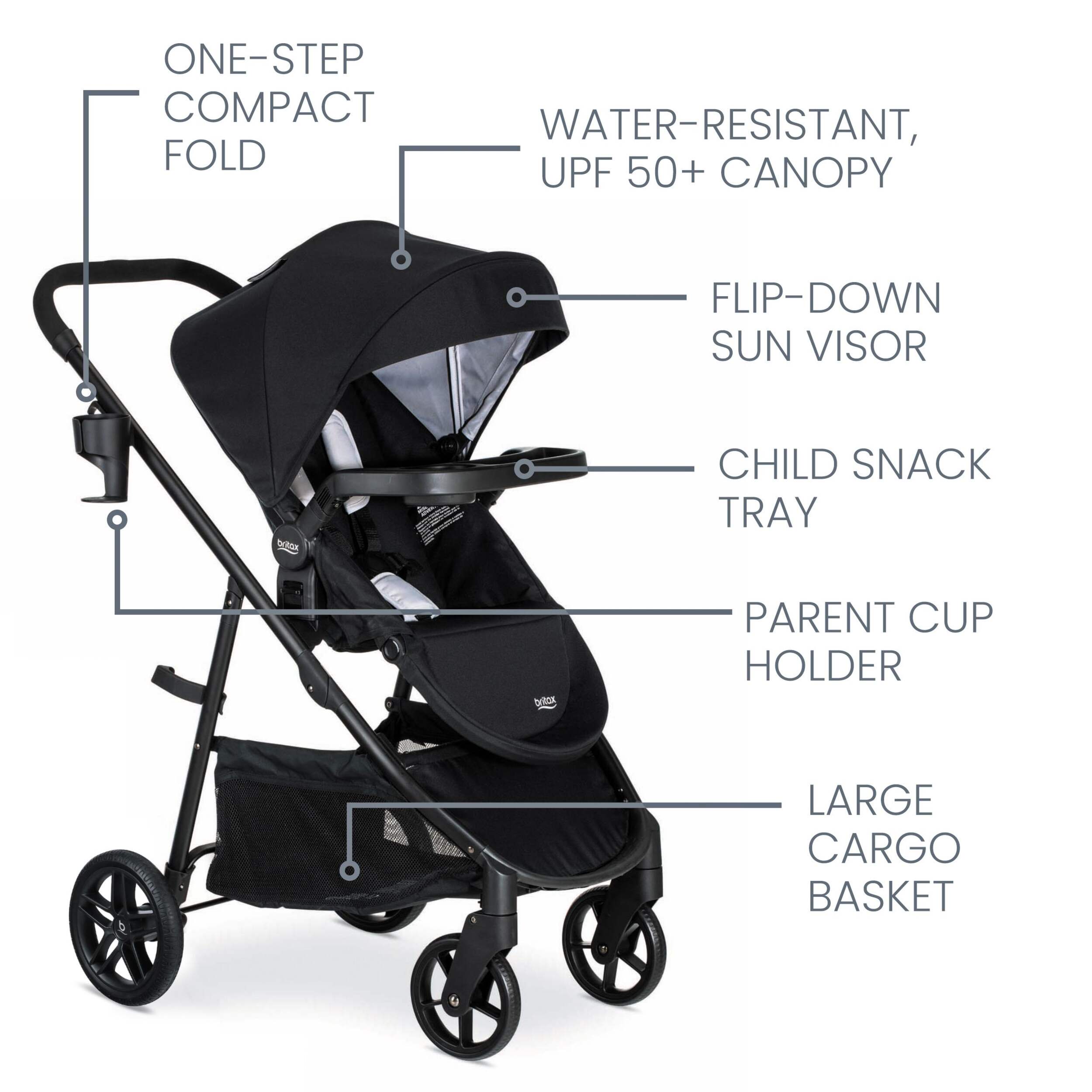 Britax Modular Travel System features an infant car seat for use from 4-35 lb rear-facing only