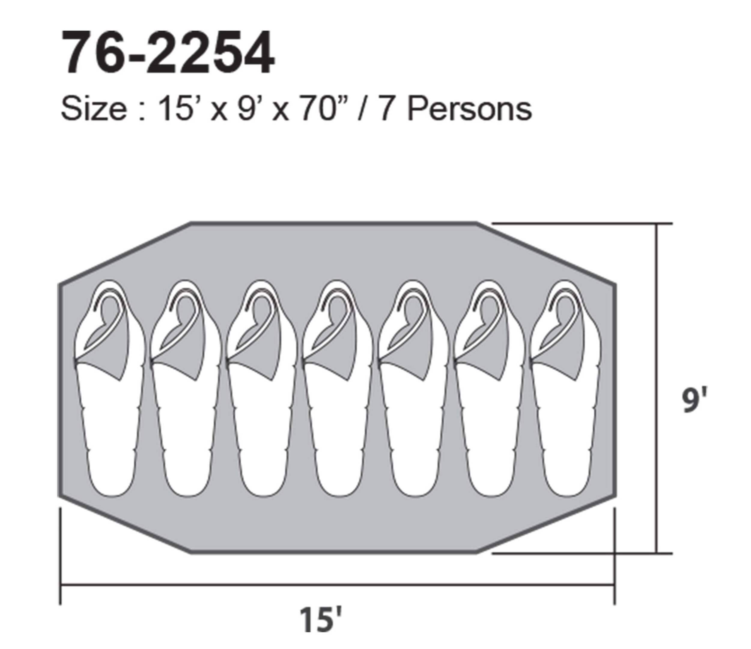 Dimensions: 15' L x 9' W x 5' 10" H (457 x 274 x 182 cm)