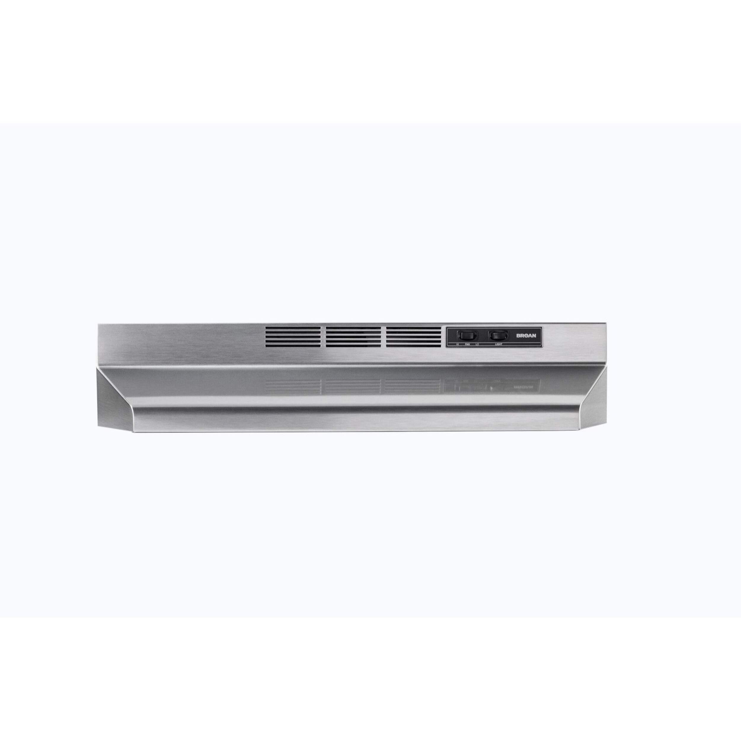 The BU2 Stainless-Steel Finish Under-Cabinet range hood offers great ventilation with a stainless-steel finish that resists fingerprints and includes the look and feel of a premium range hood without the premium price. This 230 CFM MAX blower, HVI-certified range hood outperforms over-the-range microwaves at removing smoke, odours and other pollutants from the air in your kitchen. And, at 3.5 sones on normal speed, you'll enjoy sound levels no louder than a normal conversation.