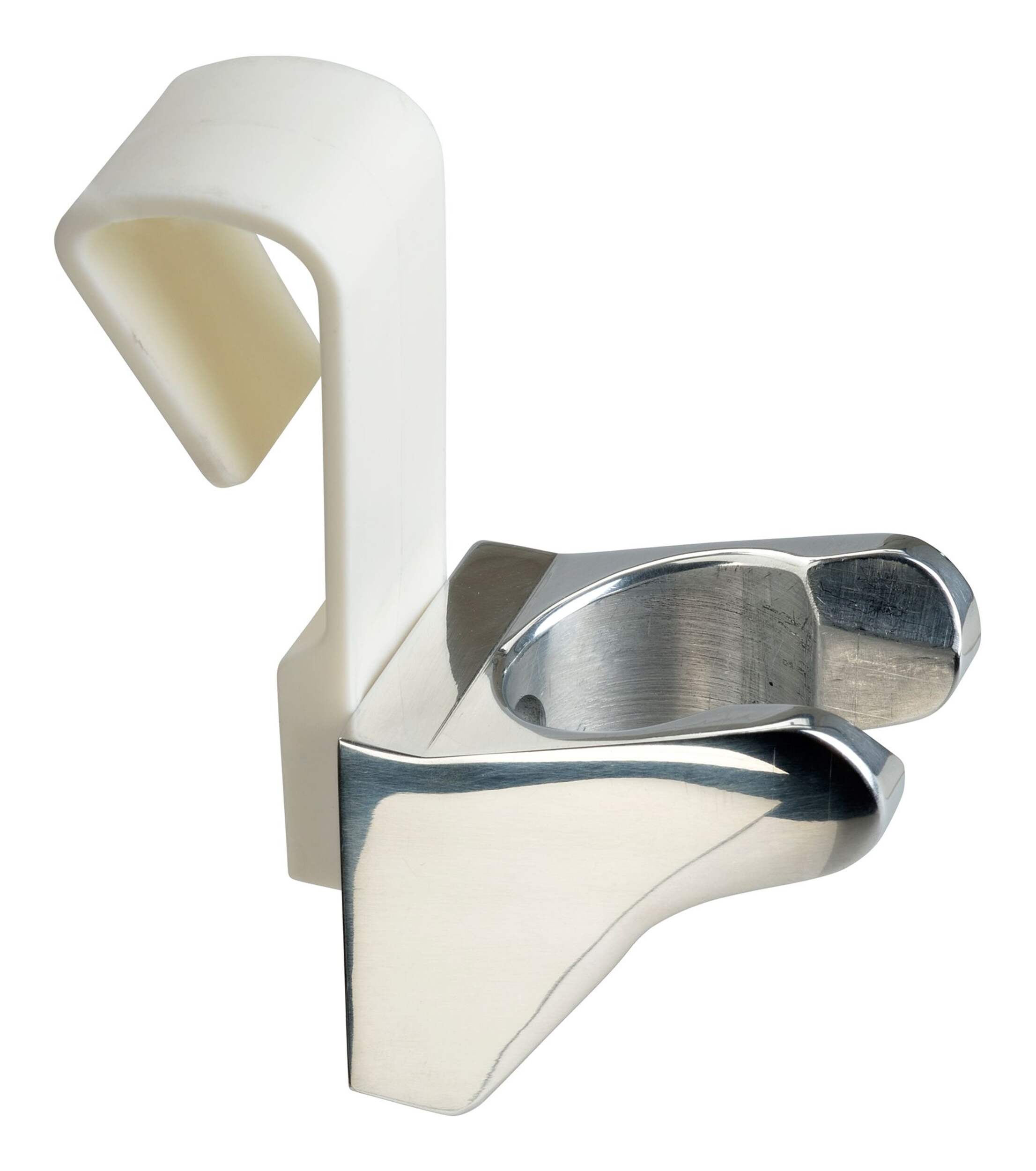 Adjustable holster offers flexibility for wall or toilet mounting to suit different setups
