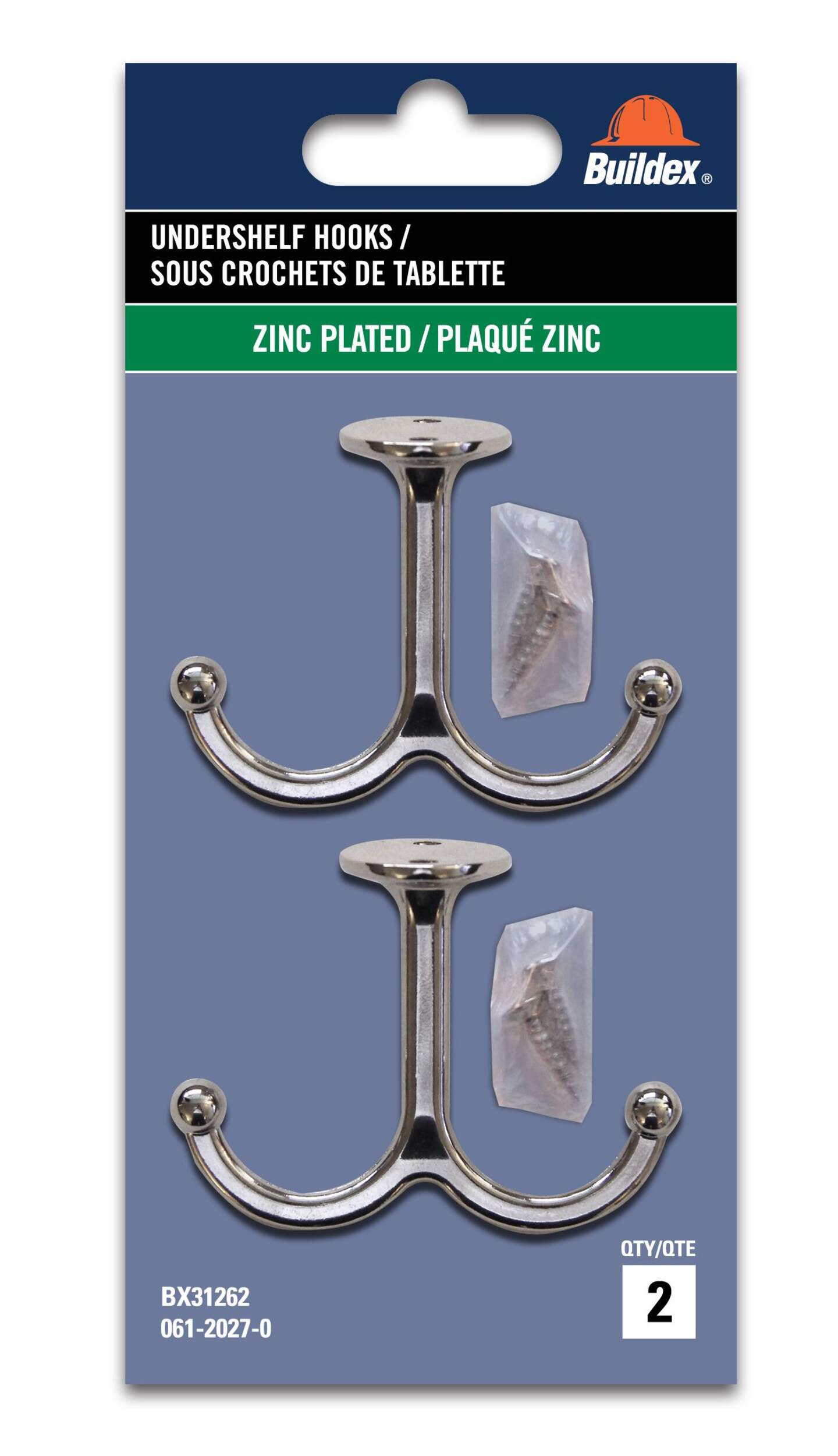 Buildex's undershelf hooks make use of every inch of space under cabinets and shelves. The zinc alloy hooks and fasteners keep items from falling but stay discreet with a brushed finish that goes with any decor. The two hooks and screws included let you hang pots, pans, dish towels, and more while keeping them within easy reach.