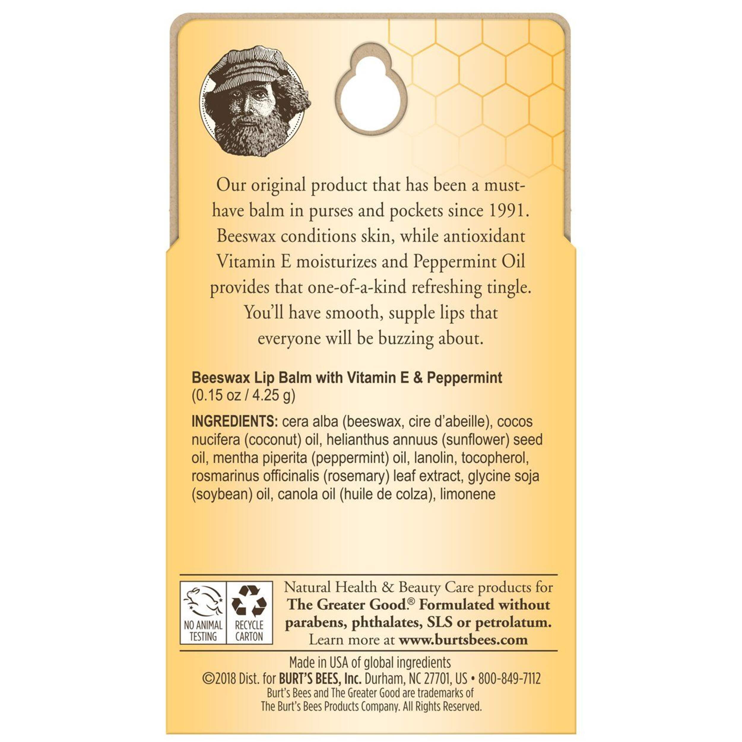 Burt's Bees Lip Balm, Beeswax, helps lips feel their best with the natural powers of beeswax. This 100% Natural lip balm is made with beeswax and other beneficial ingredients, which help leave your lips feeling conditioned and hydrated, and a small dash of peppermint provides the finishing touch to this luscious lip balm. It is also free of parabens, phthalates, petrolatum and SLS, and fits perfectly in your purse, backpack or pocket. Spread on a little TLC with Burt's Bees moisturizing lip balm.