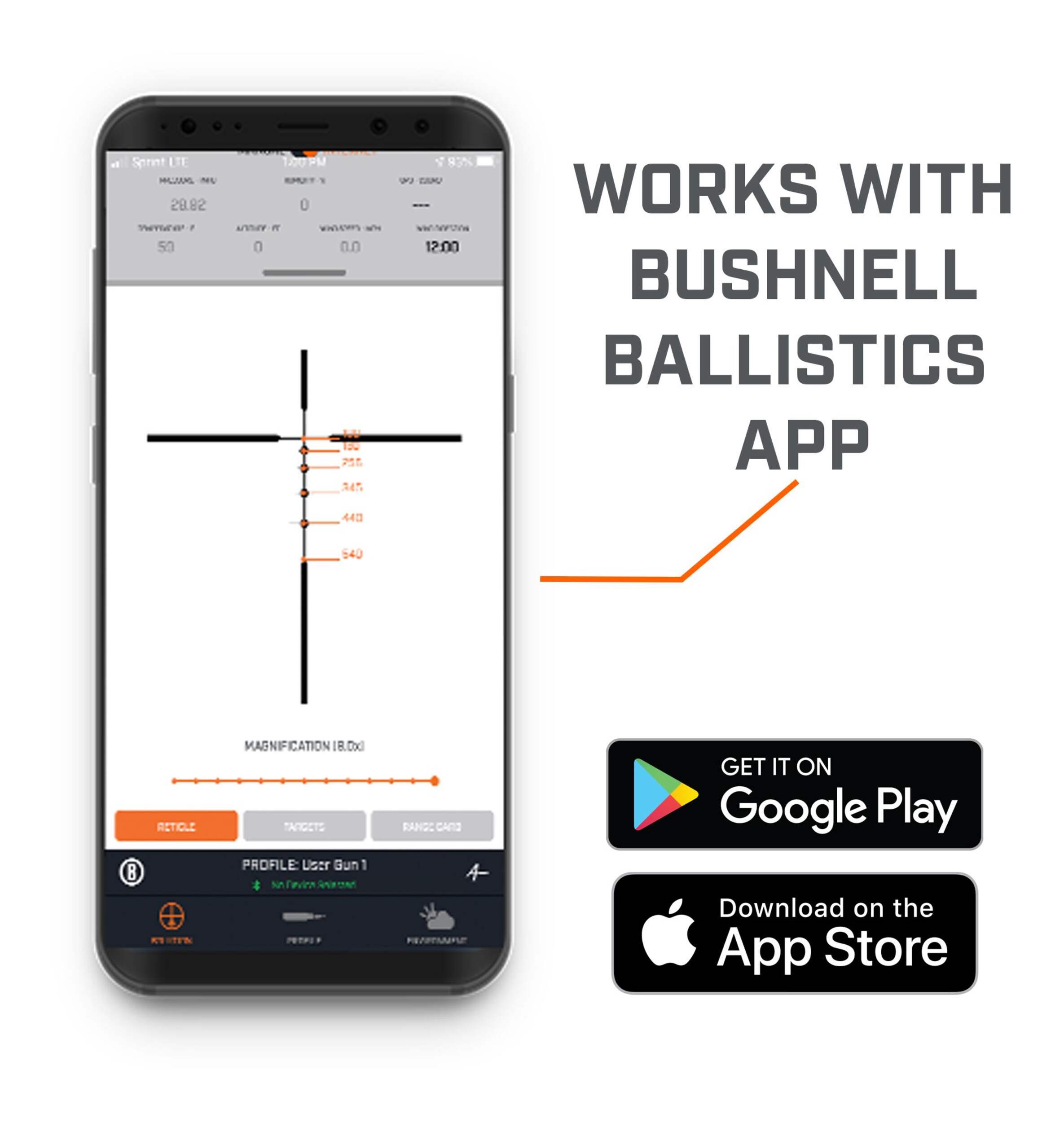 Quickly determine your exact distances on the reticle with the free Bushnell Ballistics App