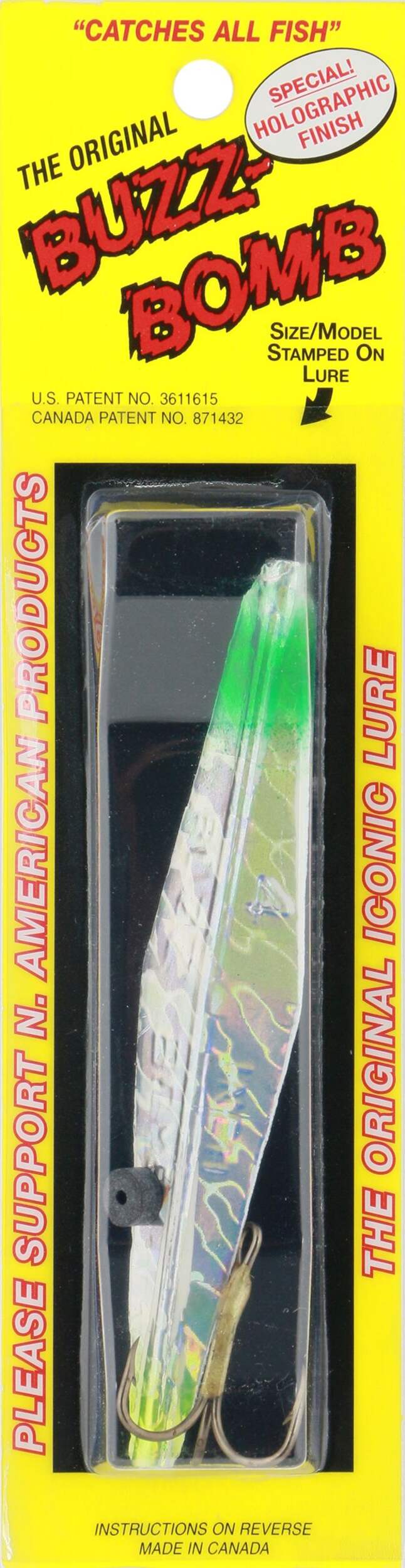 This 4-inch jig lure from BuzzBomb attracts fish through its annoying sonic abilities and erratic flashing action, provoking even large fish into striking voraciously. The treble hook and rubber bumper help hook fish of all sizes once they're aggravated into biting. Available in assorted colors, it's perfect for anglers who need to catch a limit quickly - just wind, drop and reel.