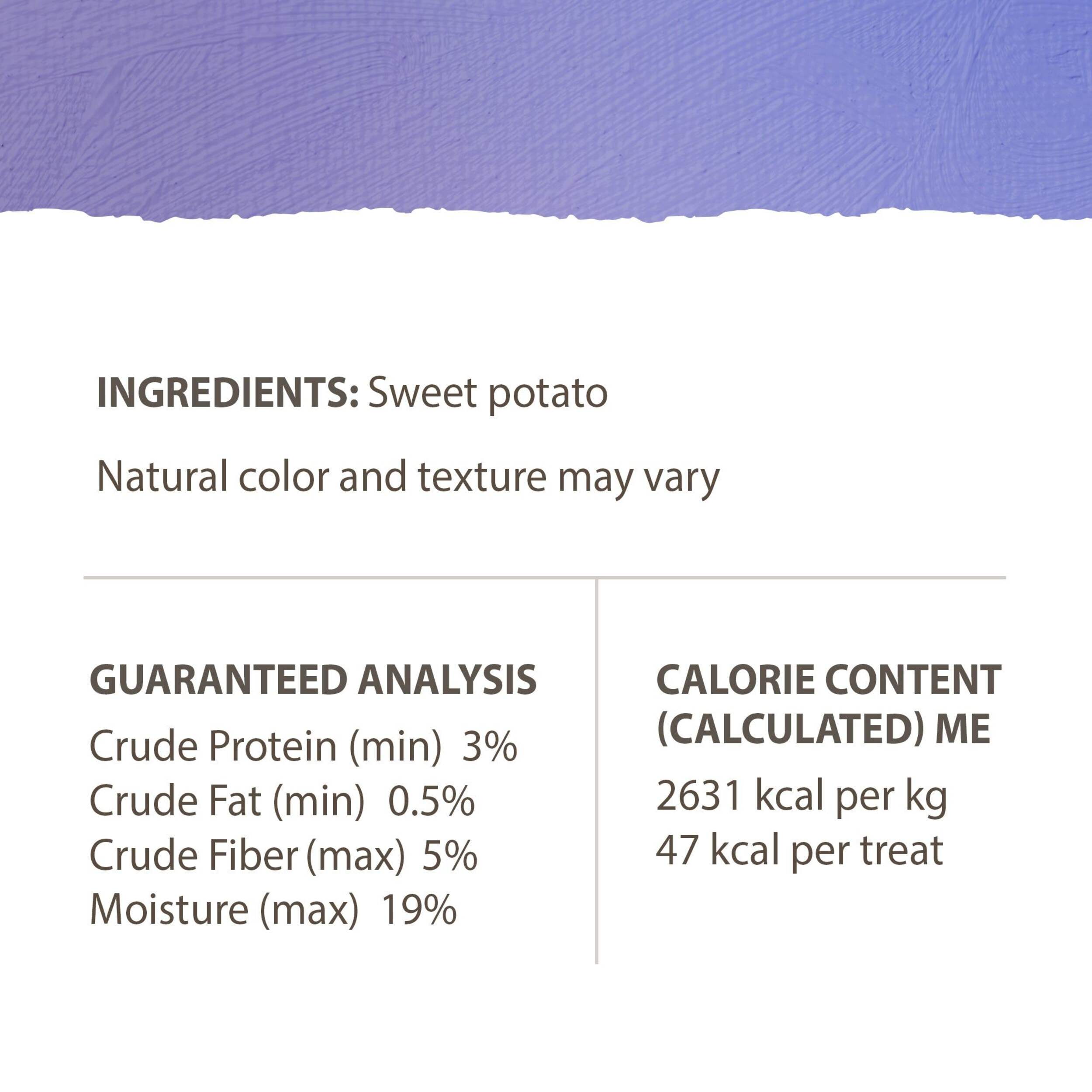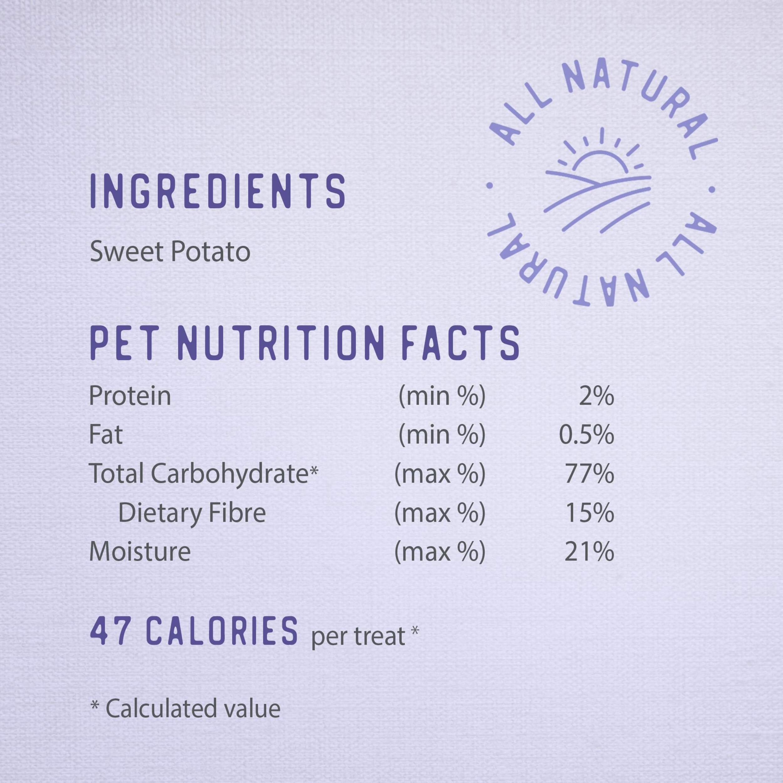 Treat your furry pal to Caledon Farms Sweet Potato Chews All Natural Dog Treats, 265-g - a healthy, all-natural alternative to traditional dog treats. Made with sweet potato as the sole ingredient, these hearty chews are minimally processed and handcrafted in small batches by a family-owned Canadian company. High in fibre and great for digestion, these pet treats are the perfect guilt-free indulgence for your four-legged friend. Simply sit back and watch their tail wag as they enjoy these tasty, wholesome dog treats.
