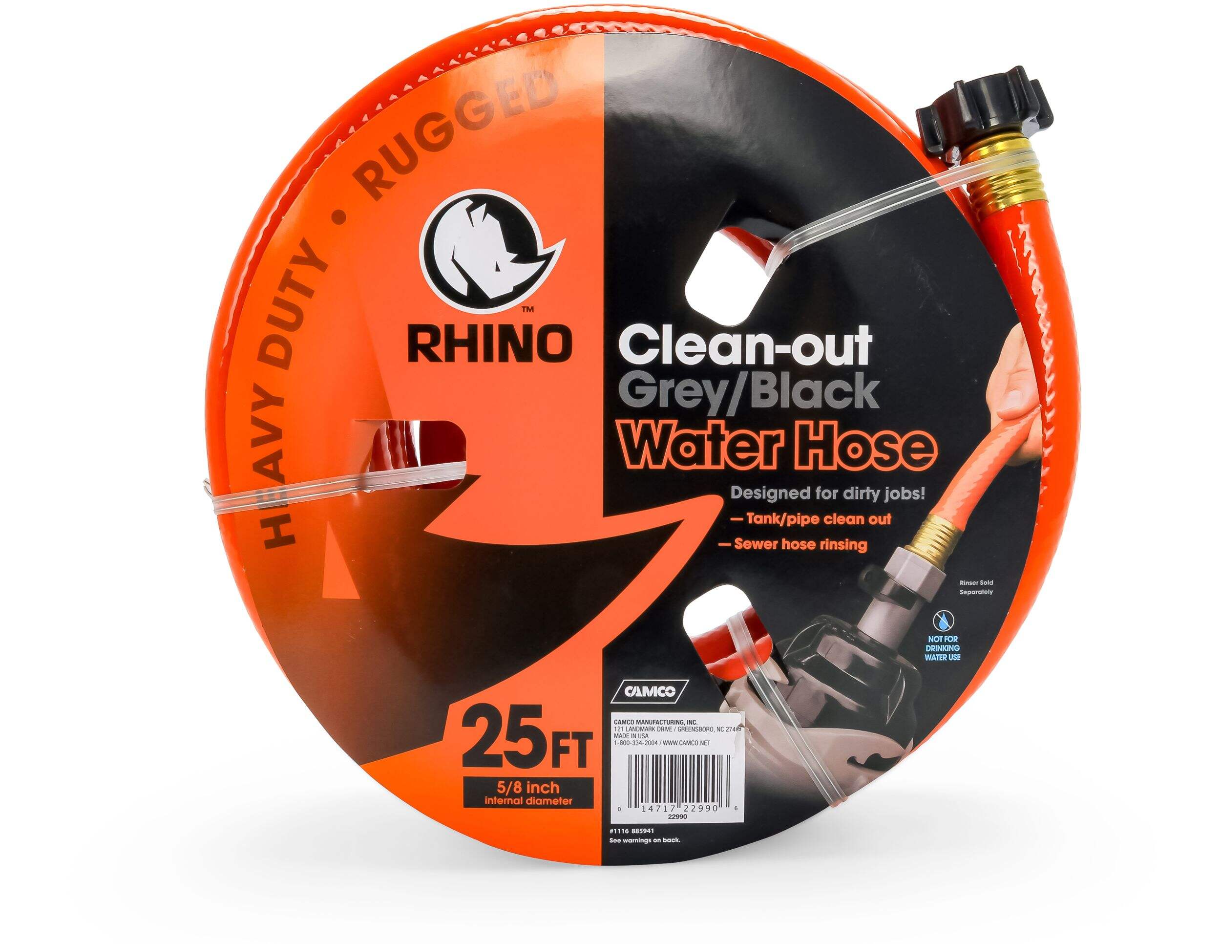 Make RV maintenance easy with the CAMCO 22991 Rhino Clean Out Water Hose. It is crafted from heavy-duty PVC, providing durability for frequent use. With a 5/8″ internal diameter, this hose offers efficient water flow and compatibility with standard water faucets, grey water drains on pop-up campers, and rinsers for both black and grey water tanks. This versatile accessory is essential for keeping your RV clean and ready for your next adventure.