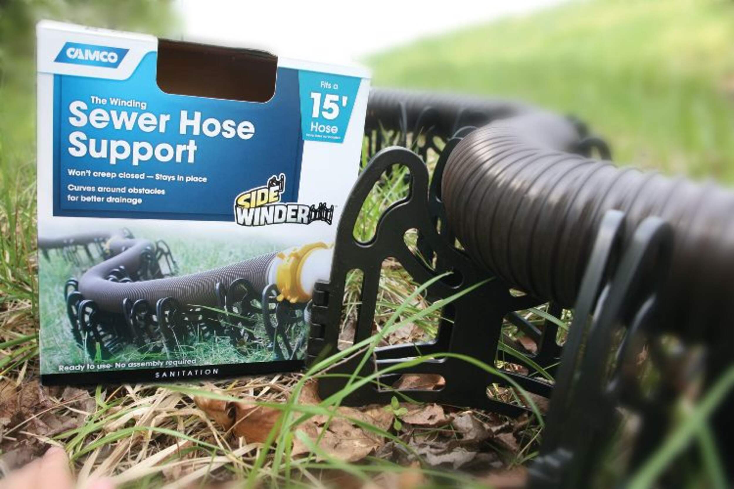 The CAMCO 43041 Sidewinder RV Sewer Hose Support helps to ensure stable, hassle-free drainage by lifting and guiding your sewer hose, so waste can flow downhill. This support stays in place and will not creep closed, providing reliable drainage even over uneven terrain. Made from sturdy, lightweight plastic with no-rust parts, it’s ready to use right out of the box. The support also includes a convenient handle for easy carrying, offering convenience and durability for RV campers.
