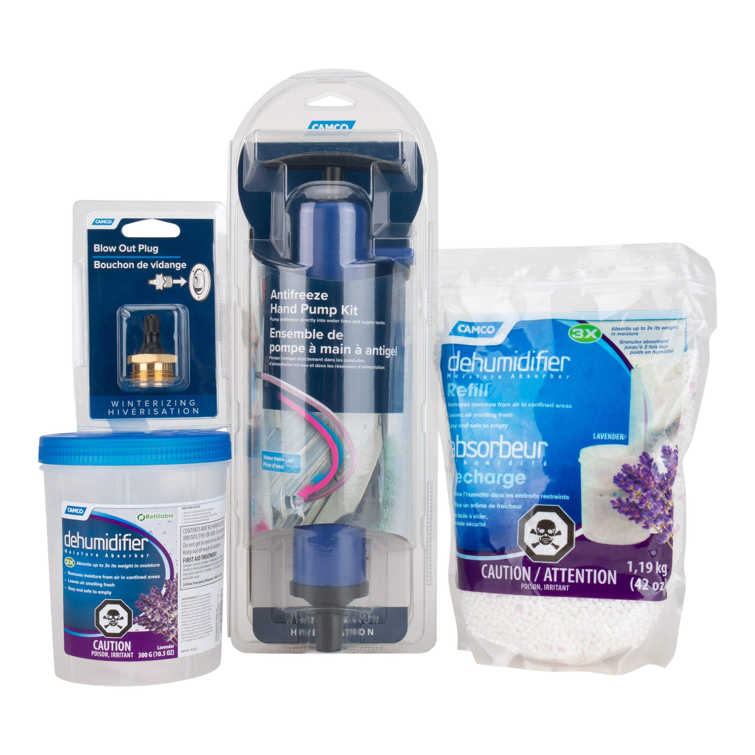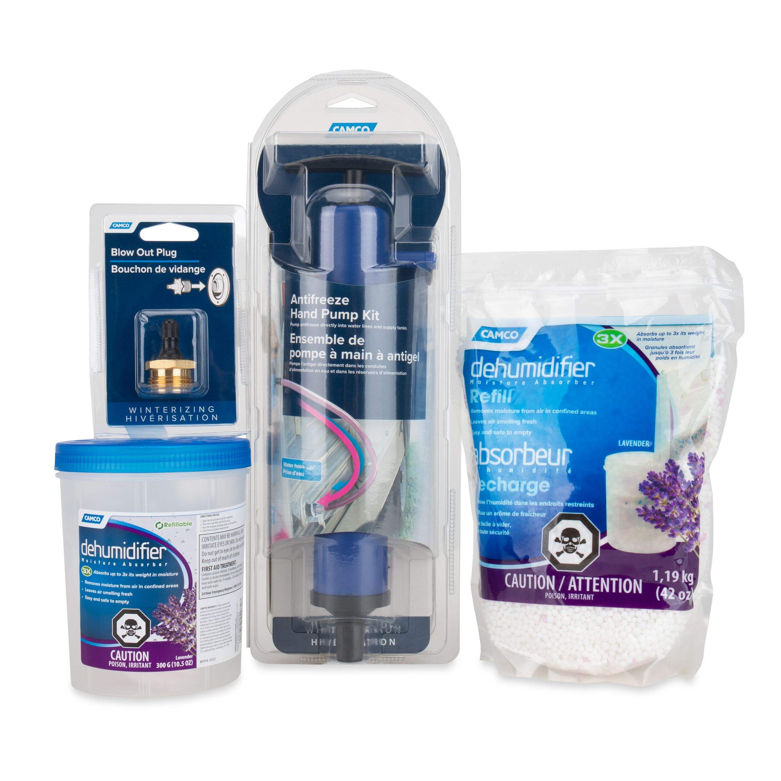 Includes CAMCO Hand Pump (0408813), CAMCO Blow Out Plug (0401971), CAMCO Moisture Absorber (0408287), and CAMCO Moisture Absorber Refill (0408291)