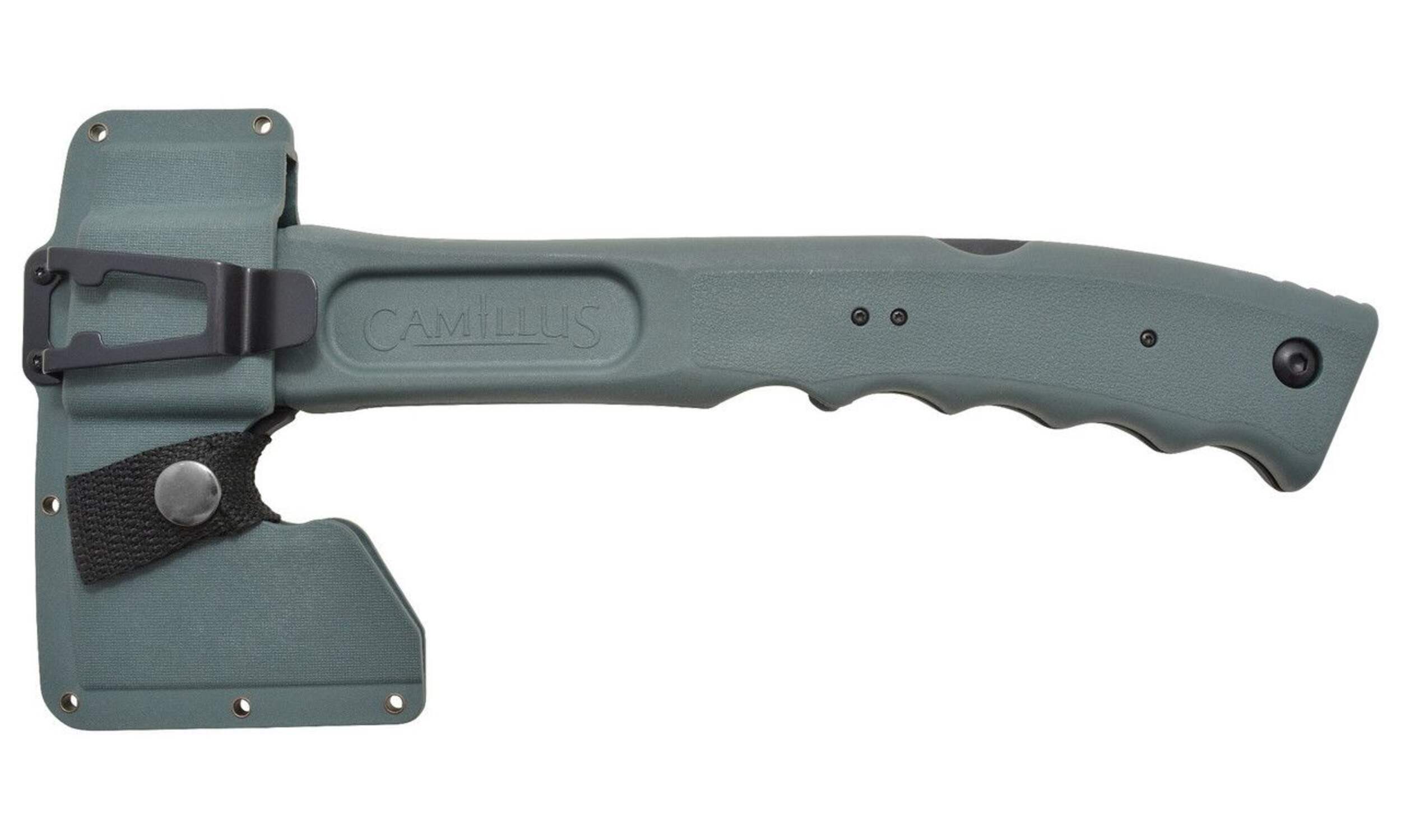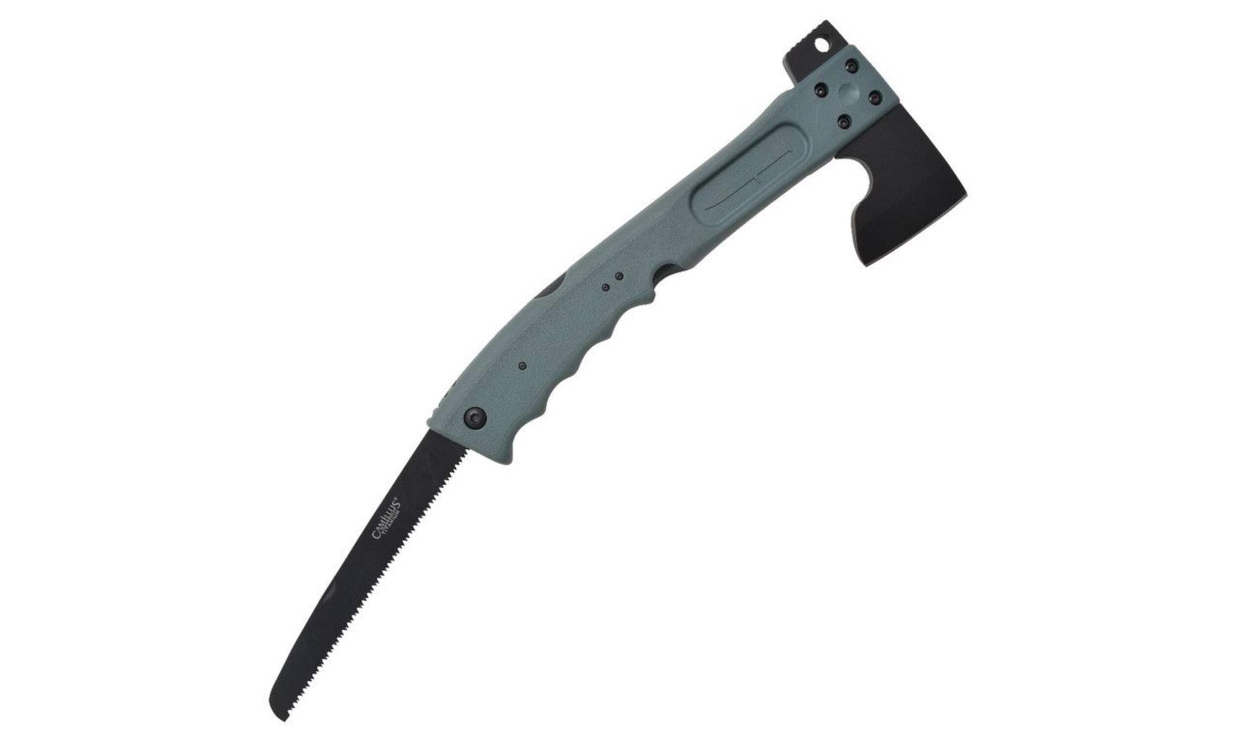The Camillus CAMTRAX 3-in-1 Hatchet is a model of technical prowess and unsurpassed versatility. Including a hatchet, lockback saw, and hammer with a moulded sheath to secure it all, this high-tech multi-tool has an answer for every outdoor challenge. Lightweight, corrosion resistant and incredibly strong, this survival hatchet includes an integrated bottle opener and Lifetime Manufacturer's Warranty.