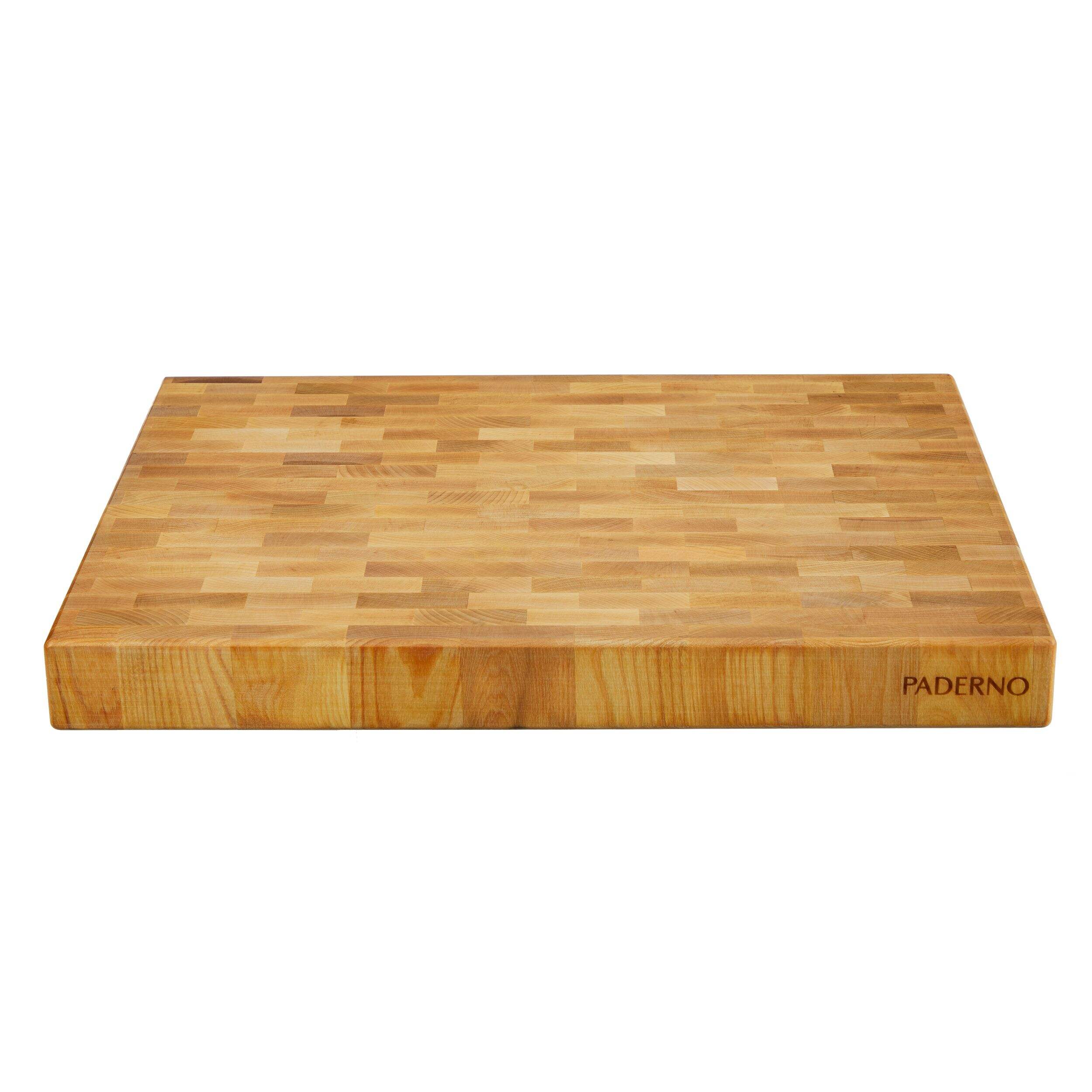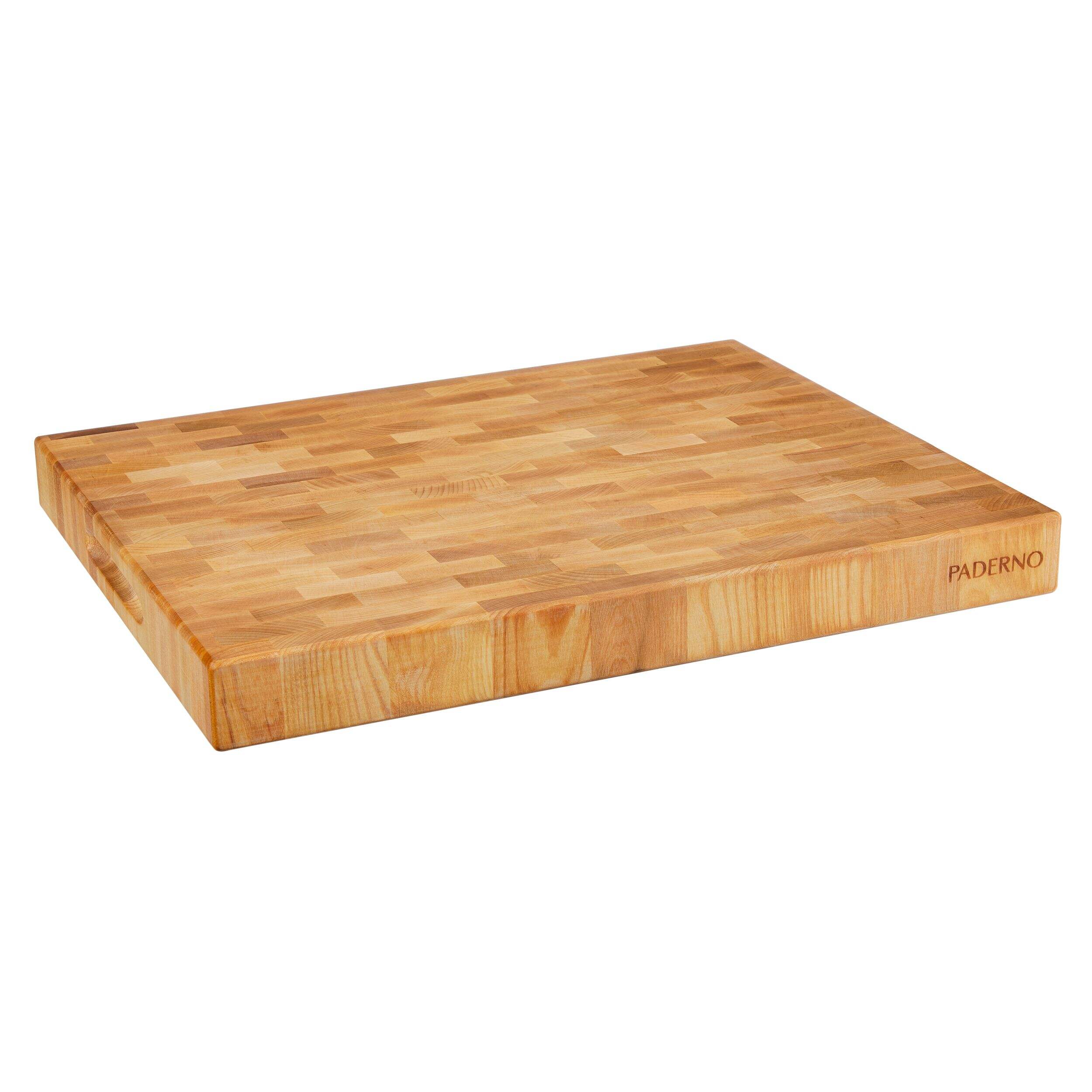 Functional enough for food prep, yet stylish enough for serving your guests, the PADERNO Butcher Block is a versatile addition to any modern kitchen. Made from high-quality, recycled Canadian maple hardwood, this skid-resistant cutting board preserves and protects your countertops as a durable platform for chopping and slicing, and also serves as an elegant serving board for your charcuterie platter.