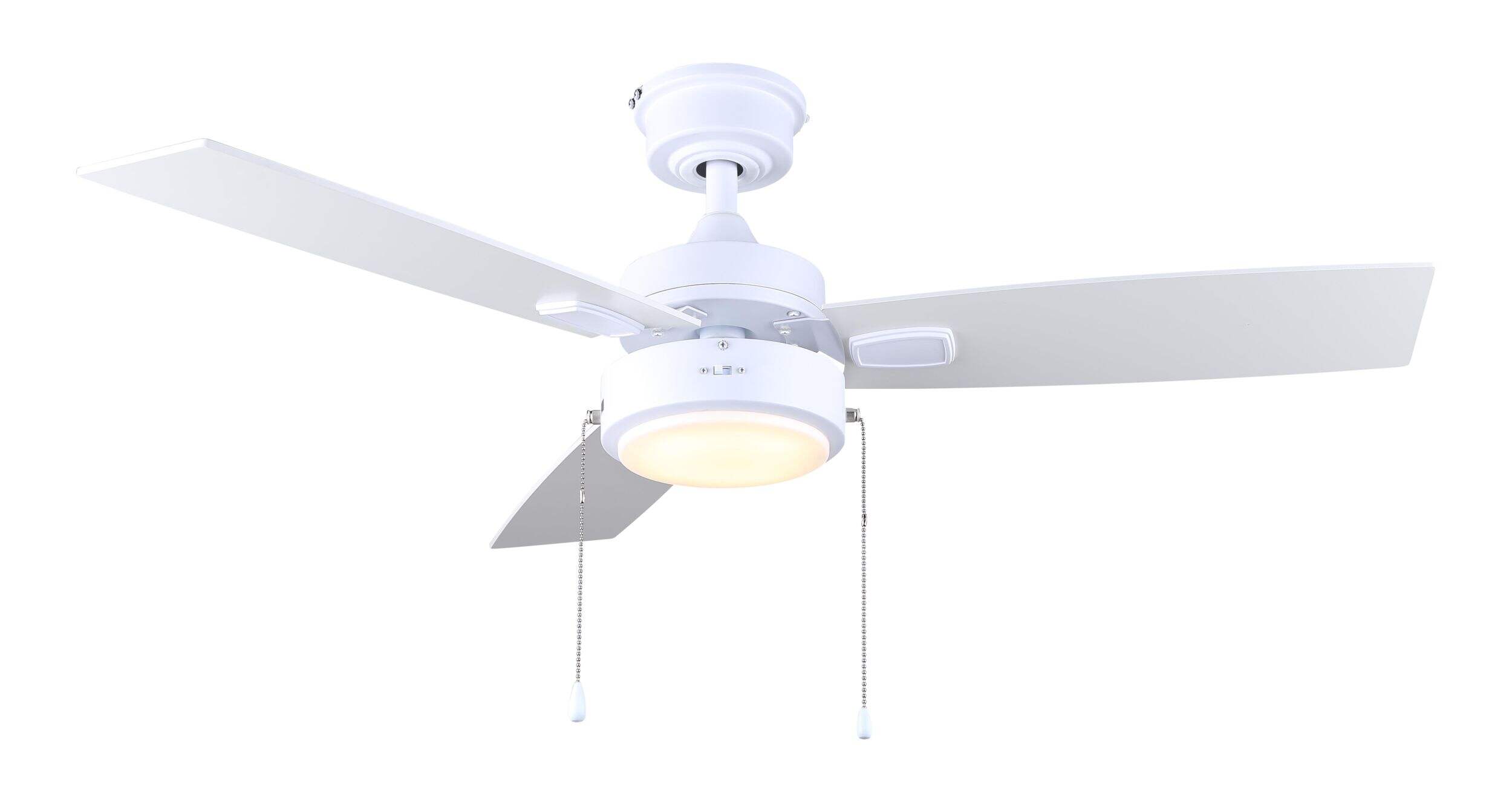 Keep the air moving in your home with the KOLT 42-in Indoor Pull Chain LED Ceiling Fan. This three-blade ceiling fan features white blades and an LED light for a modern look that blends into any decor. With pull chains to separately engage the fan speeds and light, you can easily customize its operation to suit your needs. This ceiling fan includes mounting hardware for easy installation and is ideal for keeping air circulating in your home.