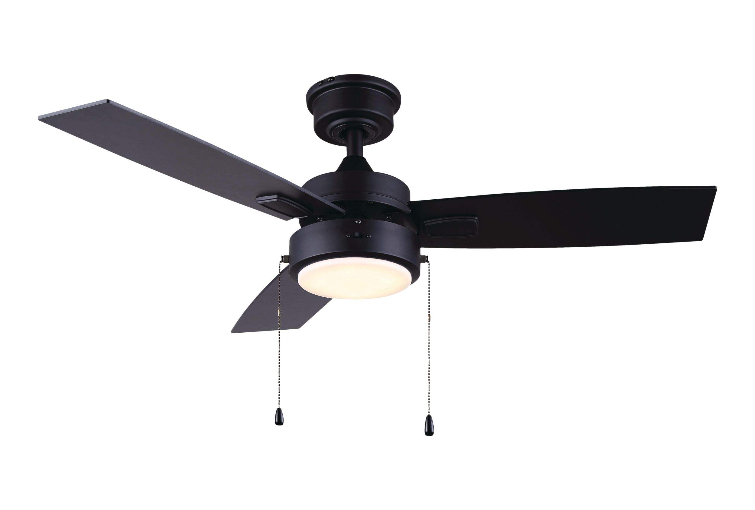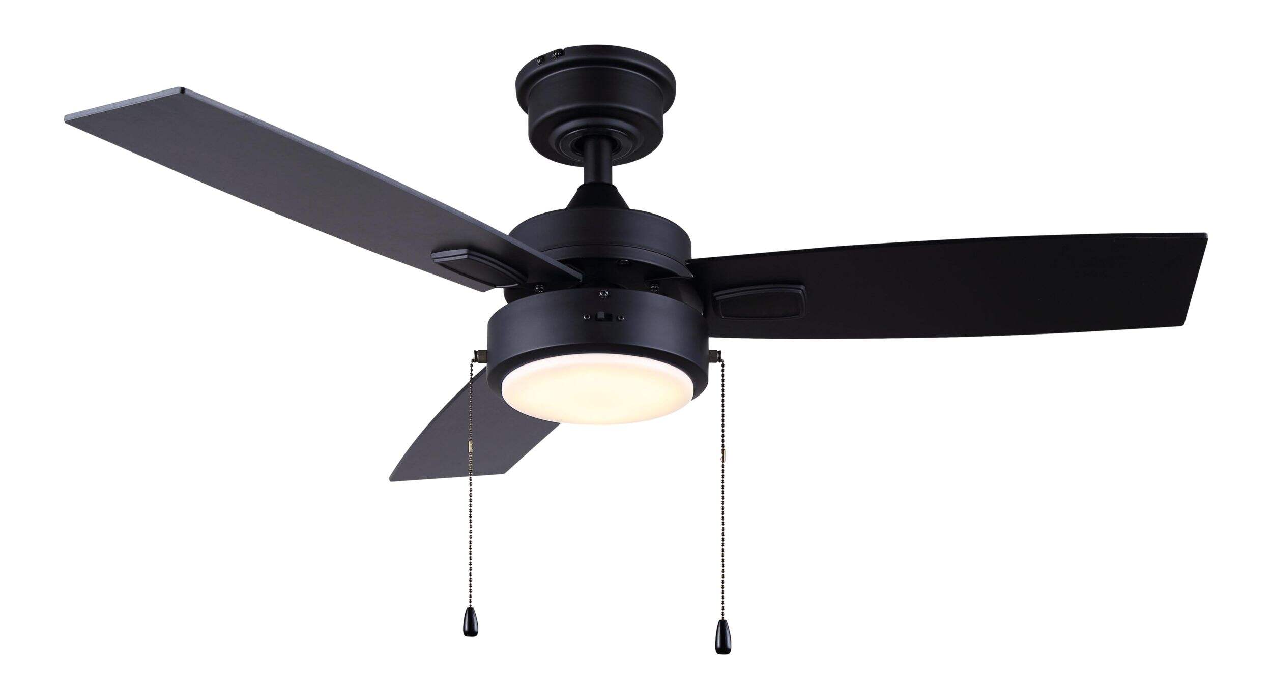 Keep the air moving in your home with the Canam Kolt 42-in Indoor Pull Chain LED Ceiling Fan. This three-blade ceiling fan features black blades and an LED light for a modern look that blends into any decor. With pull chains to separately engage the fan speeds and light, you can easily customize its operation to suit your needs. This ceiling fan includes mounting hardware for easy installation and is ideal for keeping air circulating in your home.
