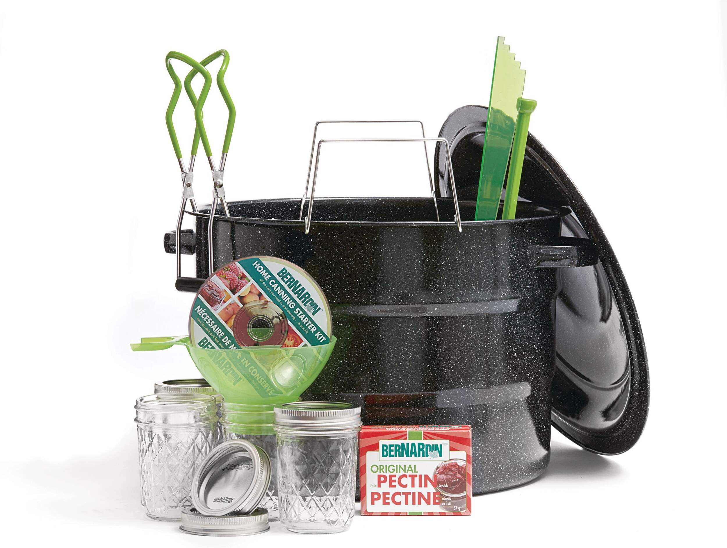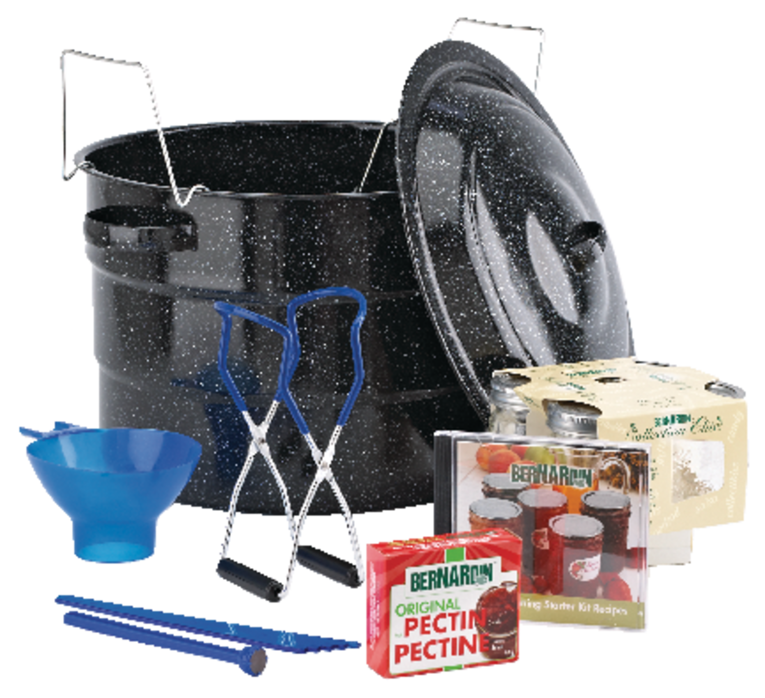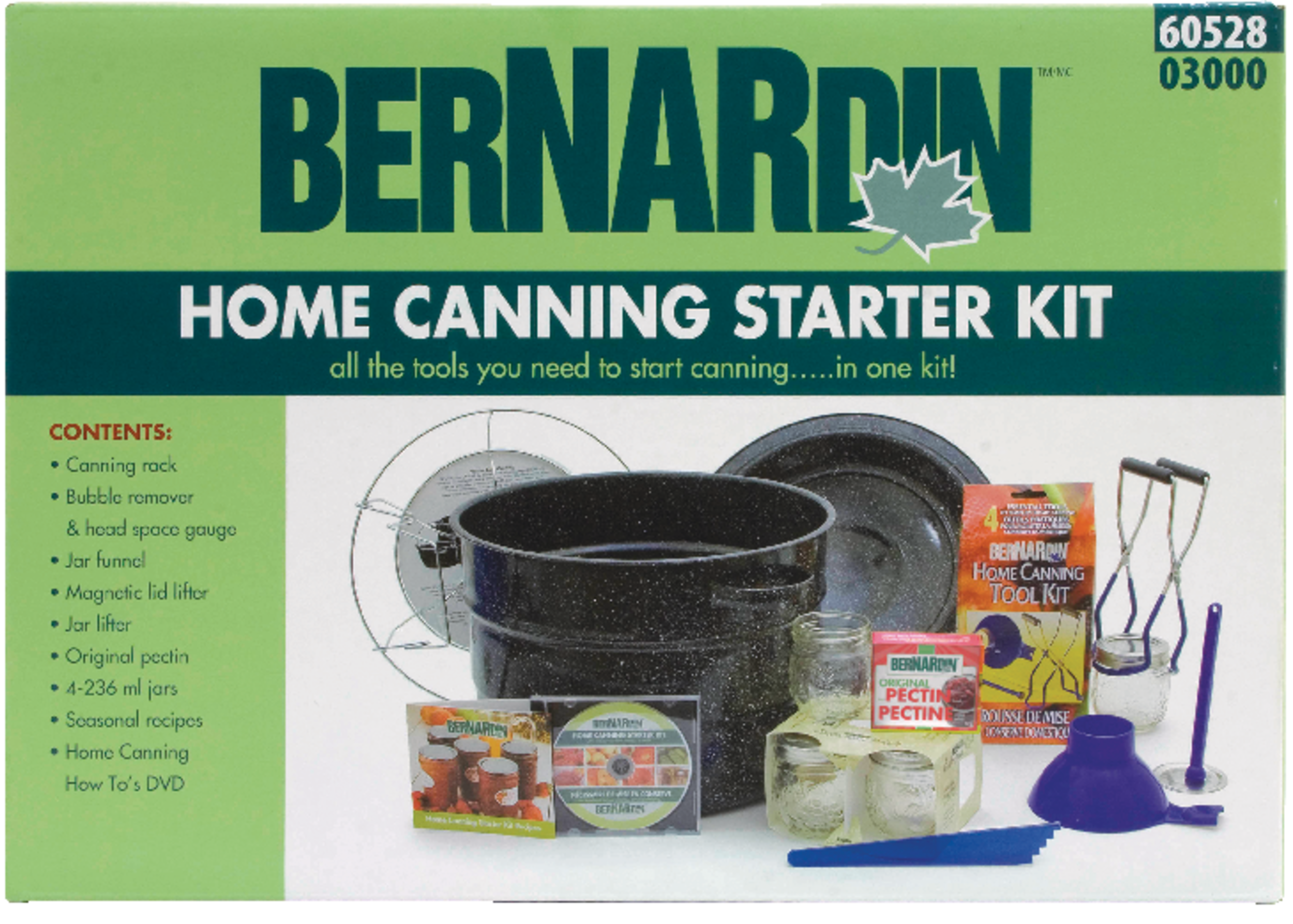 If you are a first-timer, there are a few tools that can make canning so much easier. You’ll find them all in the Bernardin Starter Kit. It includes a 21-quart canner, jar lifter, lid lifter, funnel, bubble remover, decorative jar 4-pack, pectin and recipe booklet. All you need to add are the ingredients!