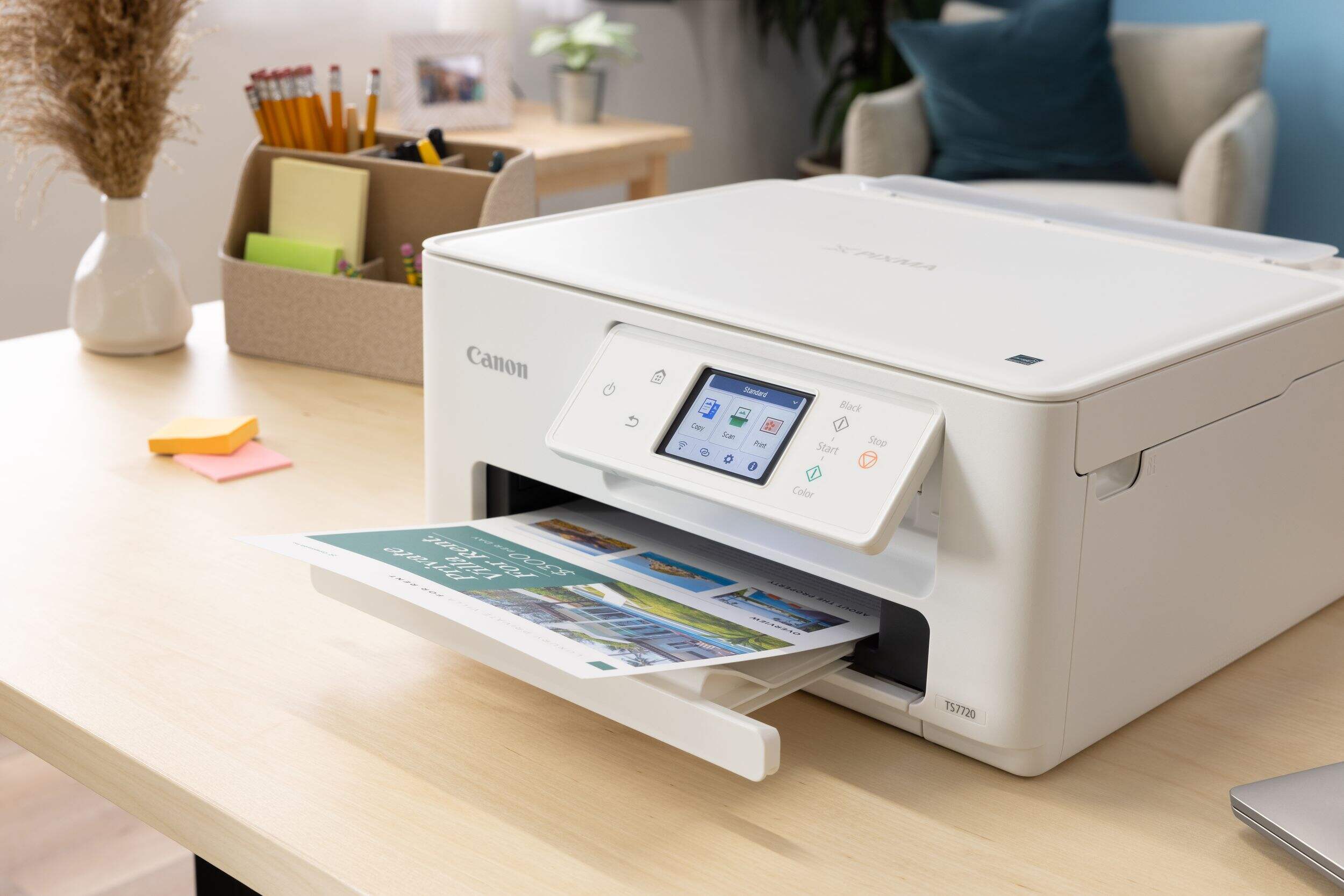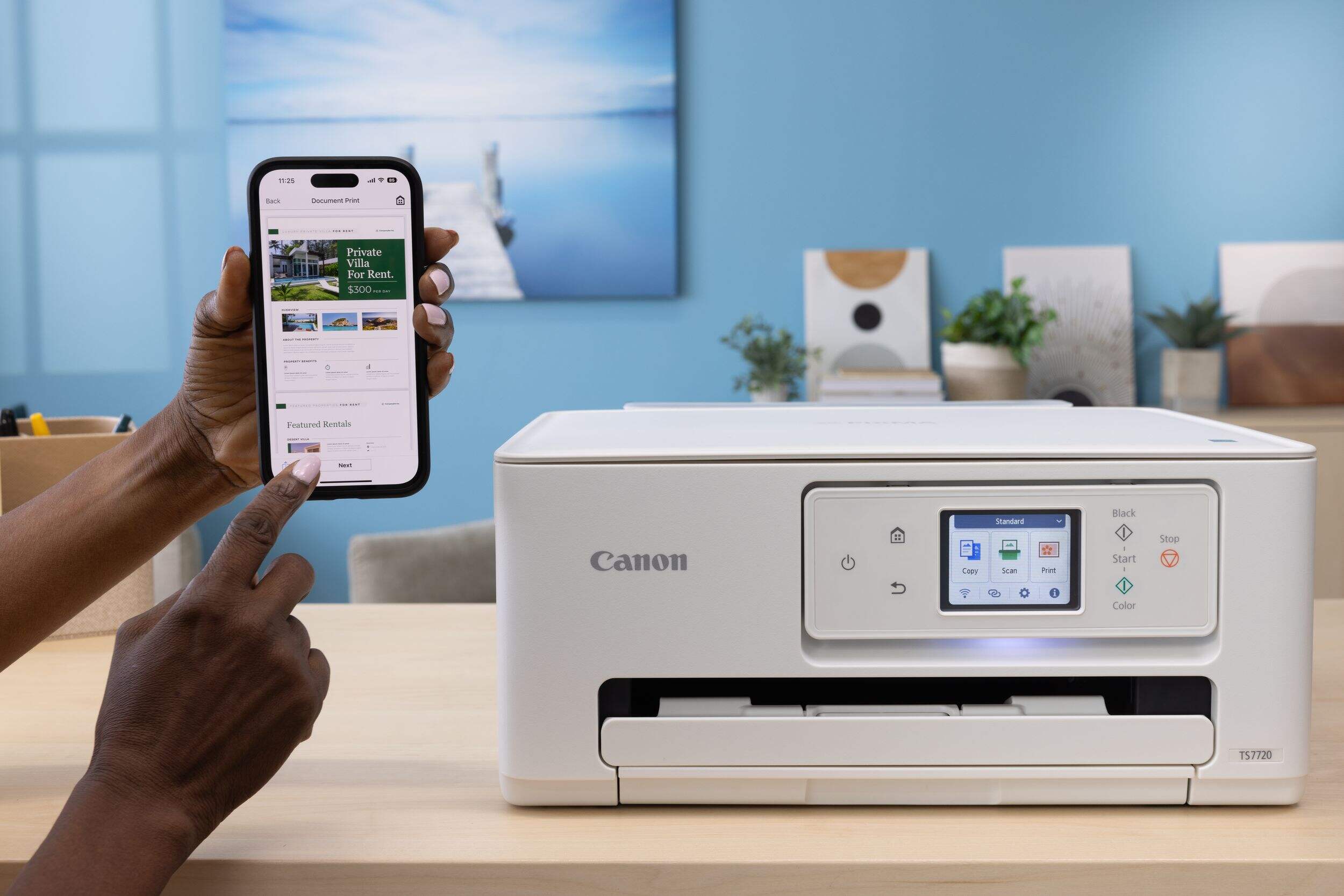 The Canon PIXMA TS7720 Wireless Home All-in-One Printer is ideal for individuals and families with occasional printing needs like homework assignments or scanning documents. Its compact design fits neatly in most home or office spaces. Enjoy a stable wireless connection via Dual Band Wi-Fi (2.4GHz or 5GHz). The intuitive LCD touchscreen simplifies operation. Auto Duplex Printing automatically prints on both sides of the paper, helping use less paper for large print jobs. This reliable all-in-one printer gets the job done for daily tasks and home printing requirements.