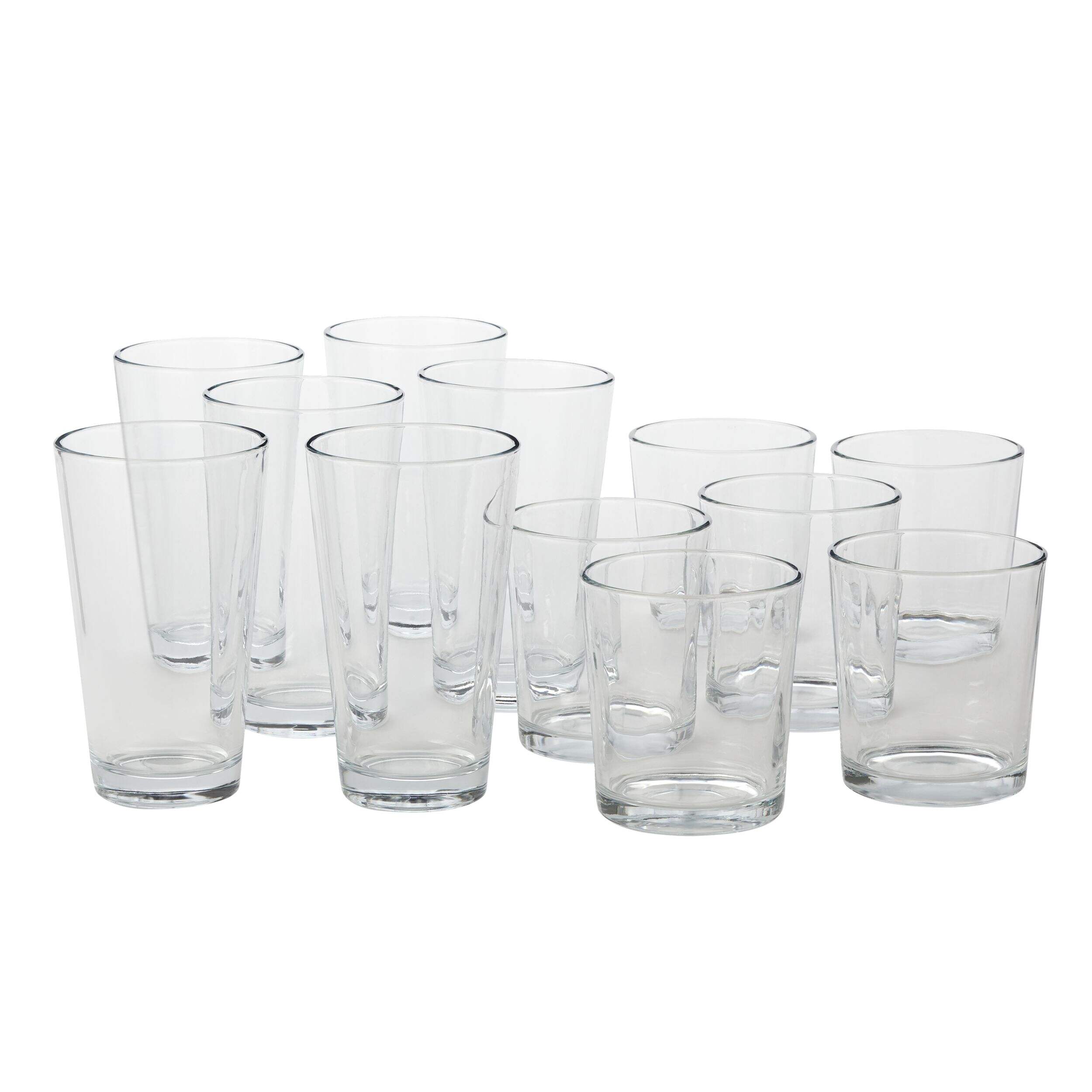 Easily stock your drinkware cabinet in one shot with the CANVAS 12-piece Clear Tumbler Glassware Set. This glassware tumbler set conveniently comes with six tall glasses and six short glasses for perfect variety. The tumbler glassware is durable for everyday use and perfect for hosting and entertaining. The drinkware is made from lead-free glass and is dishwasher safe for easy clean up at the end of the night.