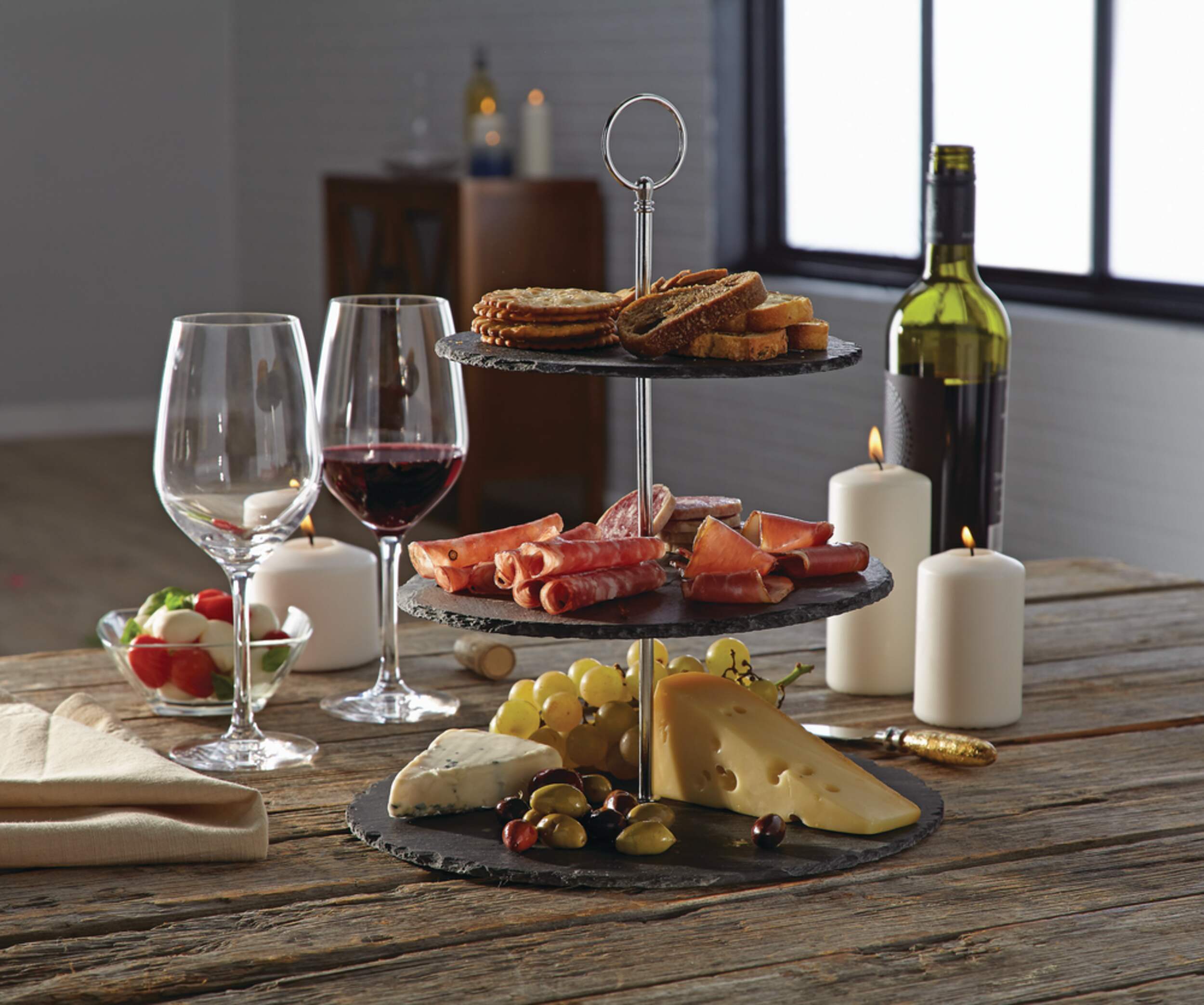 The CANVAS 3-Tier Slate Serving Stand is made of stylish hand-finished slate that makes a beautiful centrepiece for presenting entrées or desserts