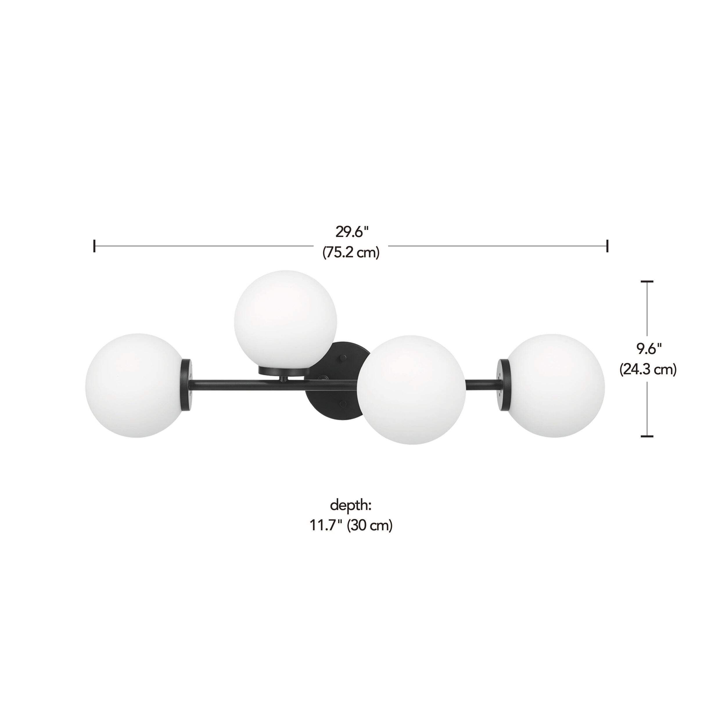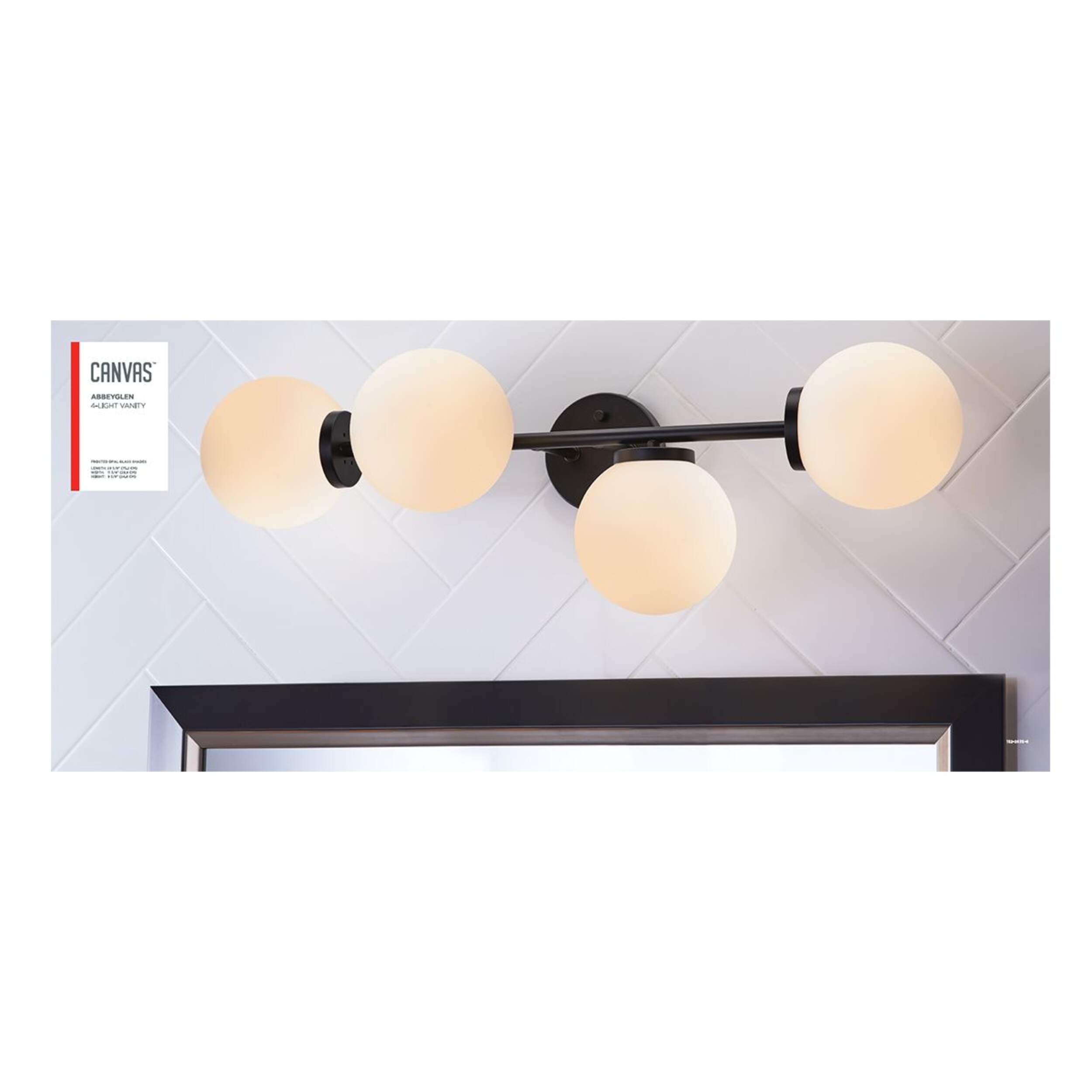 Enjoy bright, soft bathroom lighting with the CANVAS Abbeyglen Vanity Light Fixture. The black matte finish brings a modern, industrial note to your space while the frosted opal glass shades cast a diffused, refined glow that's warm and inviting. The extra length suits longer vanities with multiple sinks, providing ample end-to-end illumination. Mounting hardware and hard-wiring instructions are included for DIY installation.