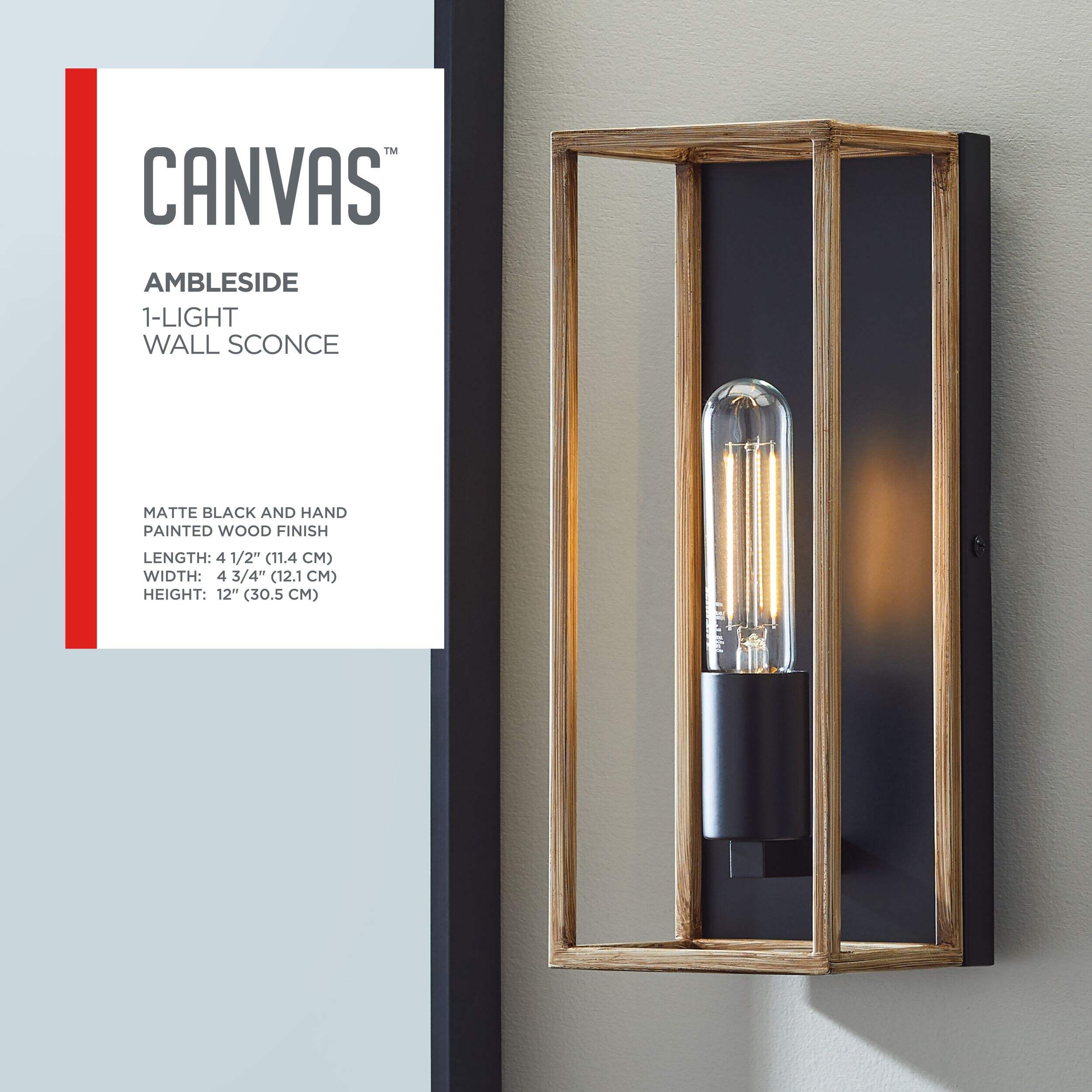 The CANVAS Ambleside 1-Light Wall Sconce is a modern lighting option. Ideal for beside a fireplace or bed, this sleek rectangular sconce will elevate any space and suit most décor schemes. The wood theme gives interior areas a rustic quality, while the wiring system makes this sconce easy to install. This versatile wall sconce is ideal for those that are looking for a non-hardwired lighting option.