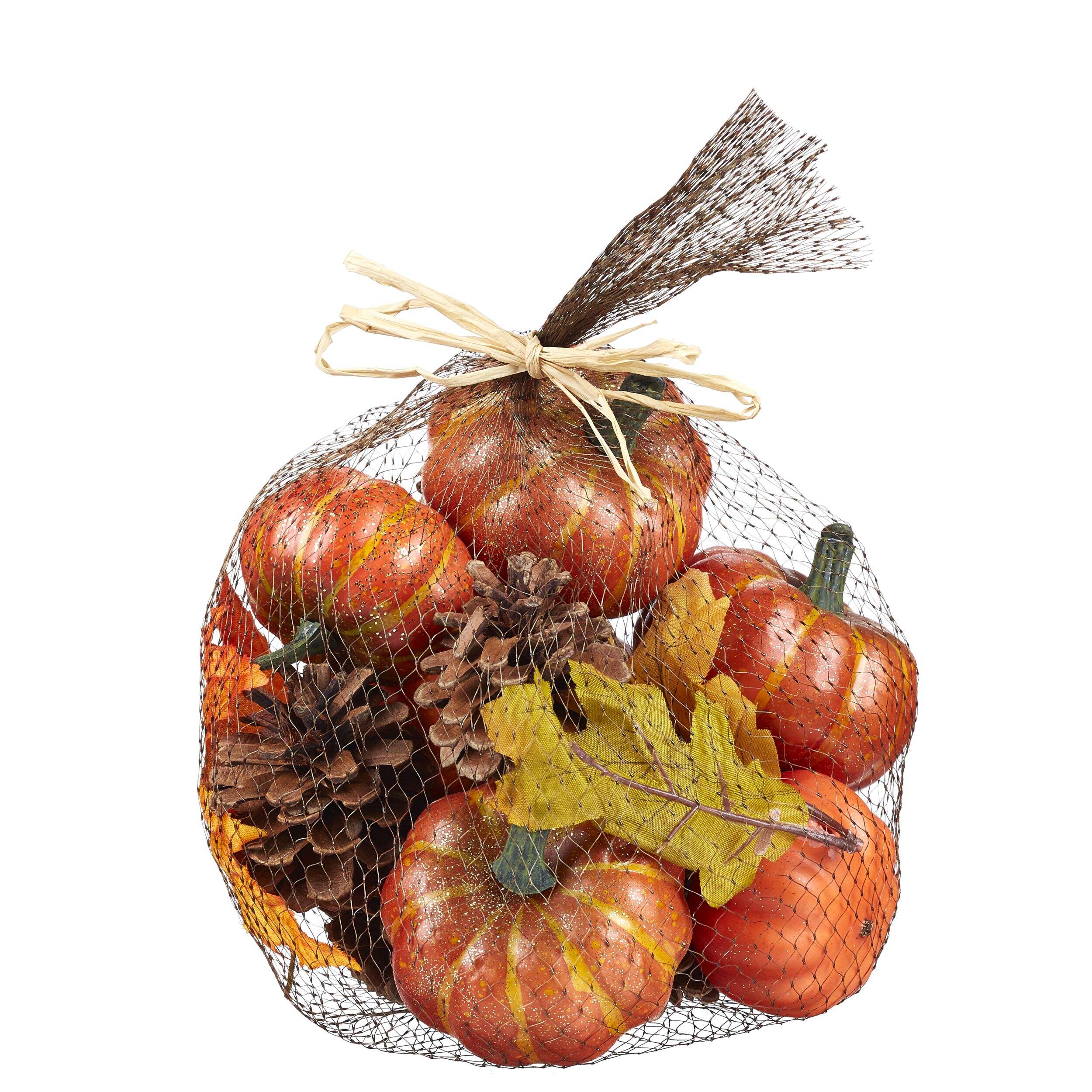 These CANVAS Pumpkin & Pine Cone display pieces are festive accents for autumn decorating. Each bag features assorted plastic pumpkins, pinecones, and leaves in a variety of fall colours for seasonal style. Pour them into a glass bowl or display them on your mantel or table to create a festive harvest look your guests will love. You can combine these Thanksgiving decorations in any number of ways to suit your decorating needs.