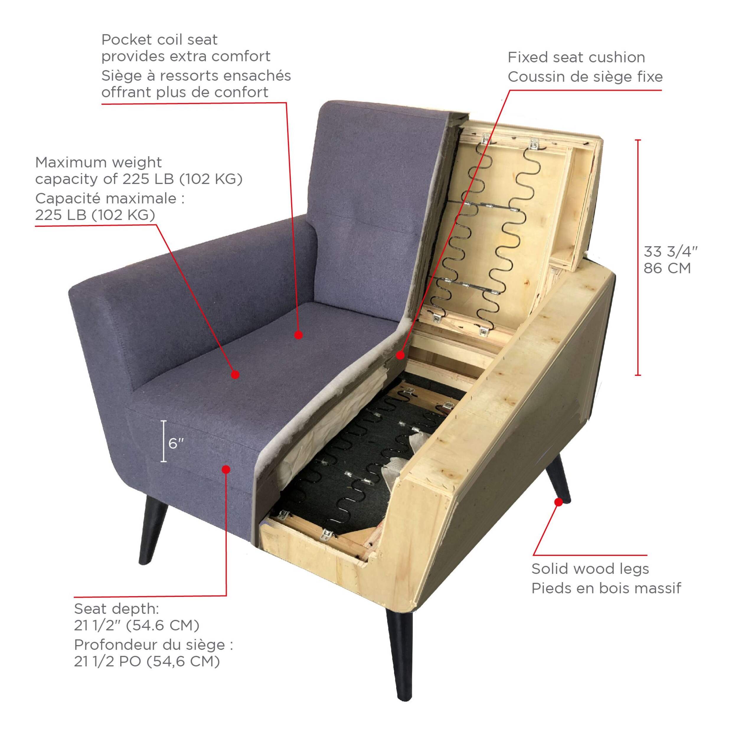 • Pocket coil seat provides extra comfort